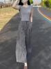 24255 Big Love Meiyuan 2025 Verano Nuevo Color Sólido Sin Mangas Top Slim Rayado Casual Pantalones Pierna Ancha Mujer