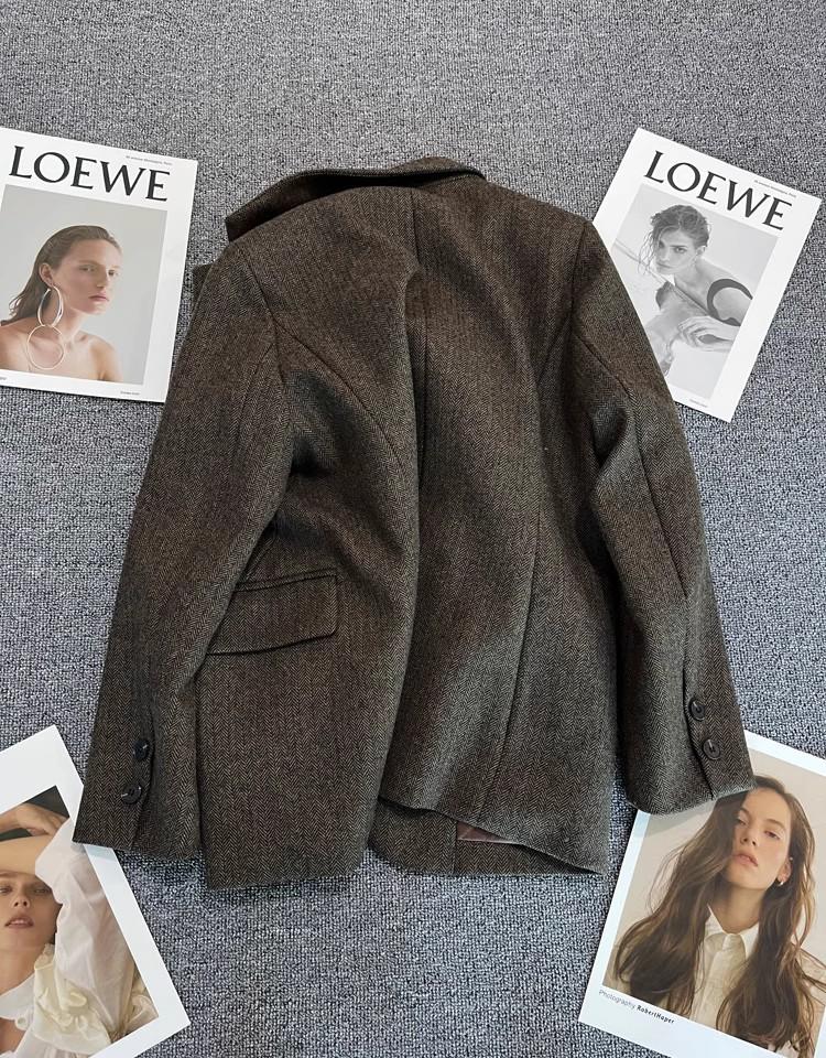 Blazer Marrón Oscuro para Mujer, Nuevo Diseño Otoño e Invierno 2025, Moderno y a la Moda, Llamativo, Traje Casual y Versátil