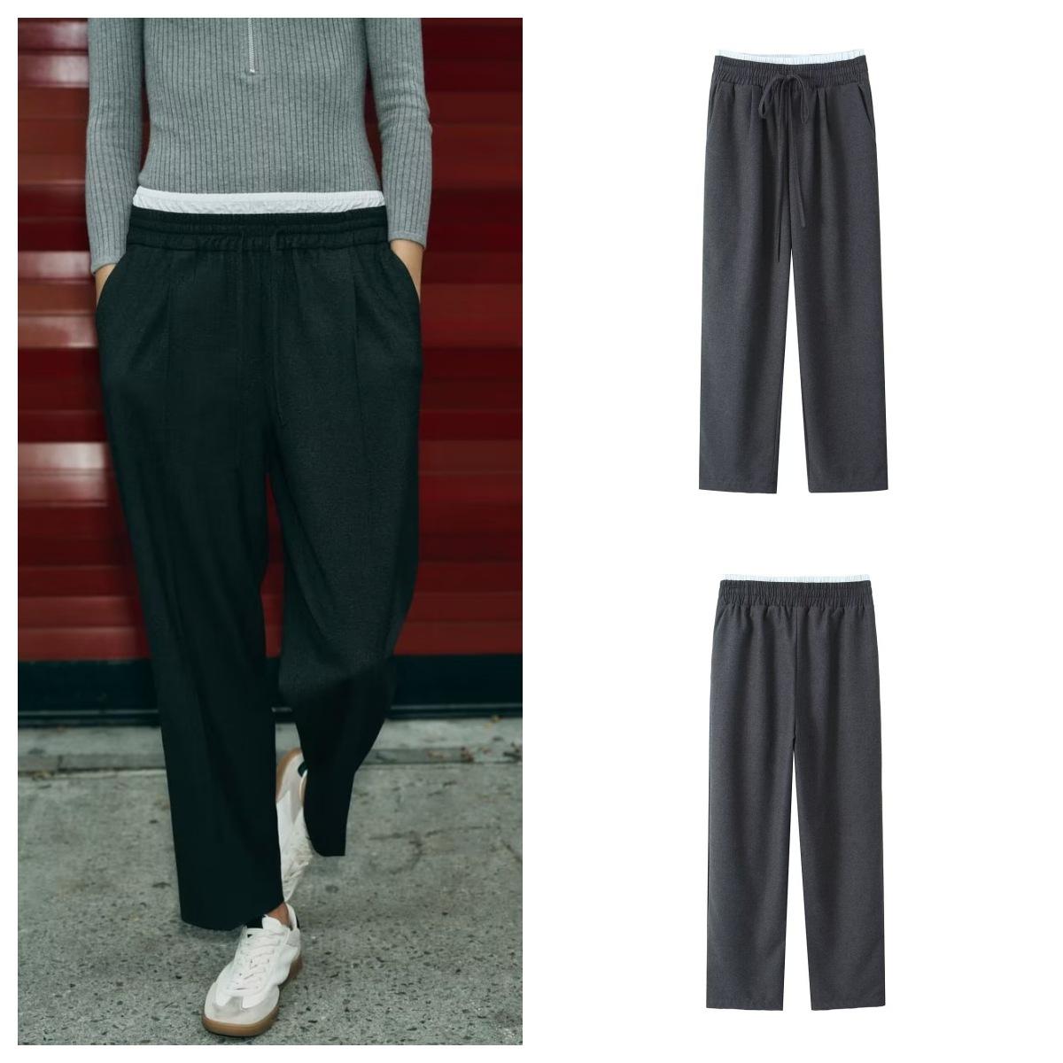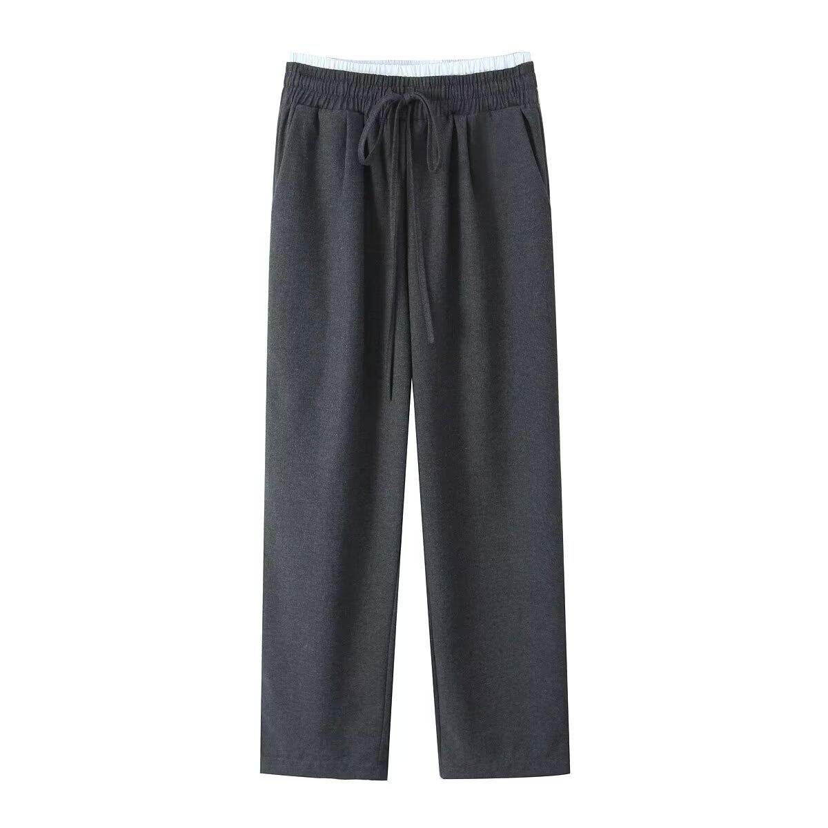 Venta al por mayor transfronteriza de Amazon, primavera 2024, nueva ropa de mujer, estilo europeo y americano, pantalones rectos de cintura alta de doble capa a la moda
