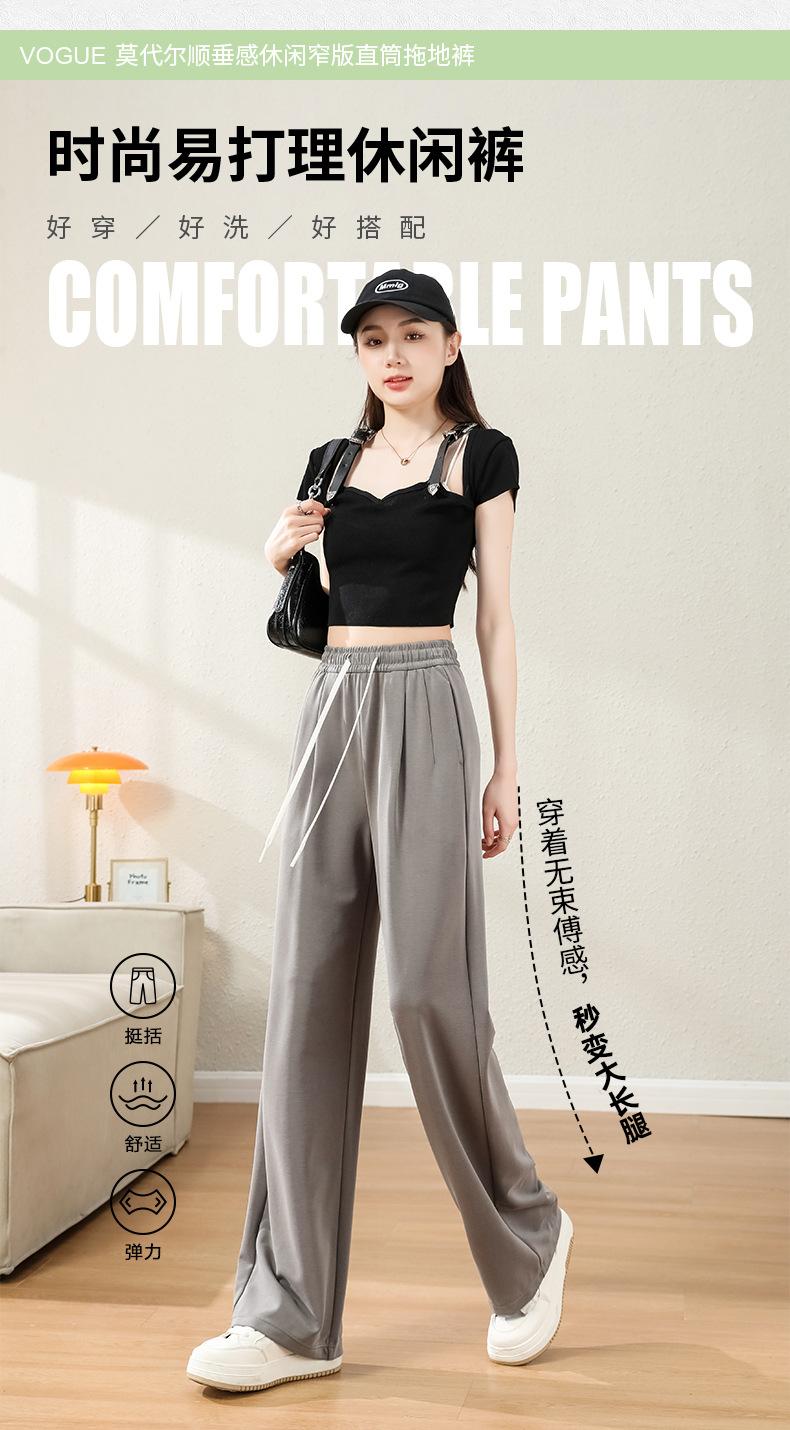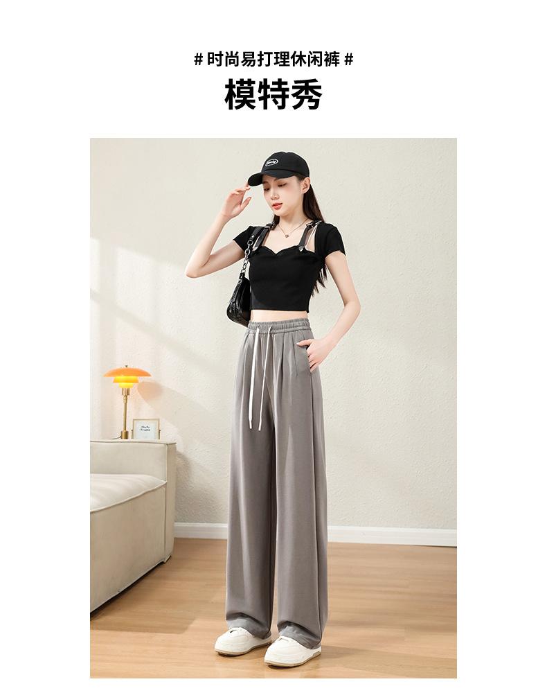 [Liquidación, Mitad de Precio para Pedidos de 5 Piezas] Traje Pequeño Pantalones de Pierna Ancha para Mujer, Verano Delgados de Pierna Recta Drapeados Casuales