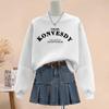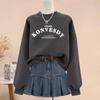 Suéter de algodón de cuello redondo para mujer, top de diseño nicho, holgado, casual, a la moda, afelpado, grueso, Primavera, Otoño, Invierno