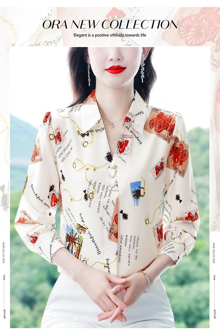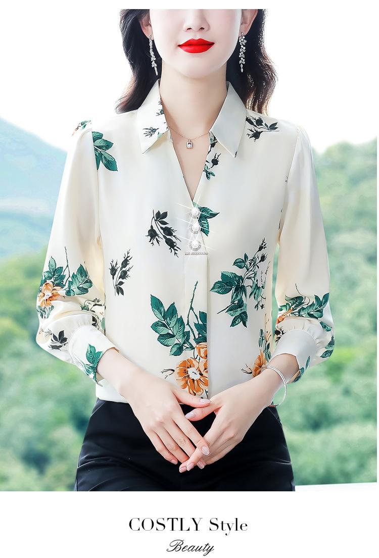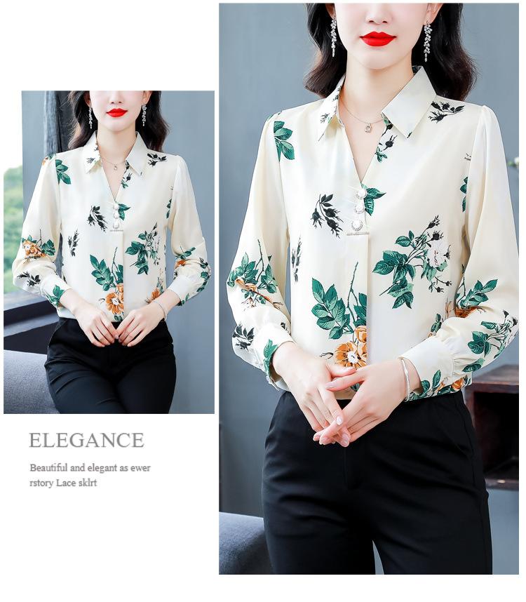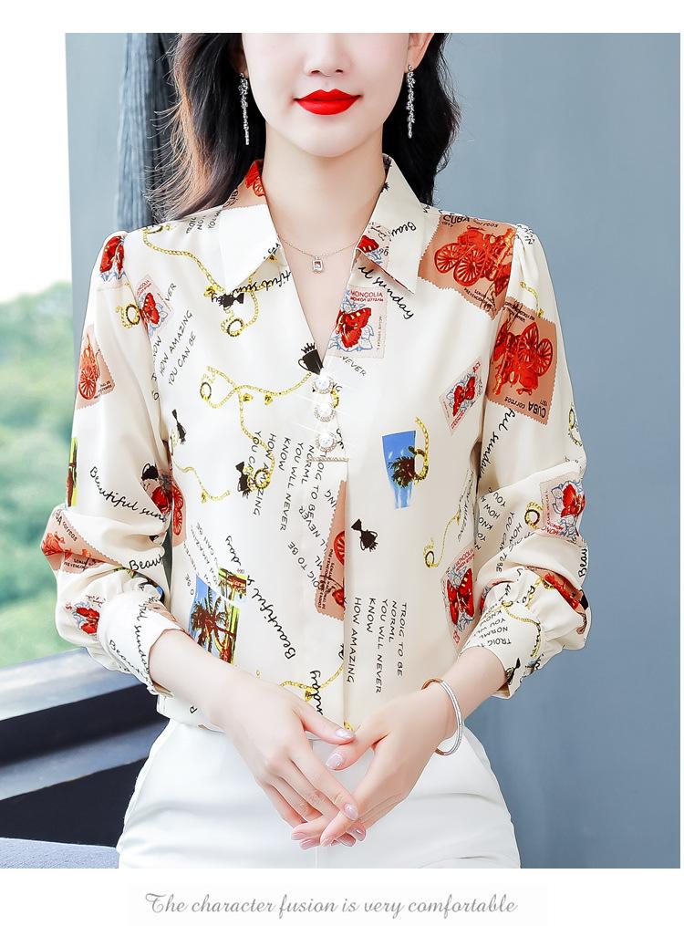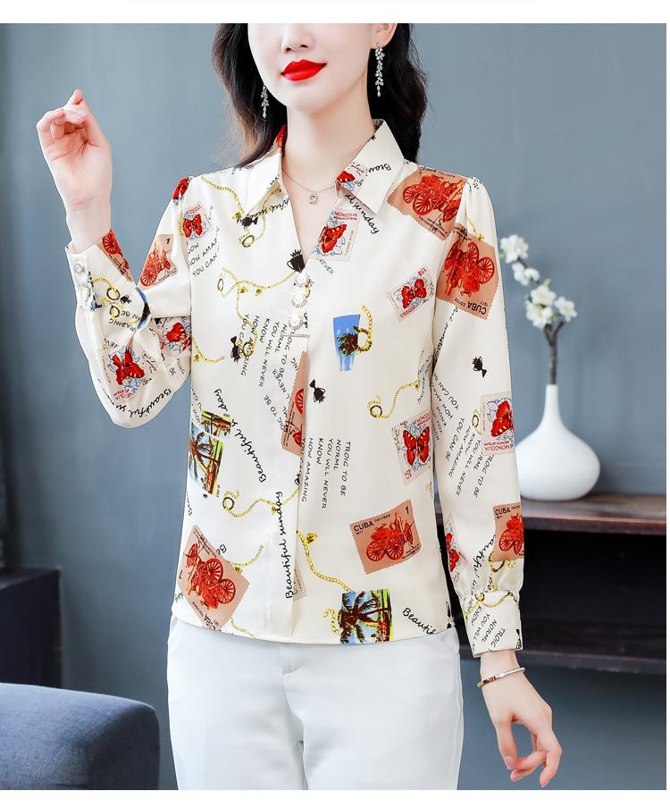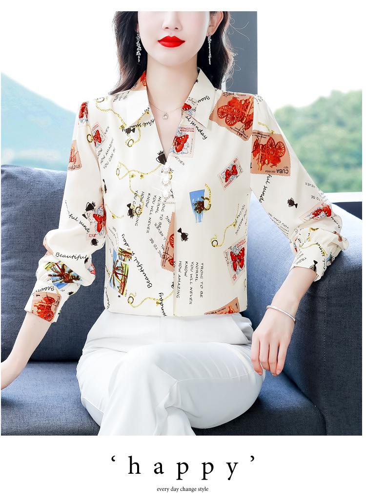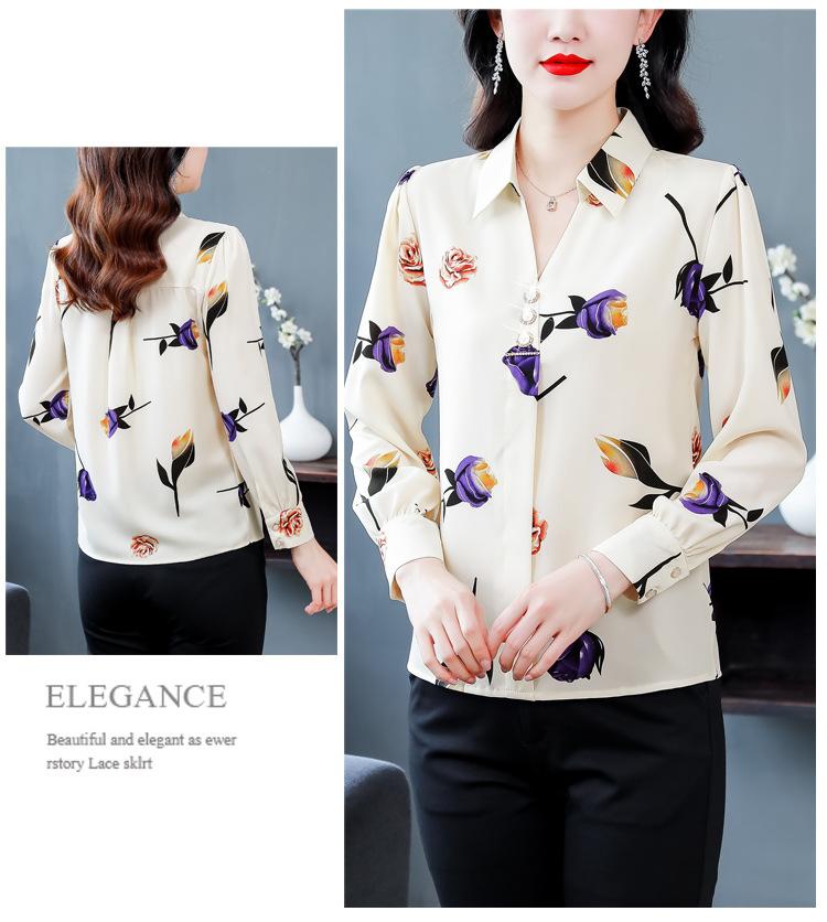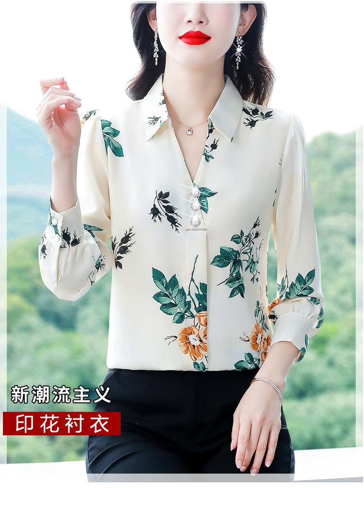Camisa de Chifón Estampada de Moda para Mujer de Manga Larga 2024 Primavera Nueva Camisa de Madre Moda Camisa Pequeña Top Trendy