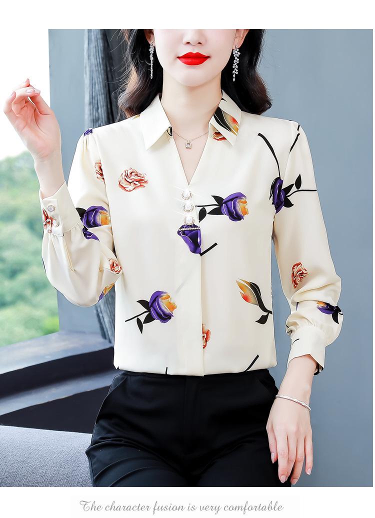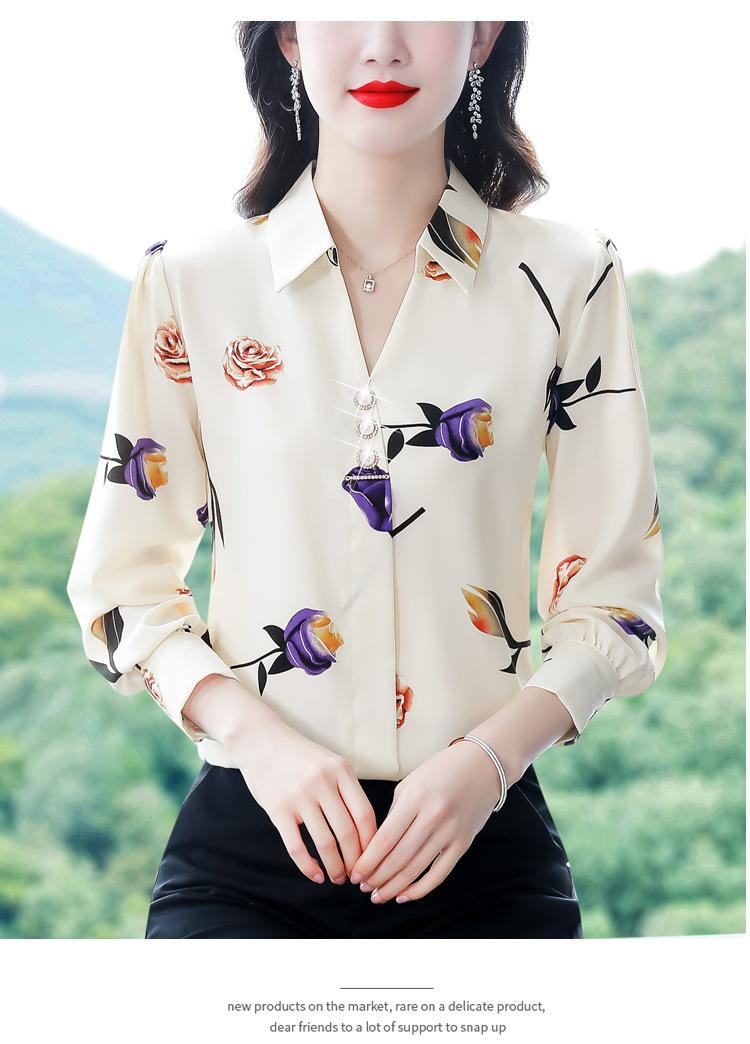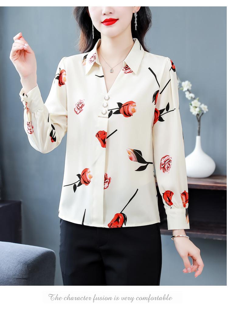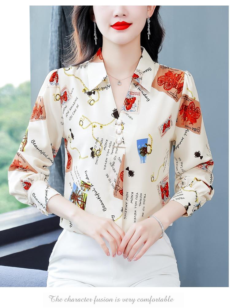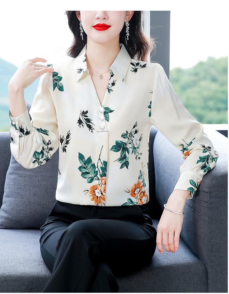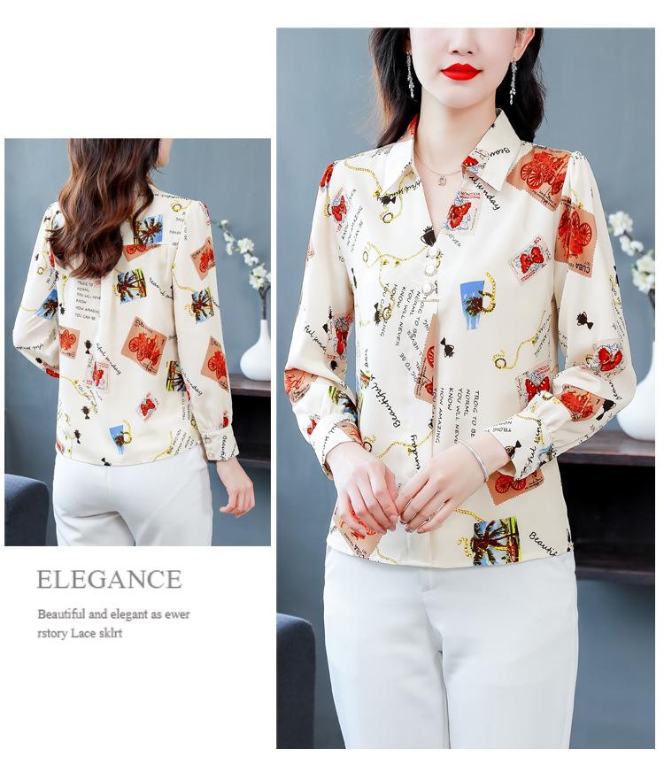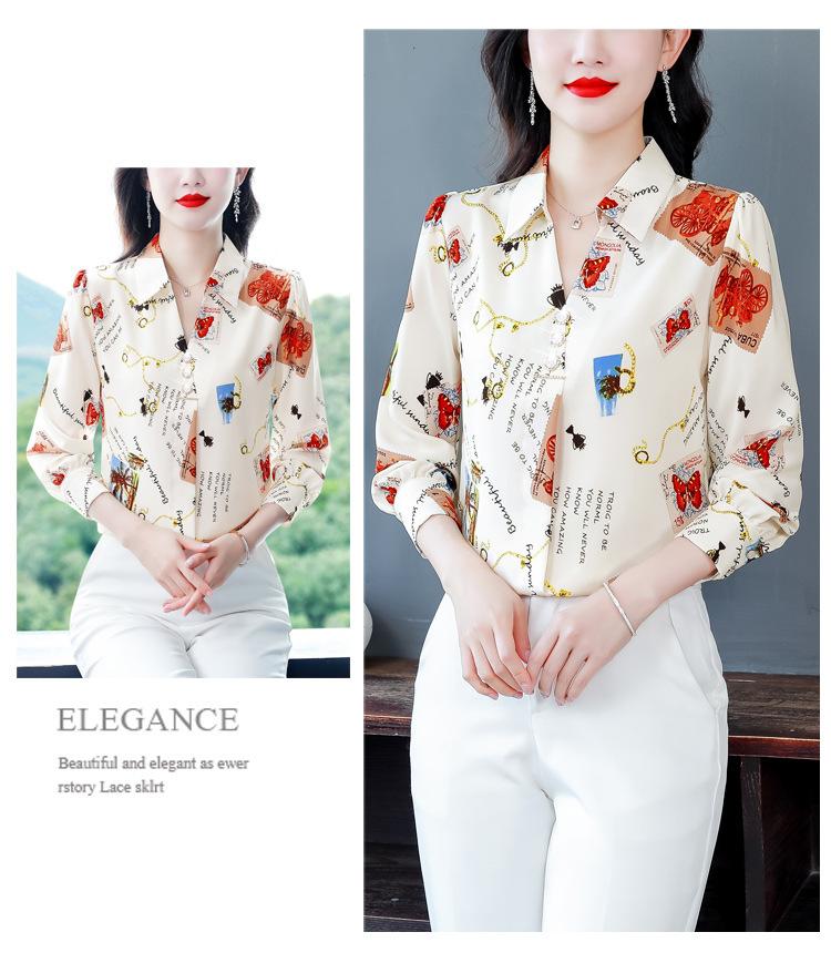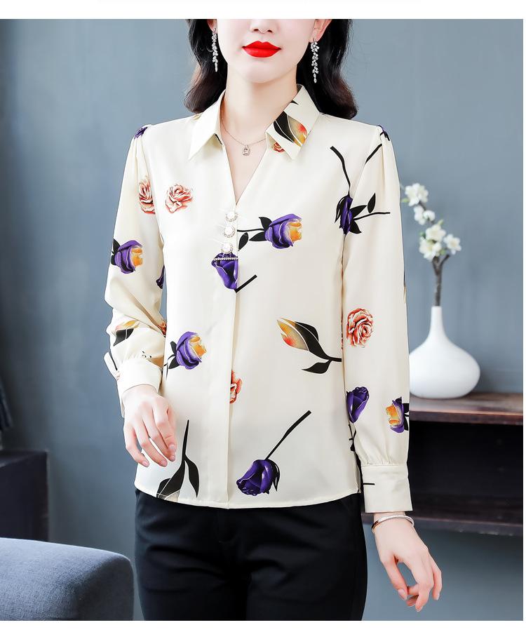 Camisa de Chifón Estampada de Moda para Mujer de Manga Larga 2024 Primavera Nueva Camisa de Madre Moda Camisa Pequeña Top Trendy