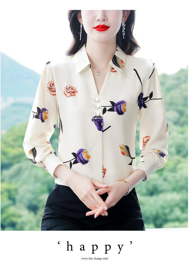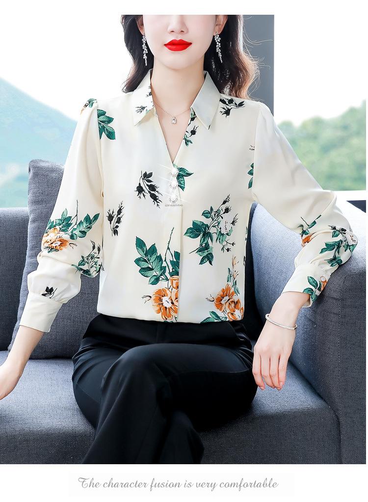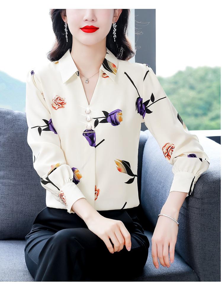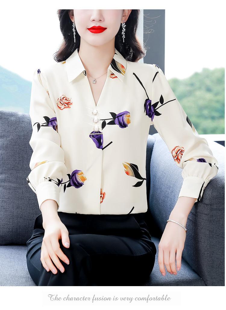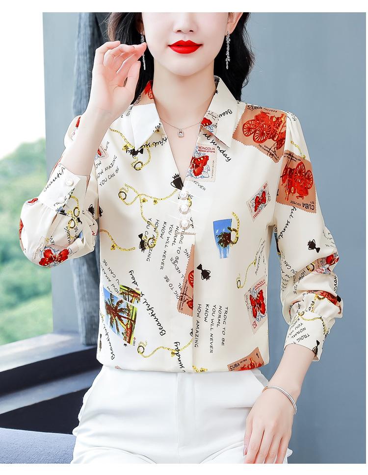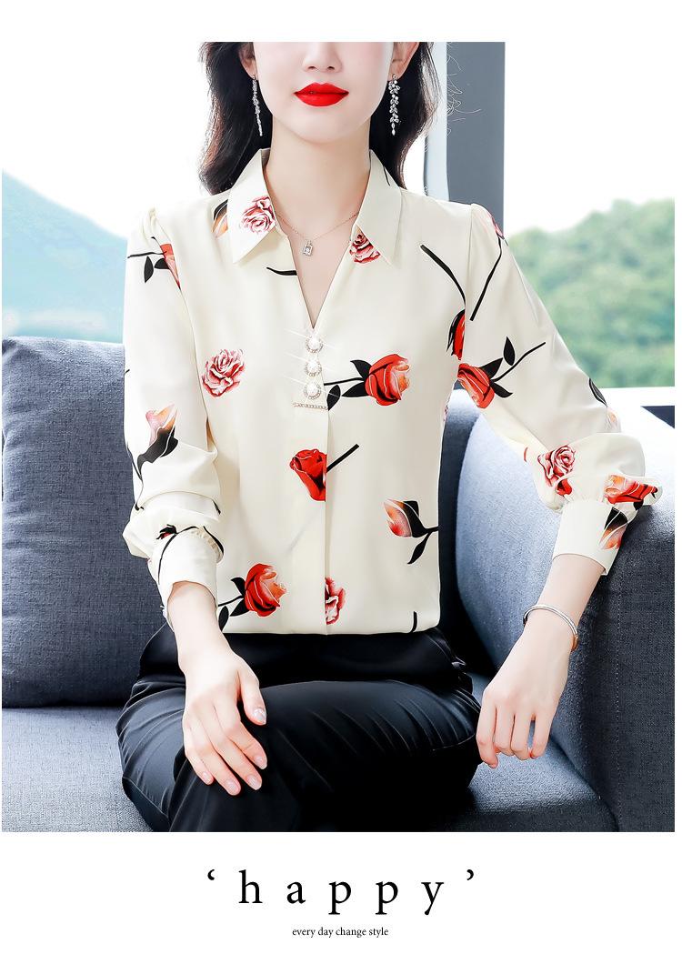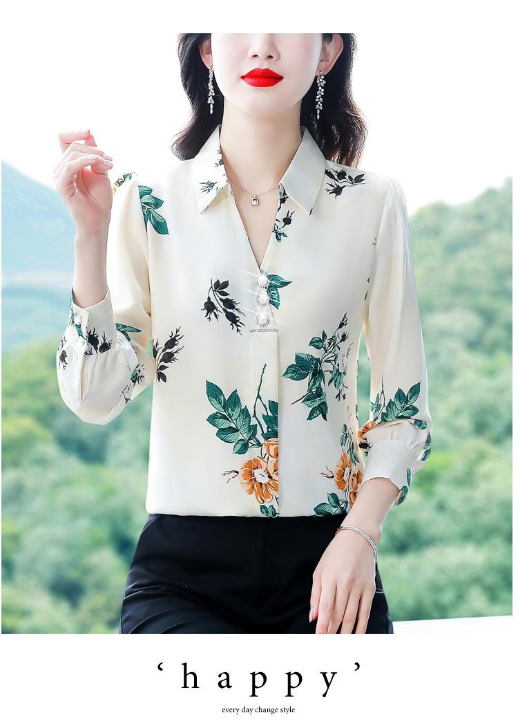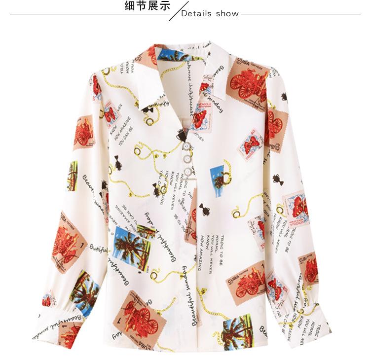 Camisa de Chifón Estampada de Moda para Mujer de Manga Larga 2024 Primavera Nueva Camisa de Madre Moda Camisa Pequeña Top Trendy