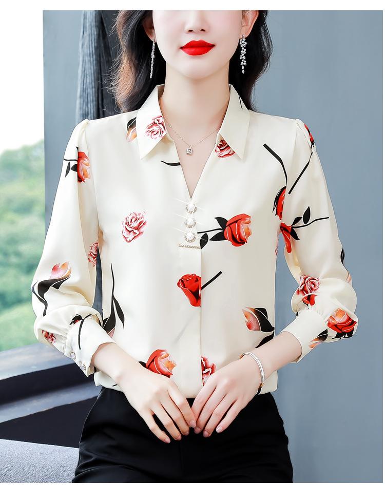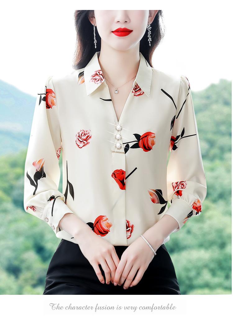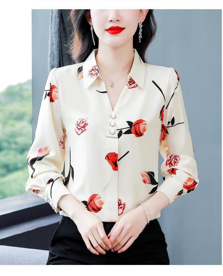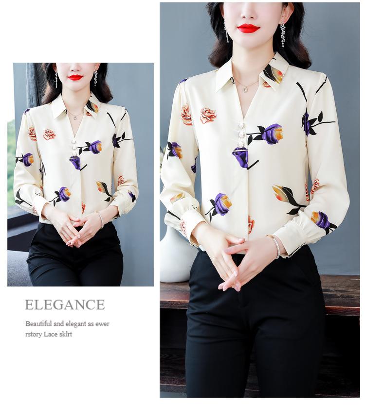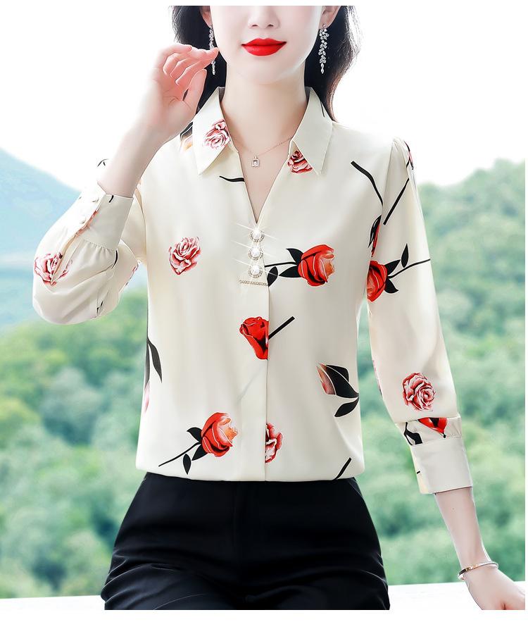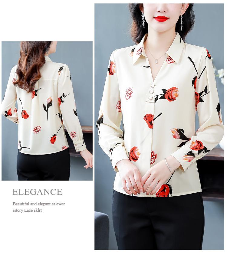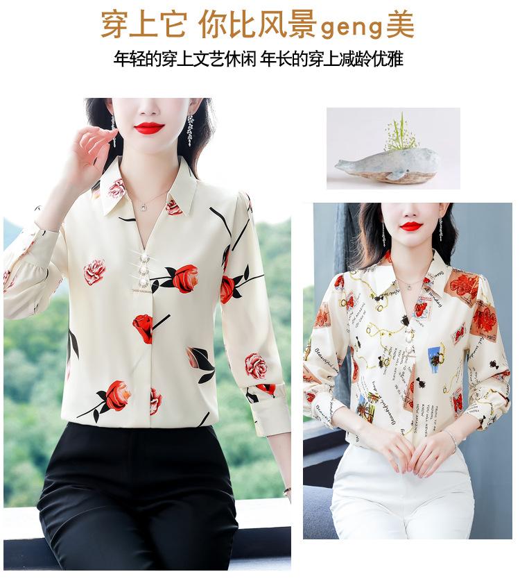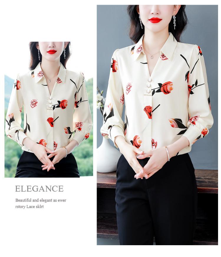 Camisa de Chifón Estampada de Moda para Mujer de Manga Larga 2024 Primavera Nueva Camisa de Madre Moda Camisa Pequeña Top Trendy