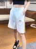 Pantalones cortos al por mayor para mujer, ropa exterior de verano, finos, sueltos, de cintura alta, ajustados, grises, informales, pantalones deportivos de cinco puntos para mujer.