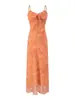 Vestido elegante de longitud media, ajustado, estilo pastoral francés vintage con estampado floral y cintura dividida para vacaciones en la playa.