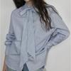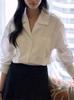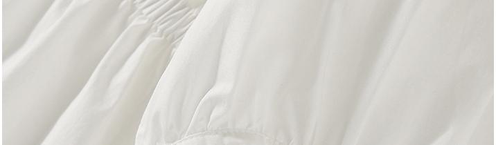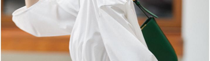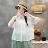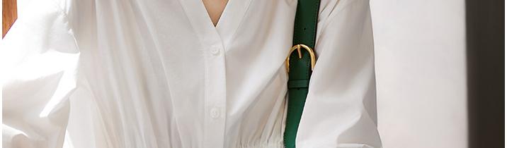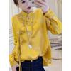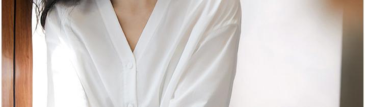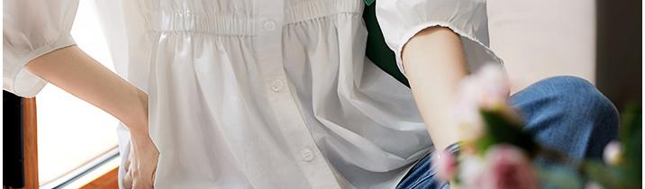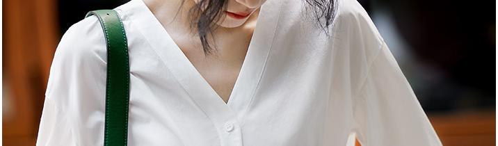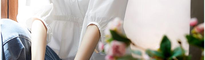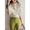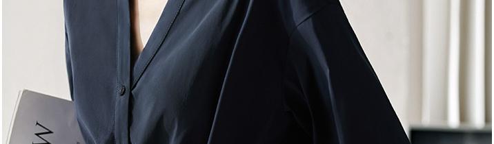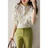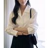 Fabricante Vende Mostrador Exportación Cuello en V Manga Linterna Camisa Babydoll Camisa de Seda Reductora de Edad Top Chic de Verano para Mujer