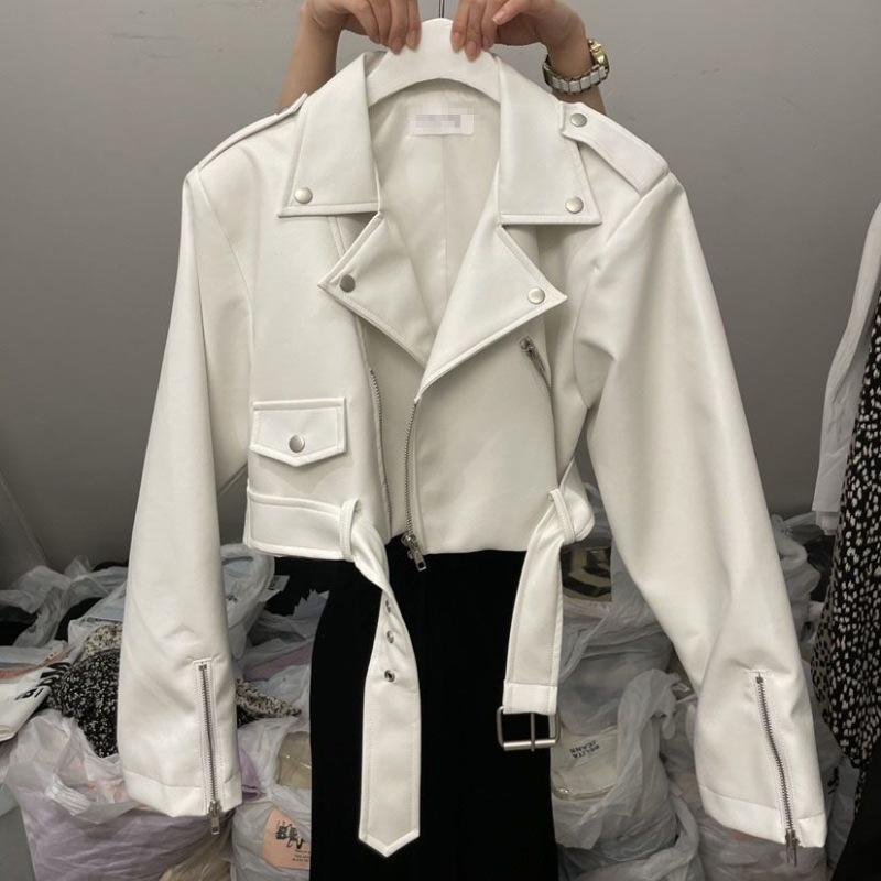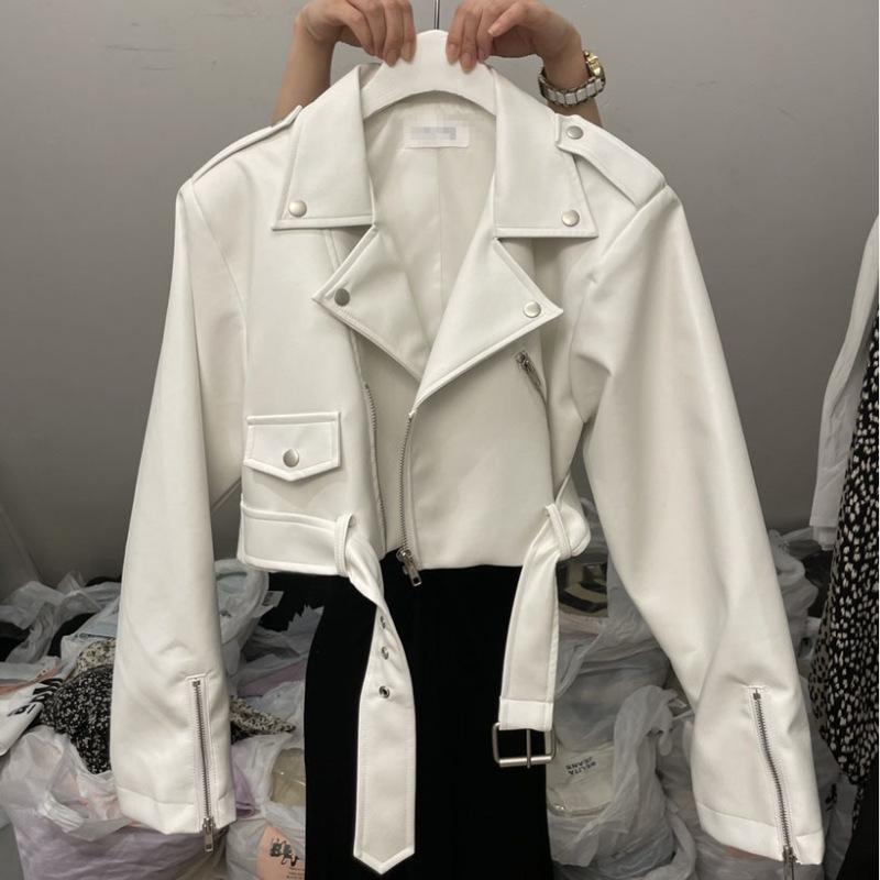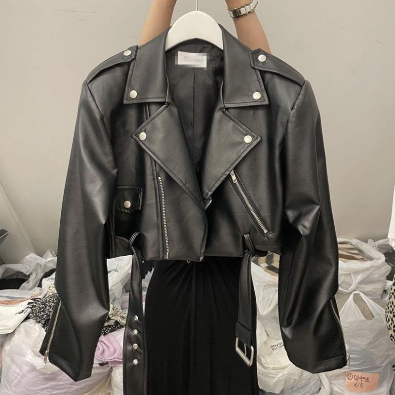 Abrigo de cuero para mujer, estilo Maillard, chaqueta de PU, solapa de moda, abrigo corto ajustado de cuero