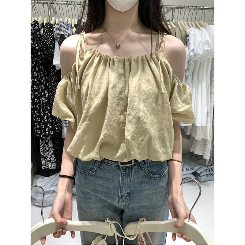 Ropa de Verano a la Moda, Diseño Dulce Nuevo, Tops Cortos de Nicho, Tirantes Chic, Camisas de Manga Corta con un Hombro Descubierto para Mujer, Trendy