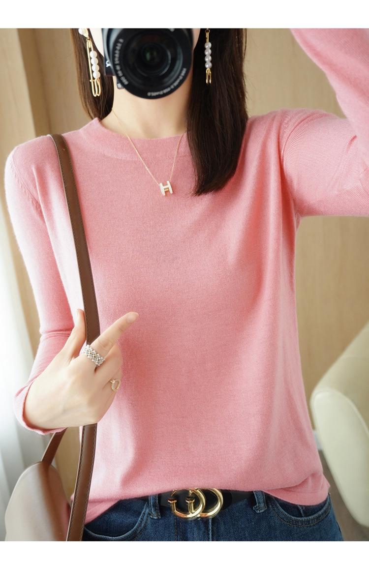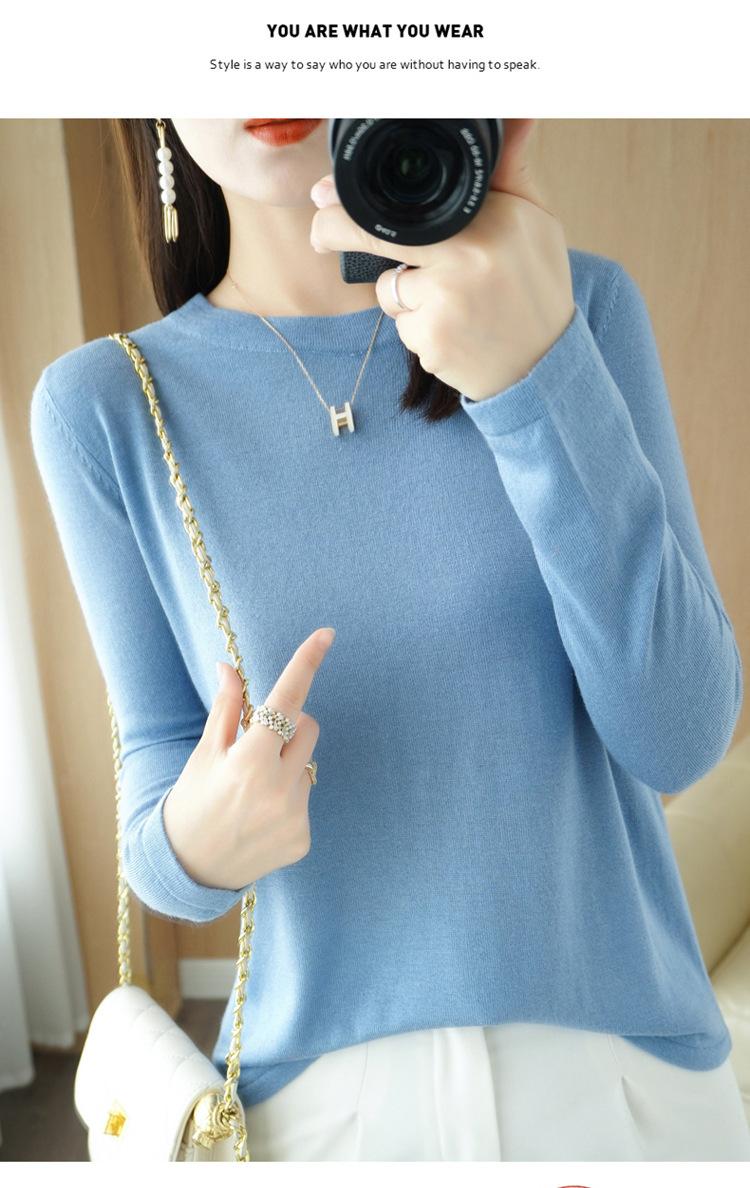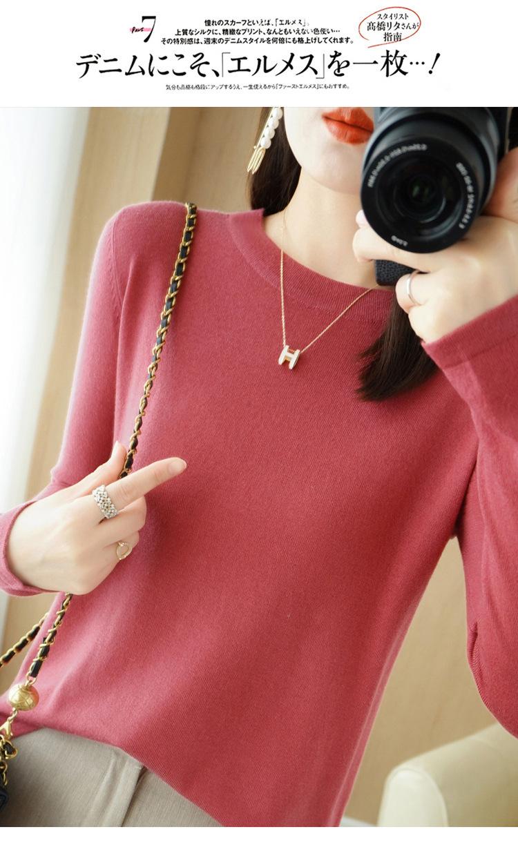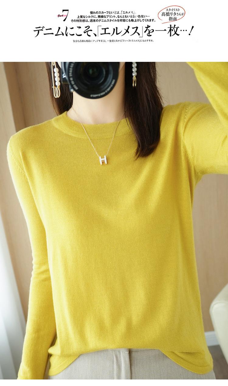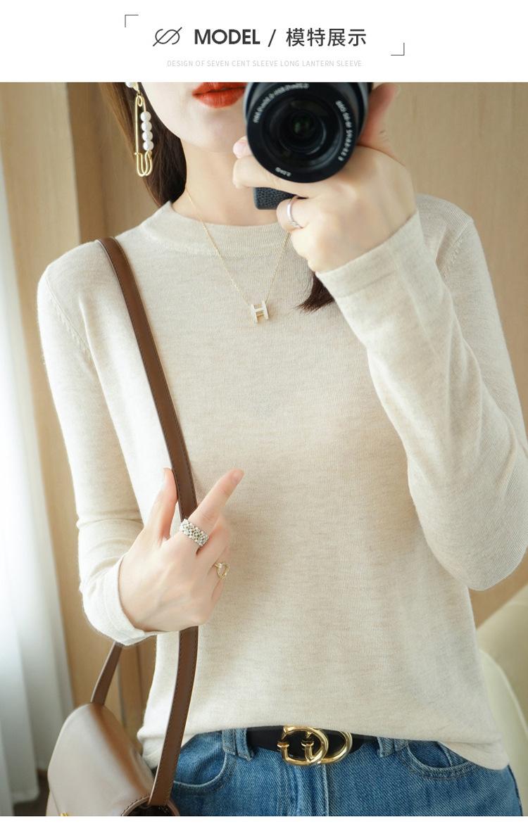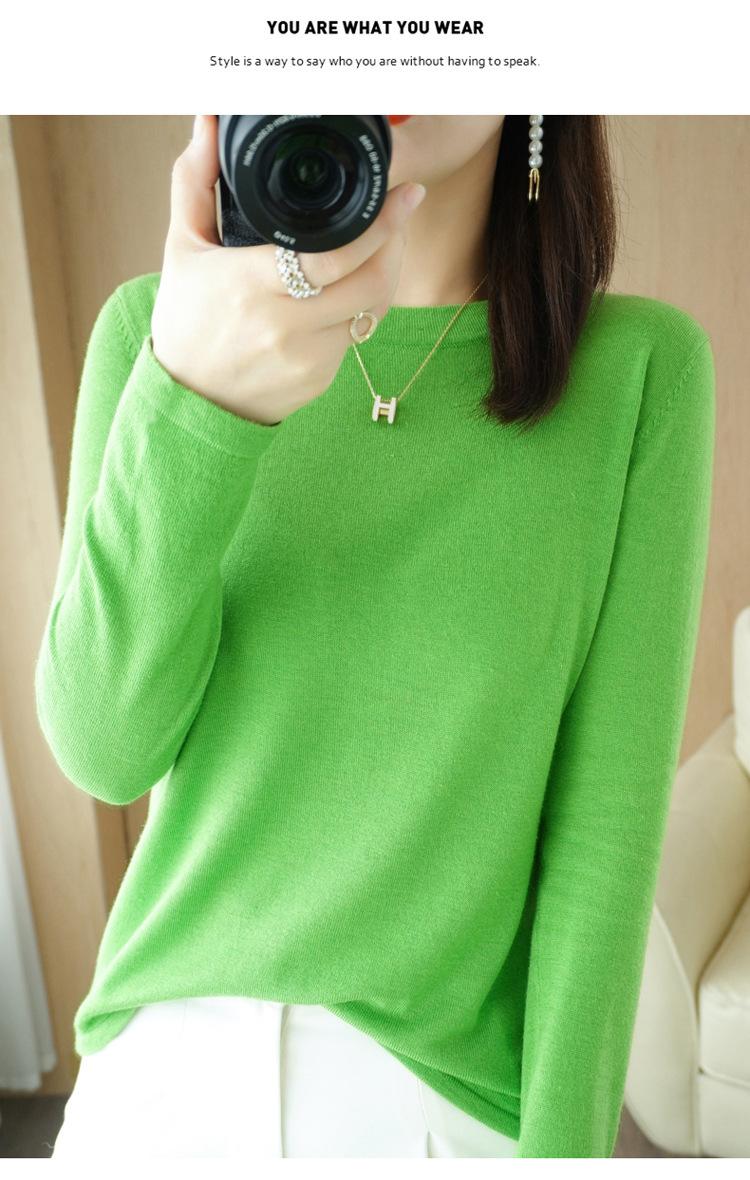 Lana peinada 2022 primavera y verano para mujer nuevo suéter corto holgado de cuello redondo de color sólido top básico