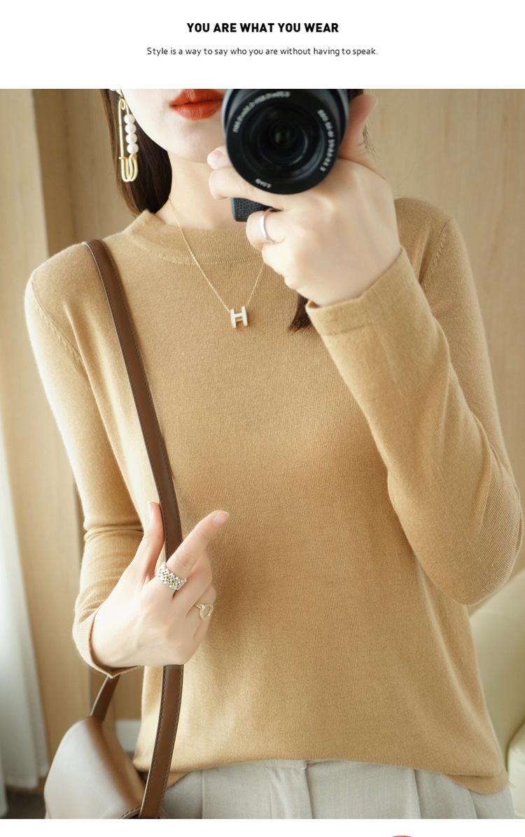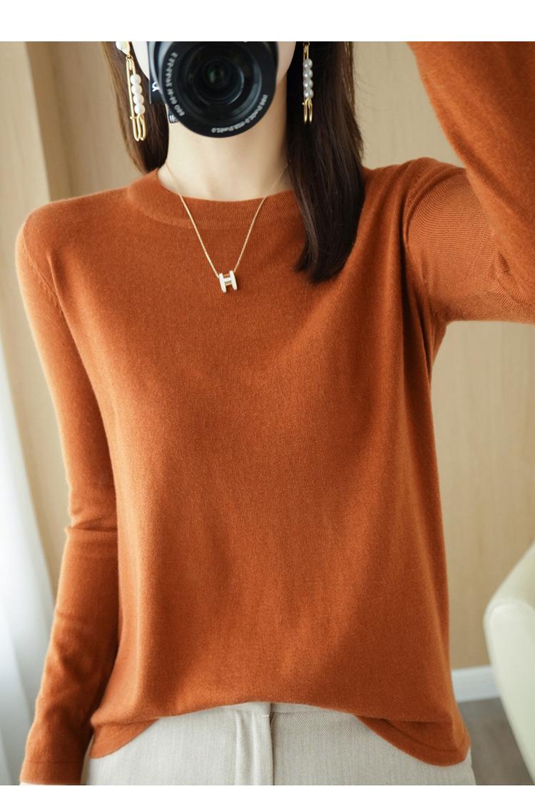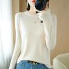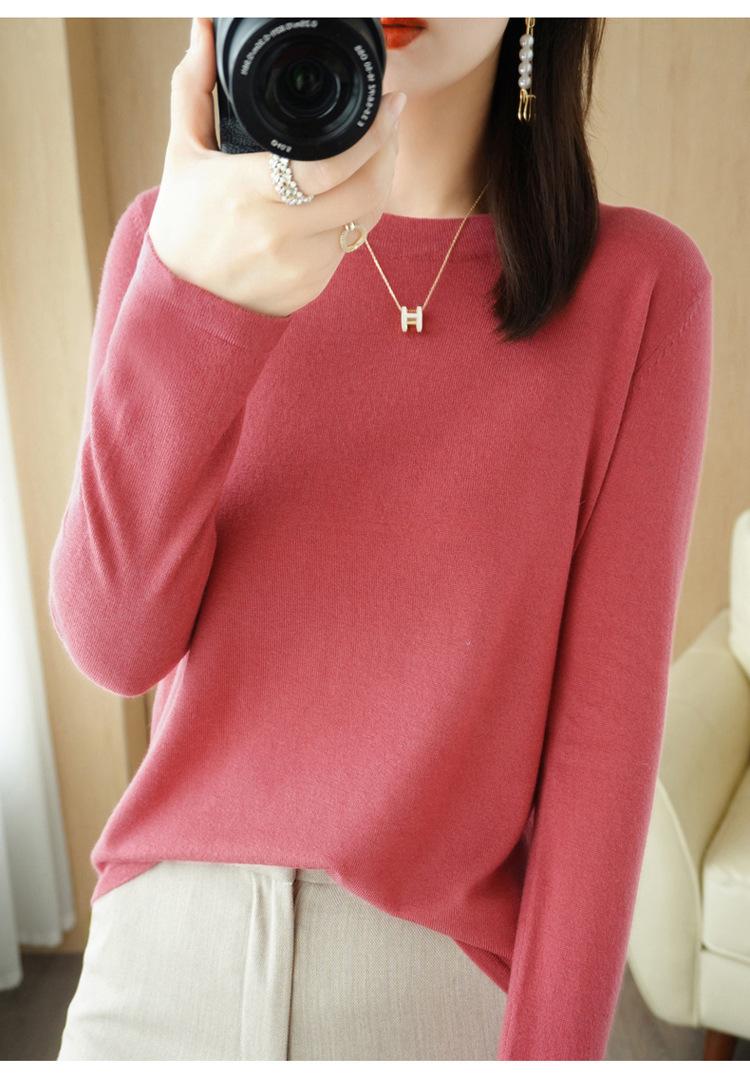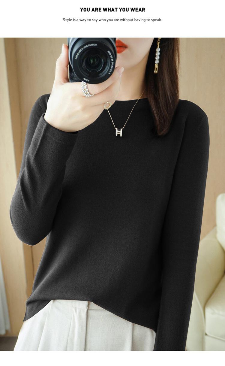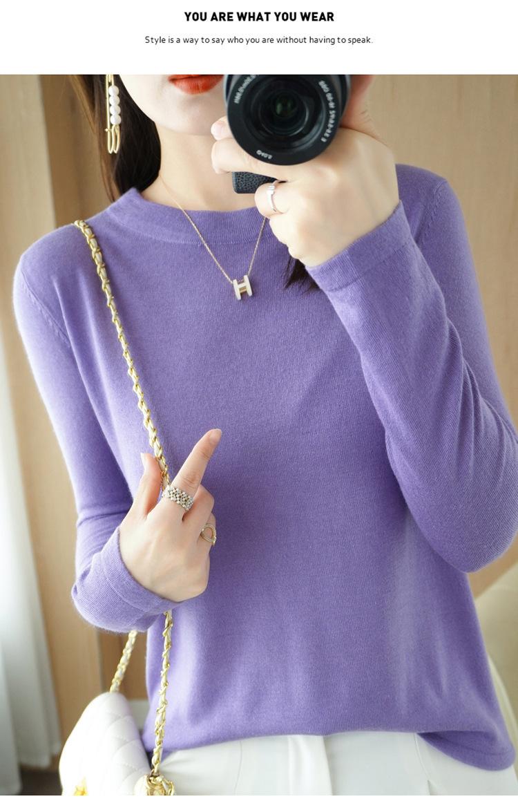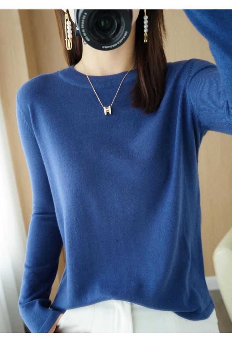 Lana peinada 2022 primavera y verano para mujer nuevo suéter corto holgado de cuello redondo de color sólido top básico