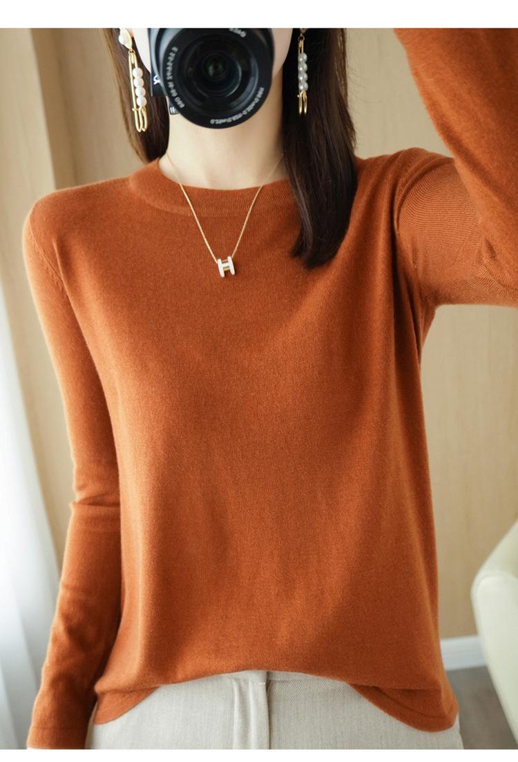 Lana Peinada 2025 Otoño e Invierno Nuevo Suéter Corto de Color Puro de Cuello Redondo Suelto para Mujer Top Básico de Punto