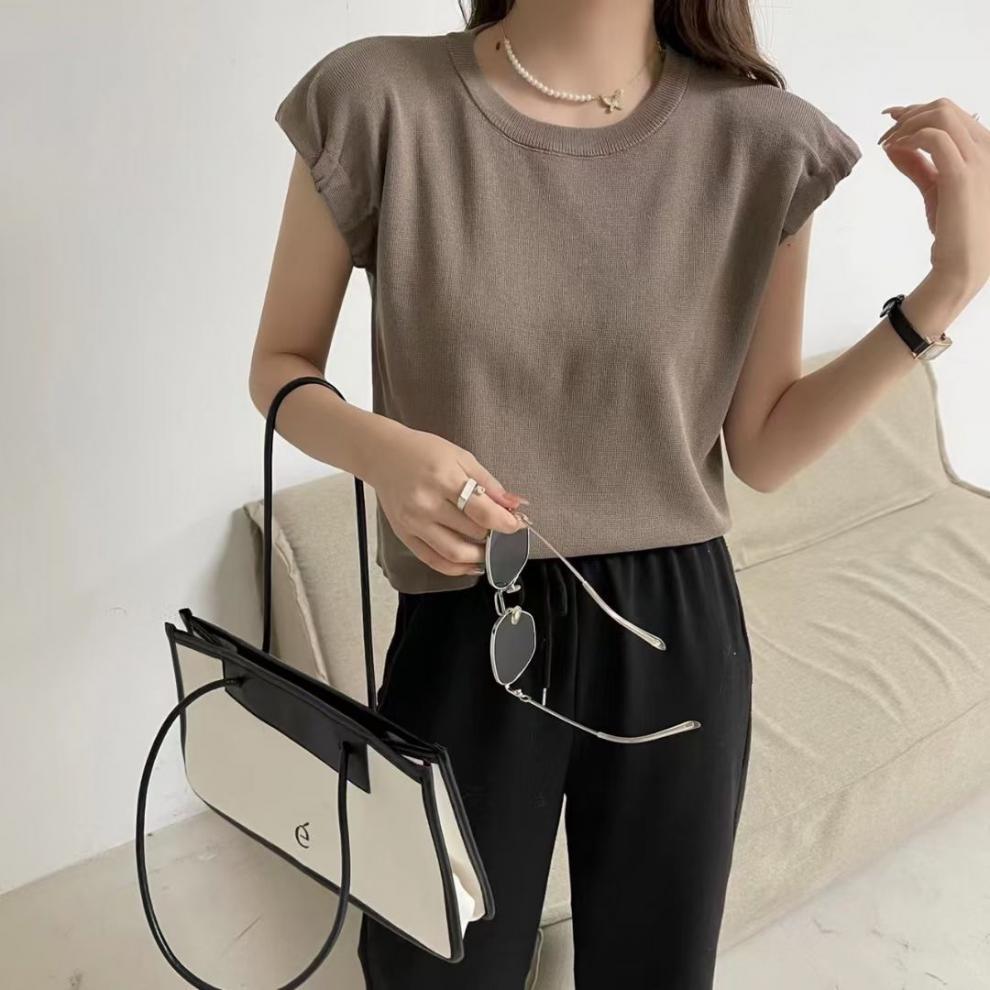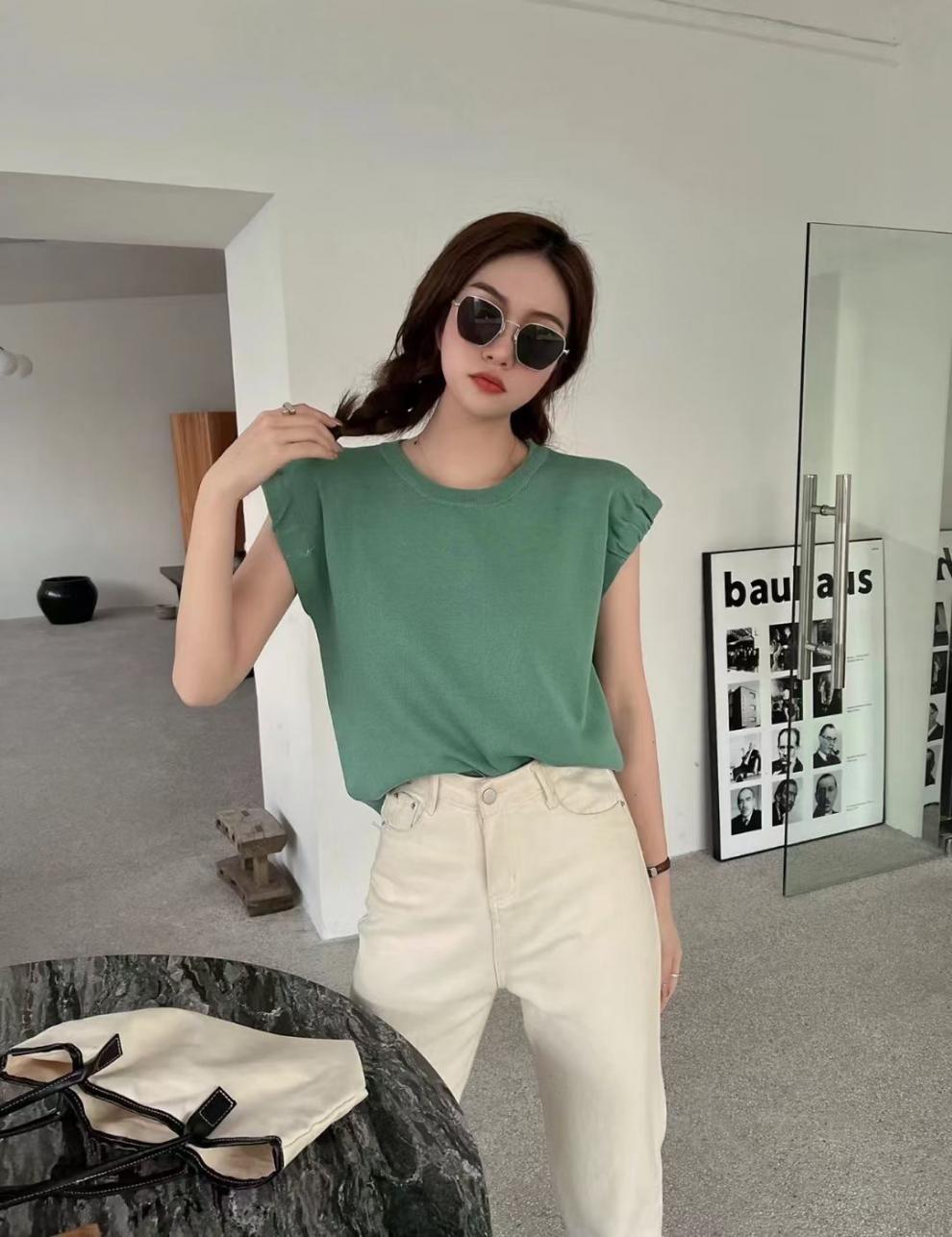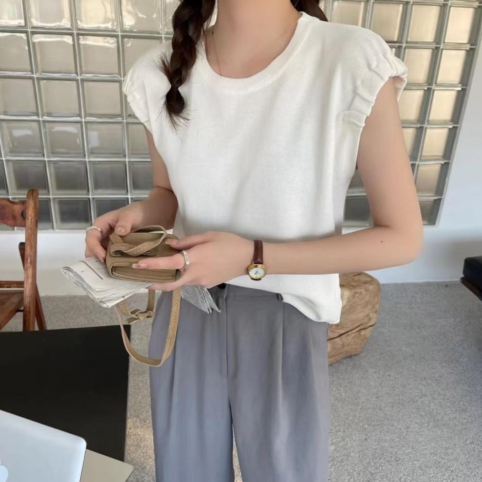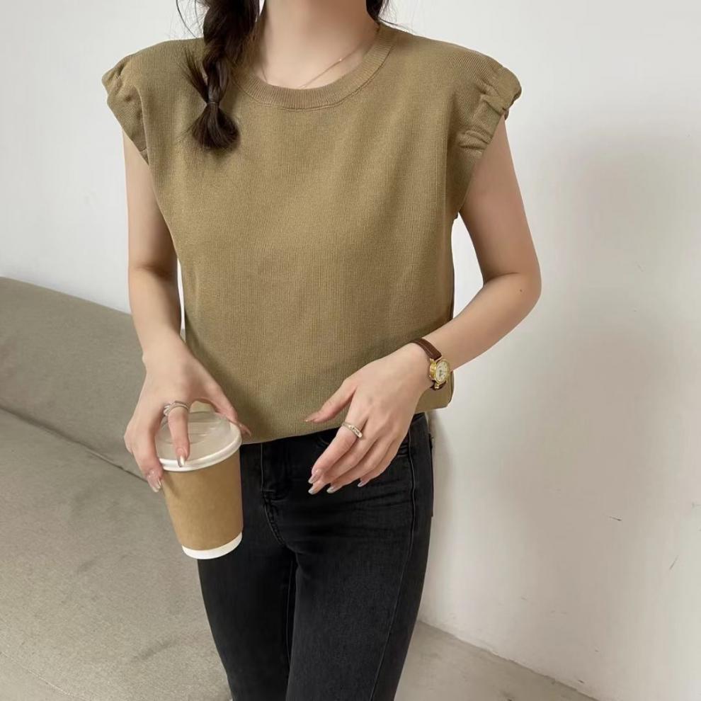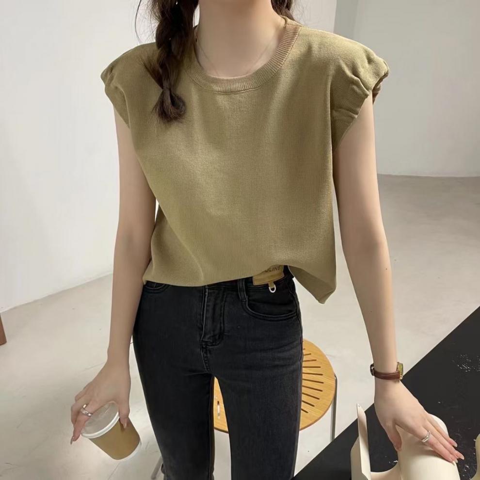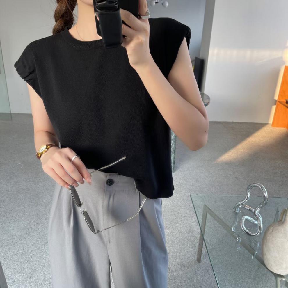 Chaleco de punto de primavera y verano 2023 para mujer, estilo coreano, cuello redondo, combina con todo.