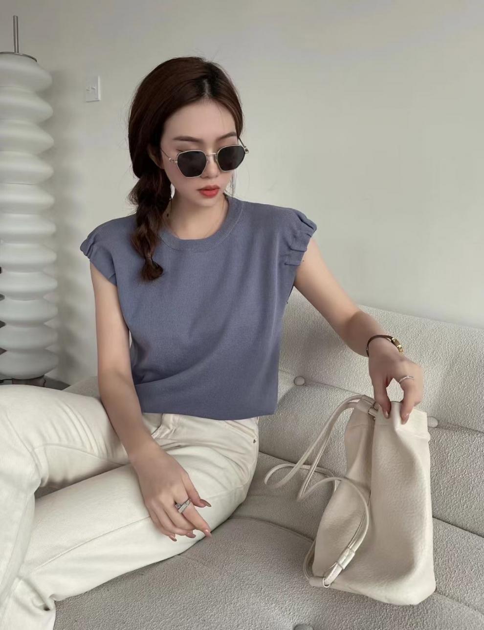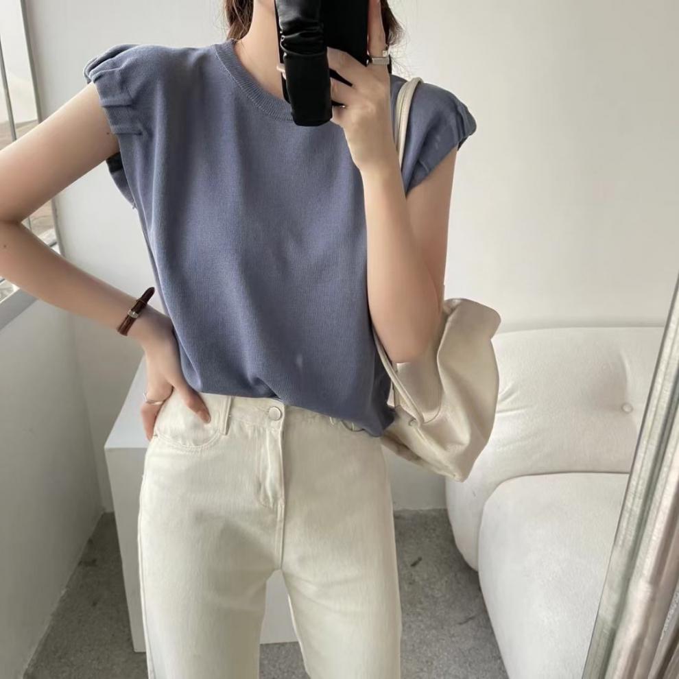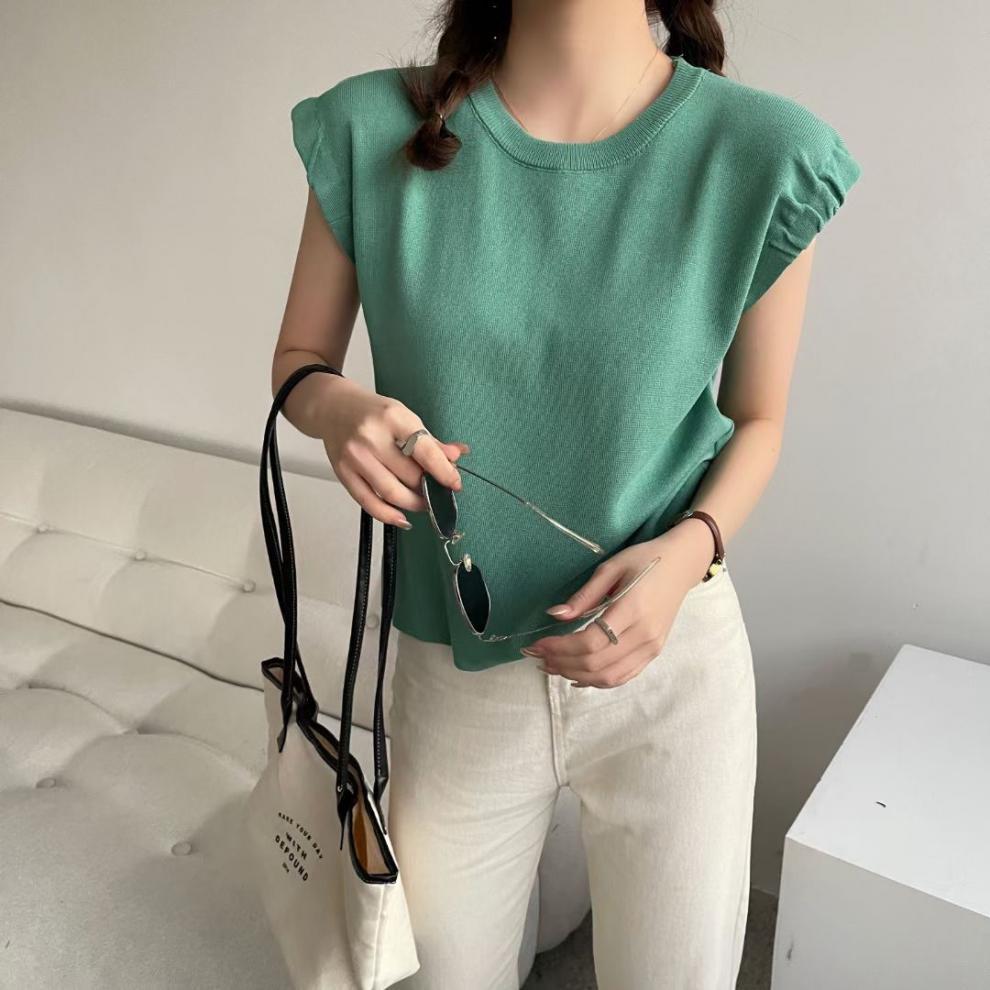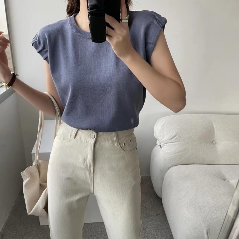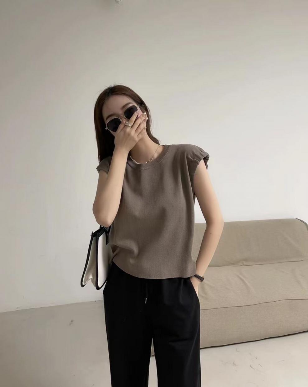 Chaleco de punto de primavera y verano 2023 para mujer, estilo coreano, cuello redondo, combina con todo.