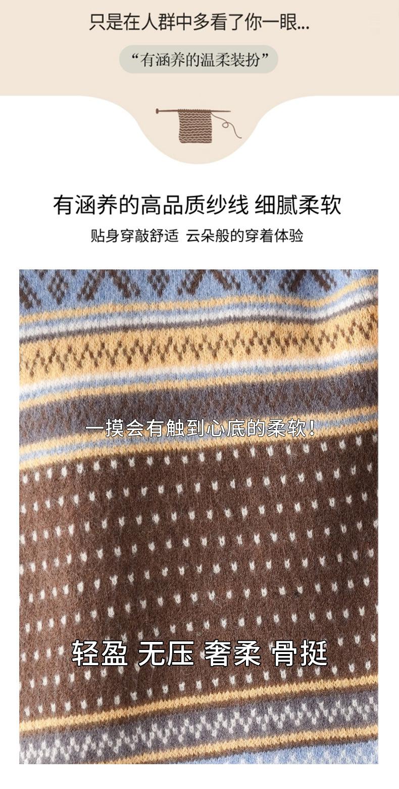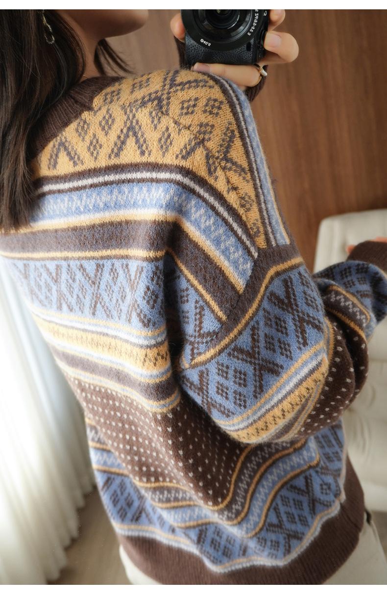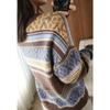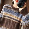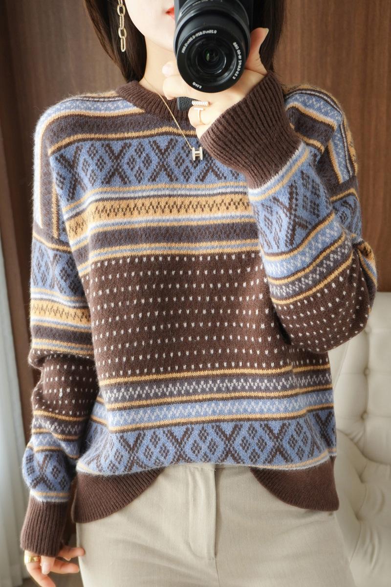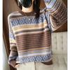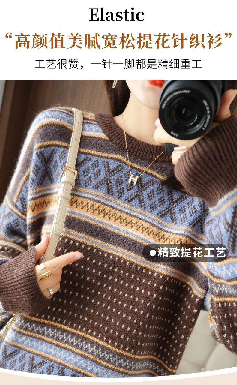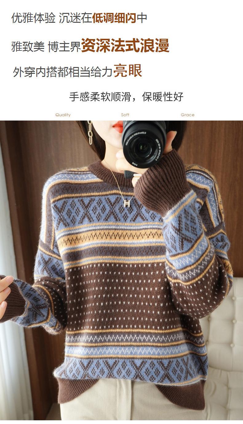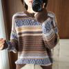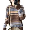 Otoño e invierno Nuevo suéter de punto para mujer cuello redondo holgado jacquard suéter holgado color contrastante camisa de fondo Mujer Europeo y Americano transfronterizo