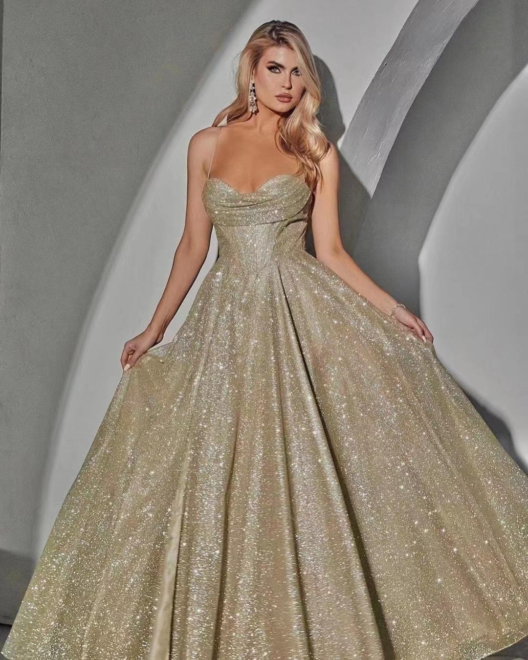 2025 Nueva Ropa de Mujer Transfronteriza Europea y Americana Amazon Falda Larga Top de Tubo sin Mangas Salpicado de Oro Vestido Sexy con Tirantes