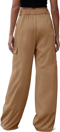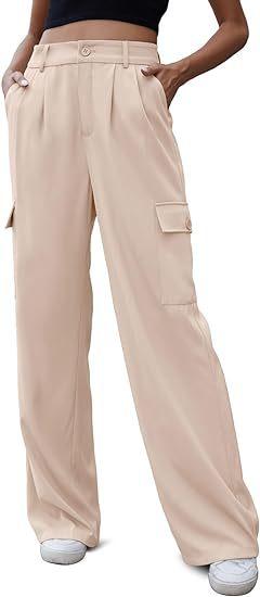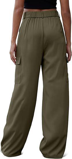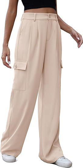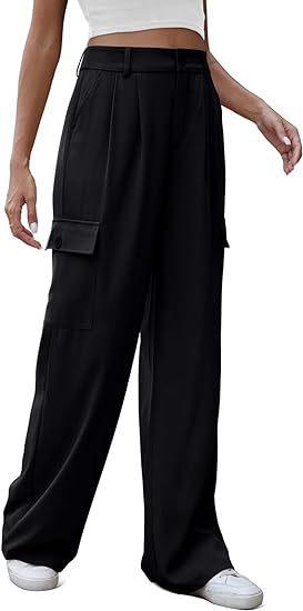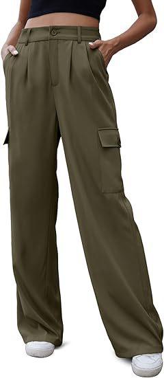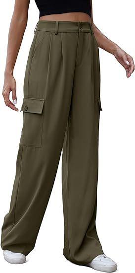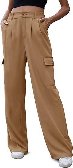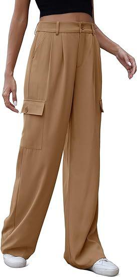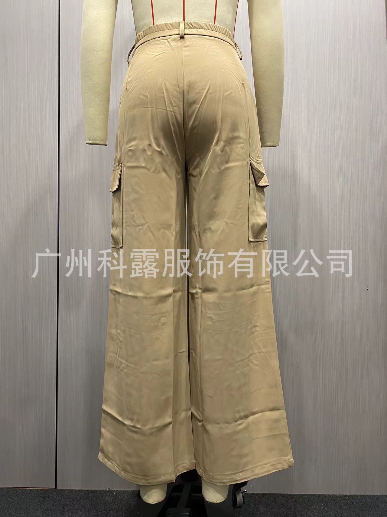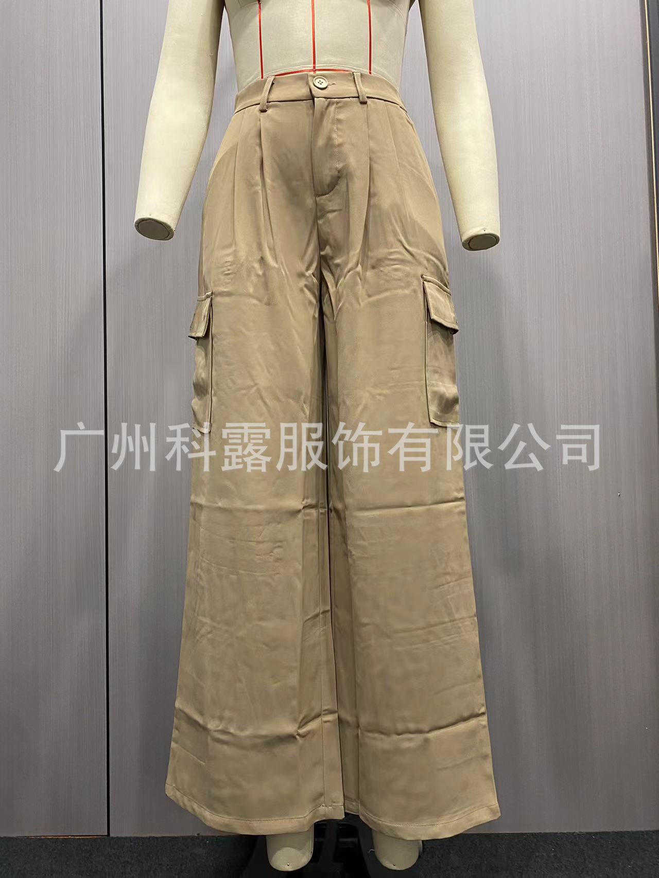 Amazon Transfronterizo Europa y América Nuevo Pantalón de Bolsillo Recto Casual Holgado de Color Sólido para Mujer Pantalón Grulla de Tela