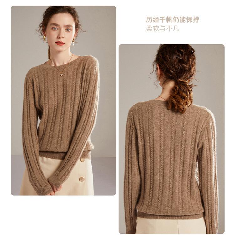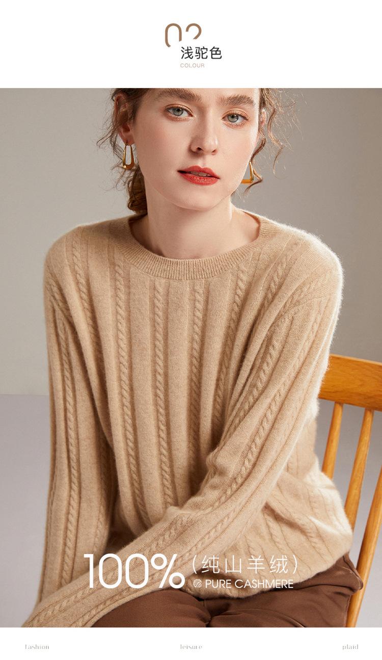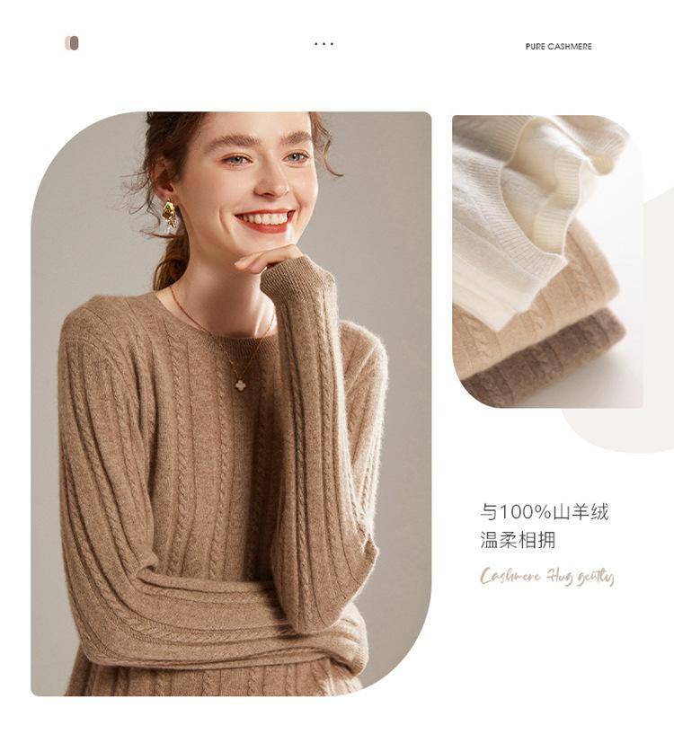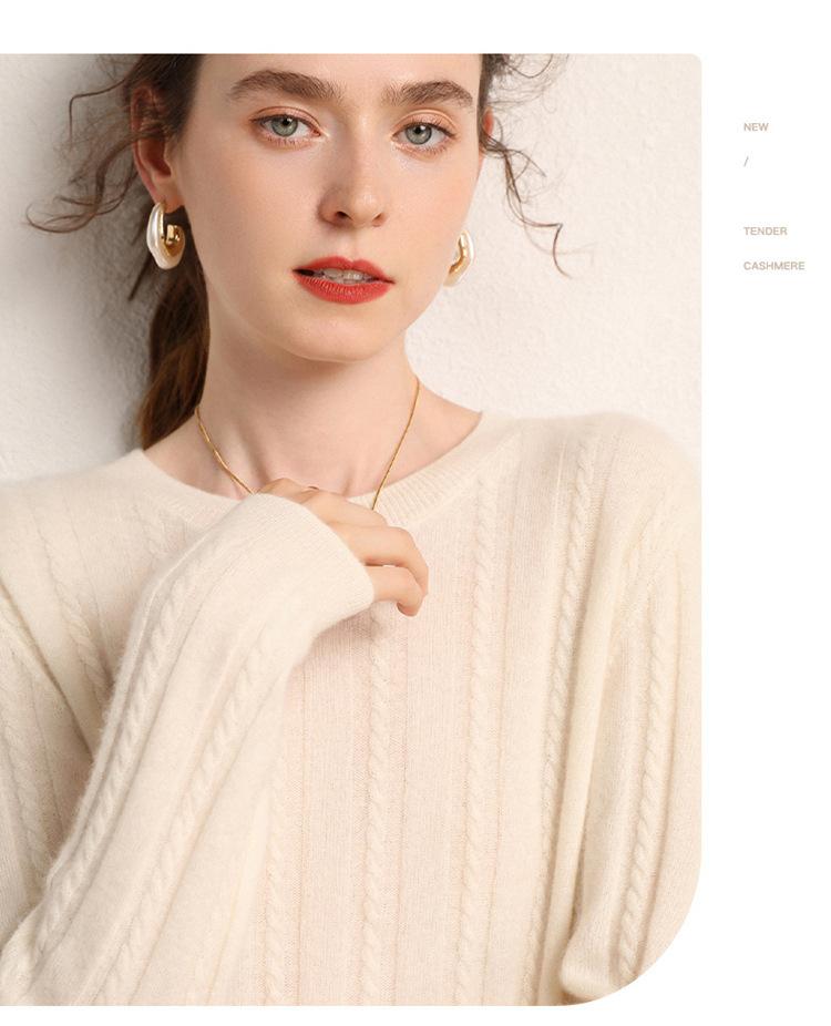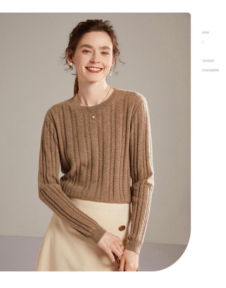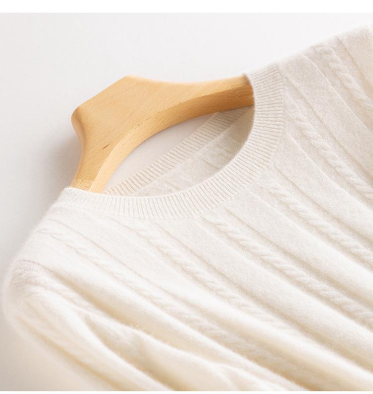 Suéter de Cachemira Torcido de Cuello Redondo para Otoño e Invierno para Mujer, Cachemira Pura, Suéter Holgado, Jacquard, Top Básico Corto de Punto