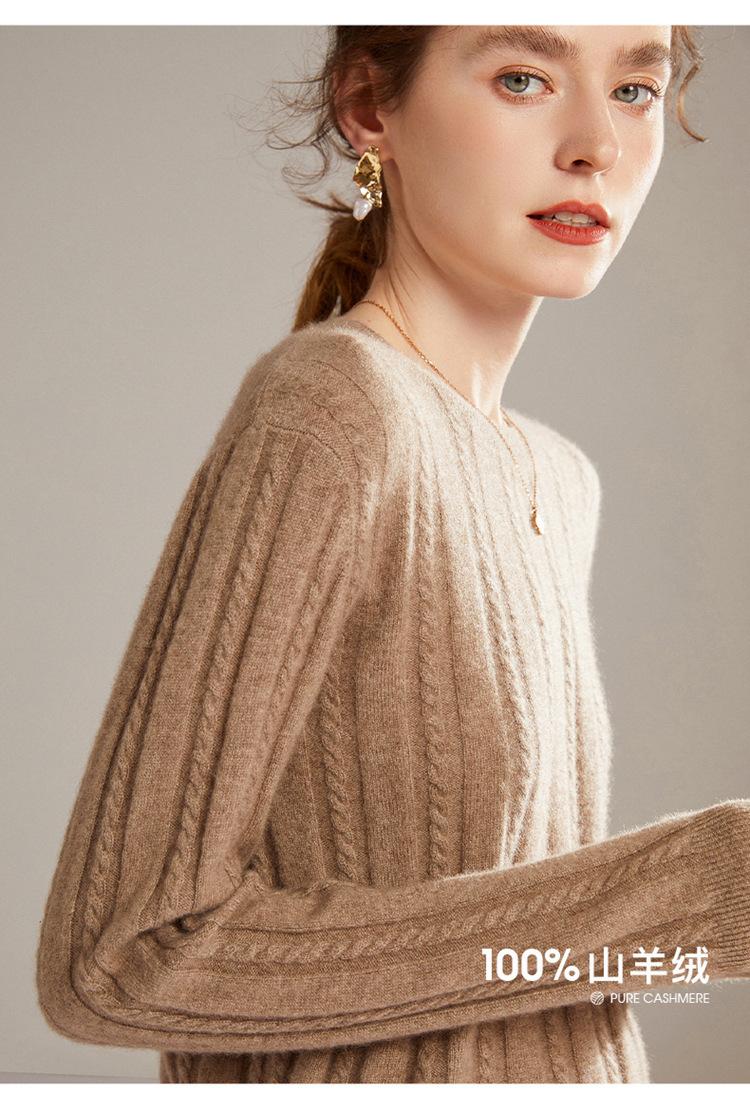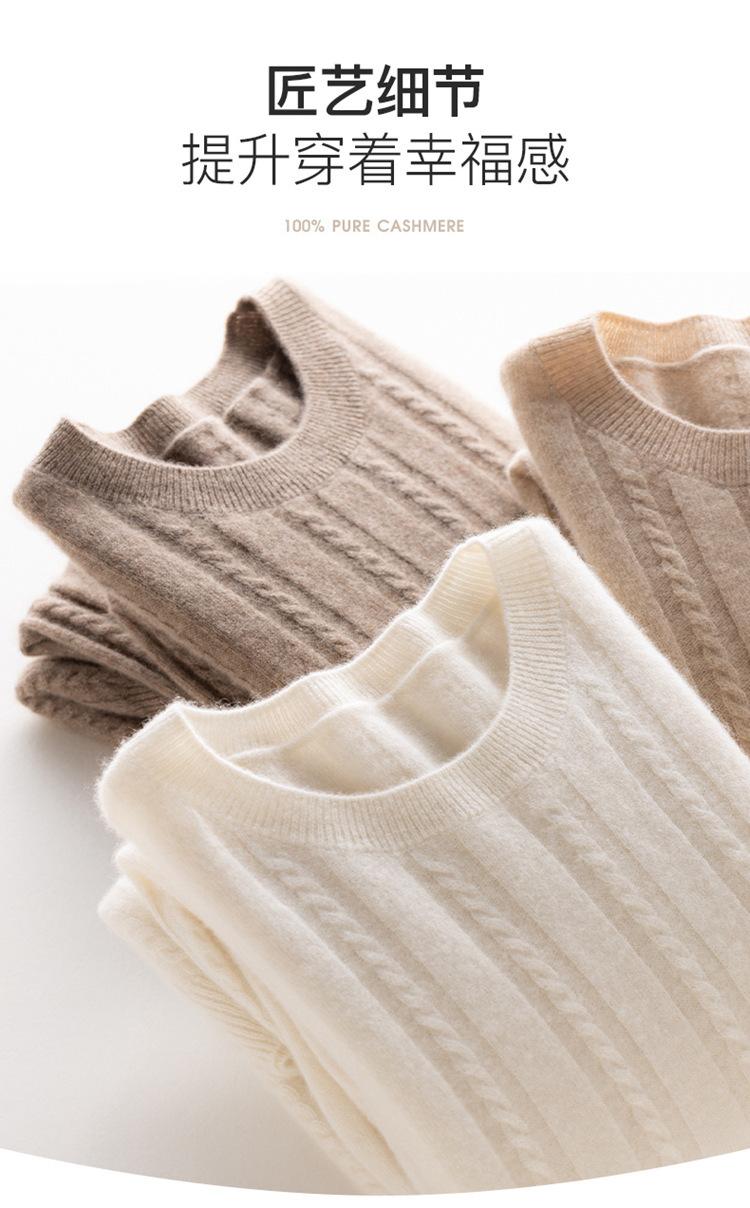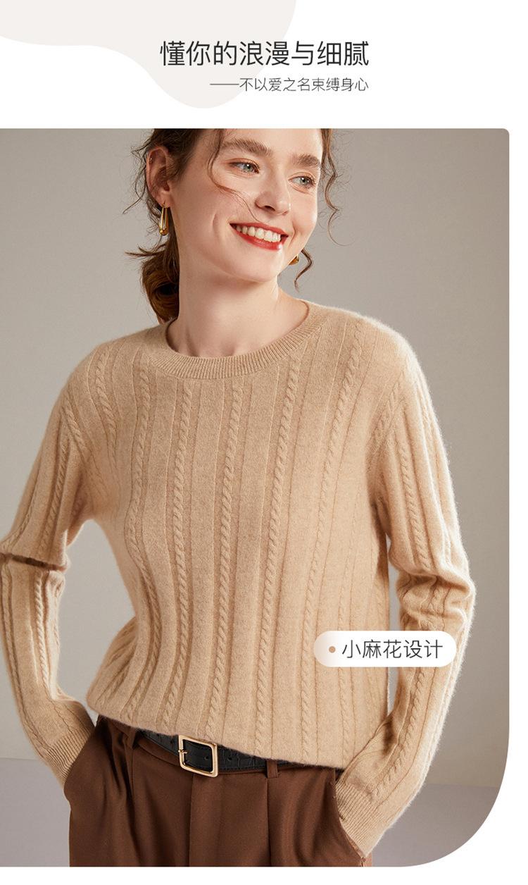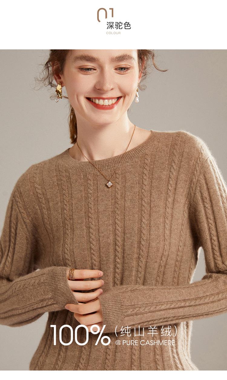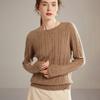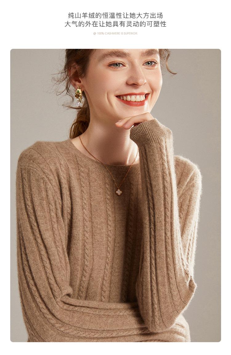 Suéter de Cachemira Torcido de Cuello Redondo para Otoño e Invierno para Mujer, Cachemira Pura, Suéter Holgado, Jacquard, Top Básico Corto de Punto