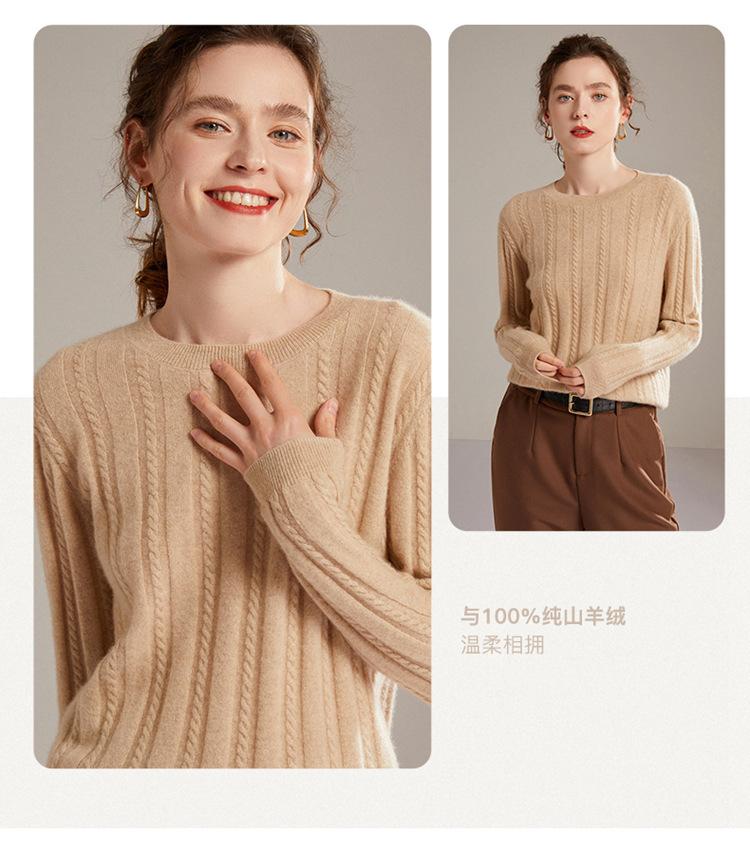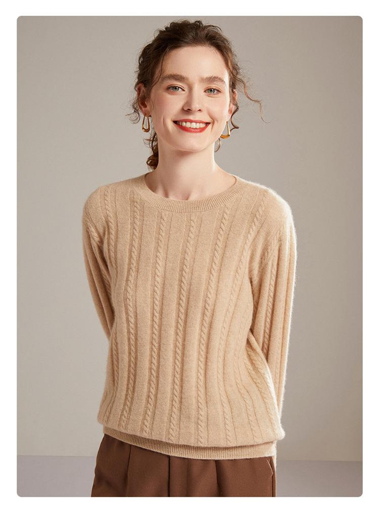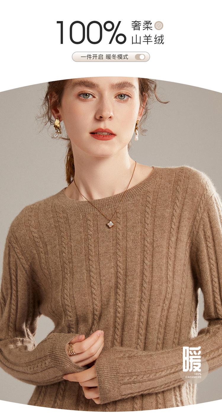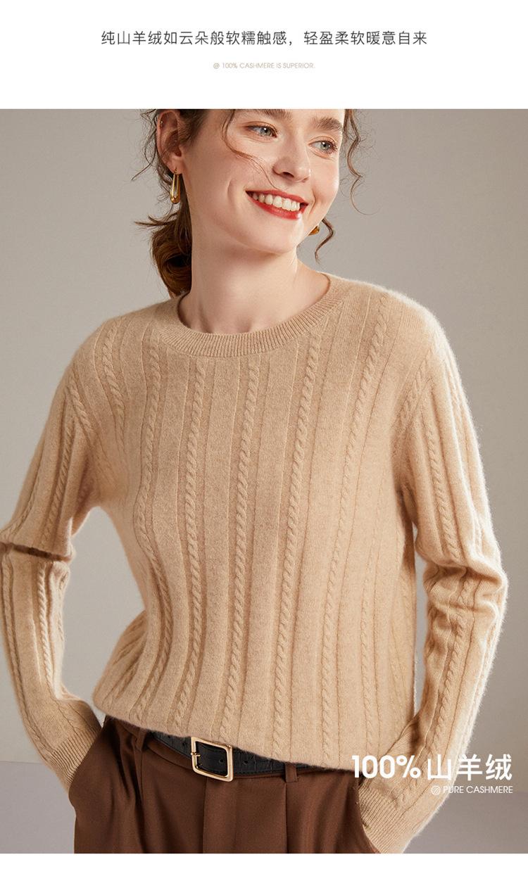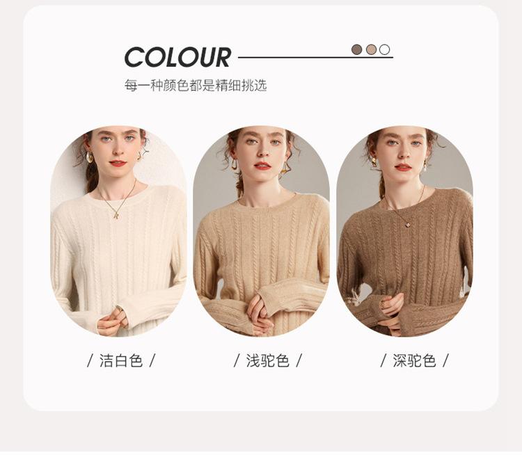 Suéter de Cachemira Torcido de Cuello Redondo para Otoño e Invierno para Mujer, Cachemira Pura, Suéter Holgado, Jacquard, Top Básico Corto de Punto