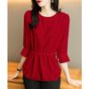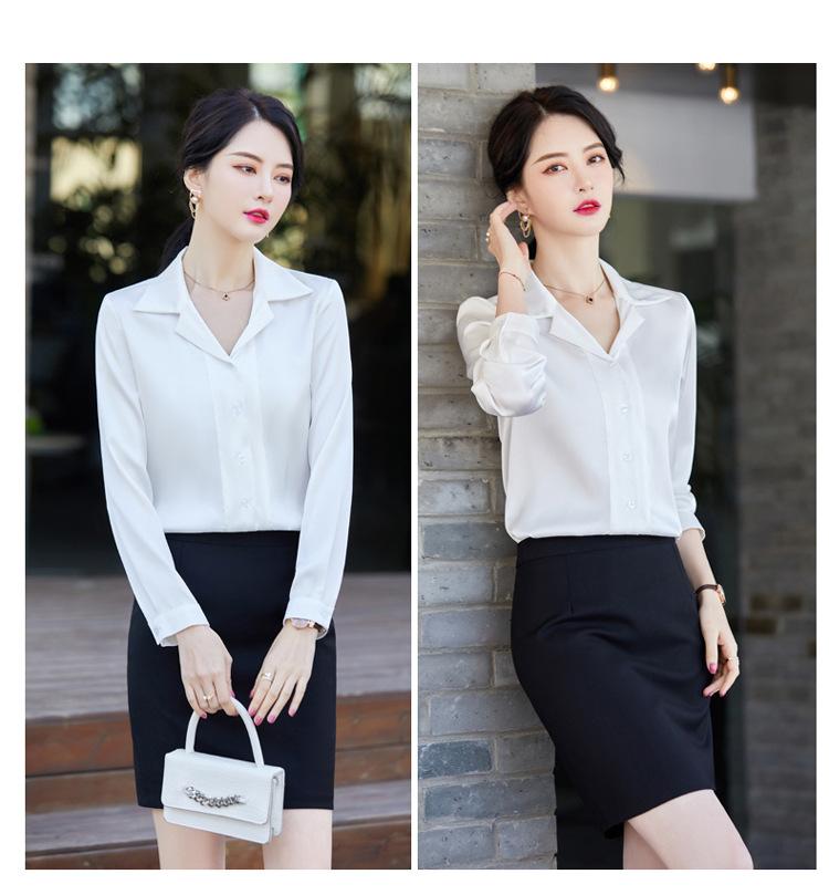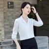 Camisa de gasa para mujer, manga larga, primavera y otoño 2022, jersey dulce, cuello en V, talla grande, informal, top profesional para mujer.