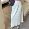 Falda tejida otoño e invierno nueva falda de largo medio de cintura alta a cuadros línea A con borlas lana falda que cubre la entrepierna para mujer