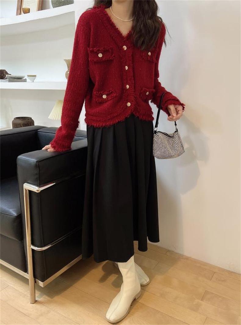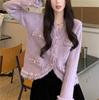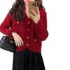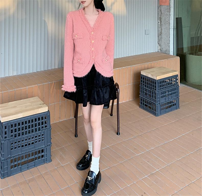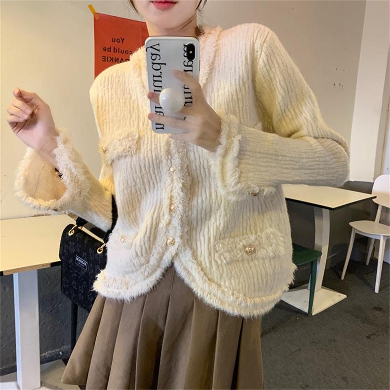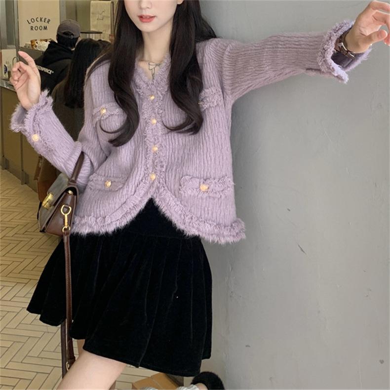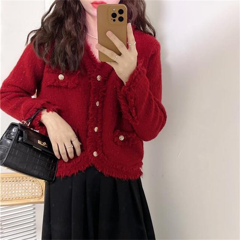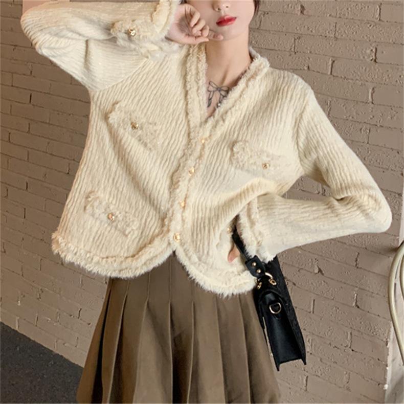 Suéter Dulce Coreano con Borlas de Cuello en V para Mujer Chaqueta Otoño e Invierno Nuevo Suelto Color Puro Manga Larga Cárdigan de Punto Ropa de Mujer