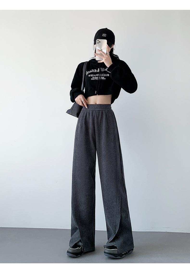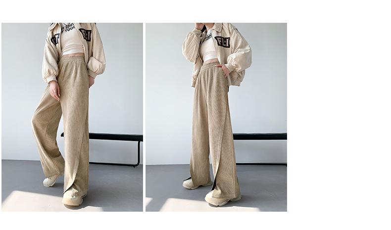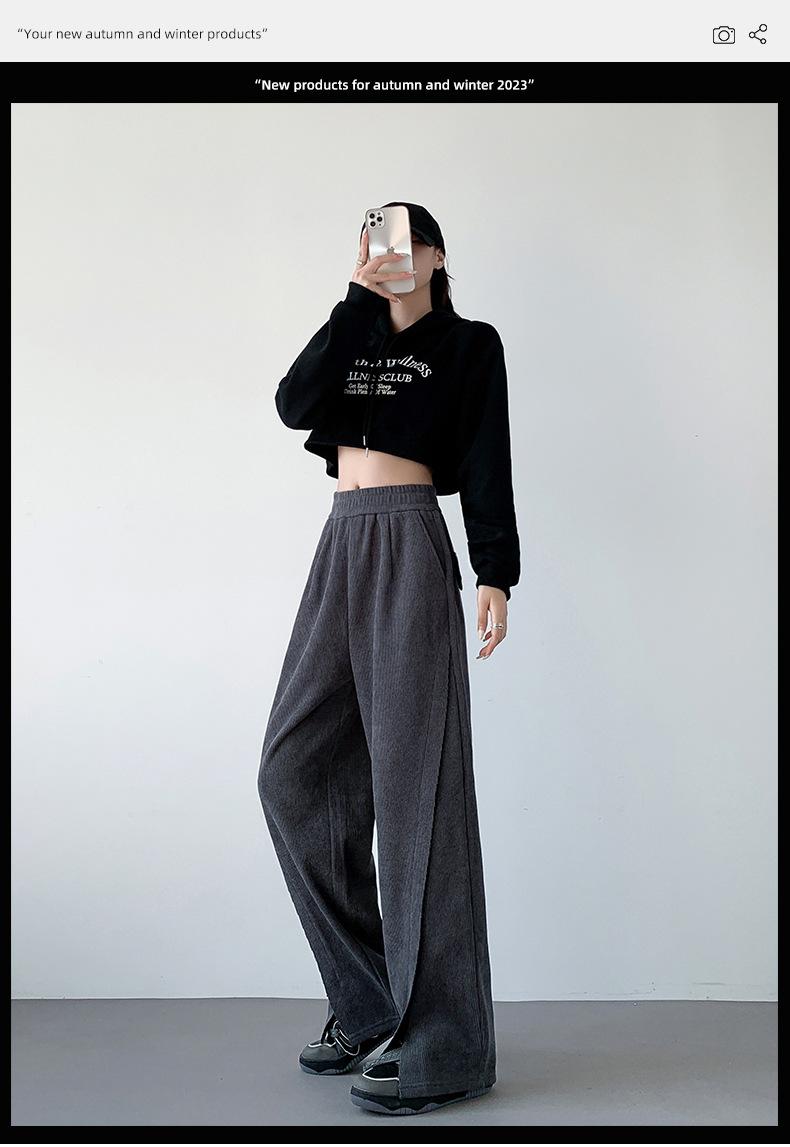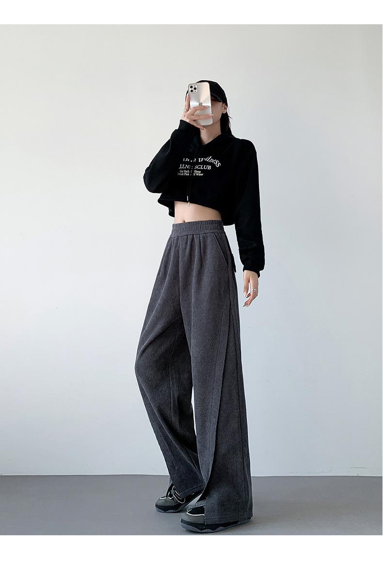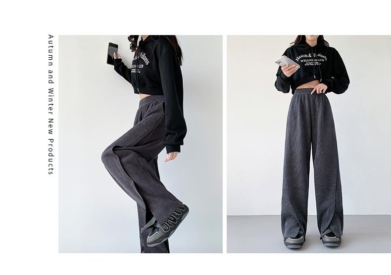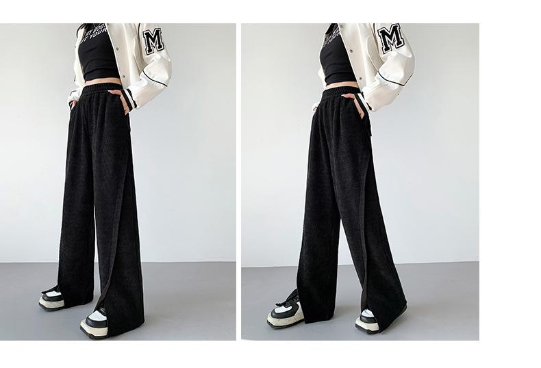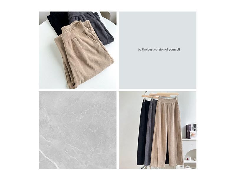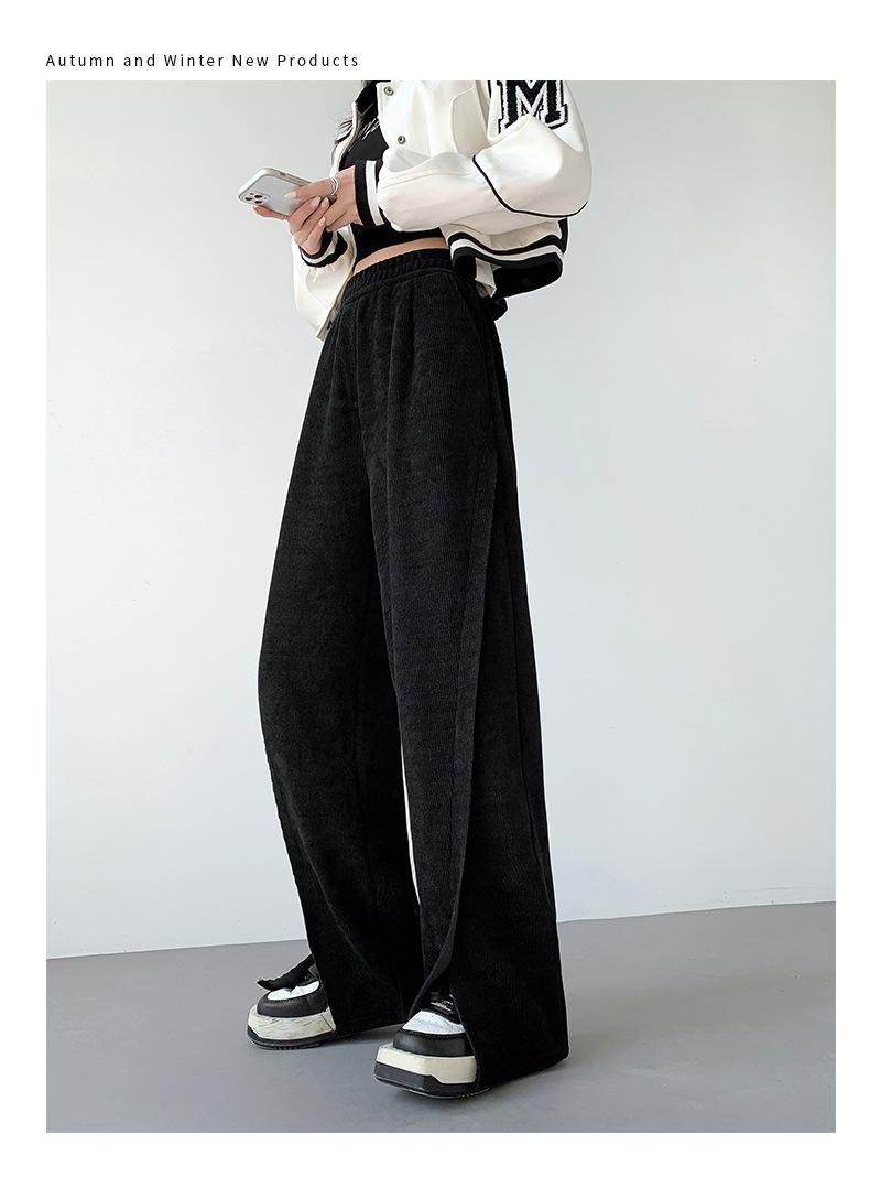 Pantalones Casuales de Terciopelo de Invierno de 750g, Holgados de Cintura Alta con Aspecto Adelgazante Rectos de Terciopelo Europeo Simples Versátiles con Abertura de Pierna Ancha