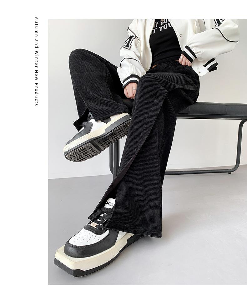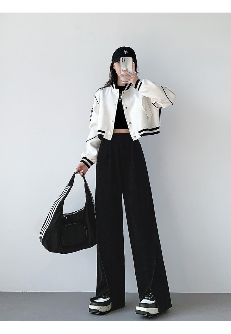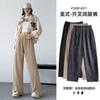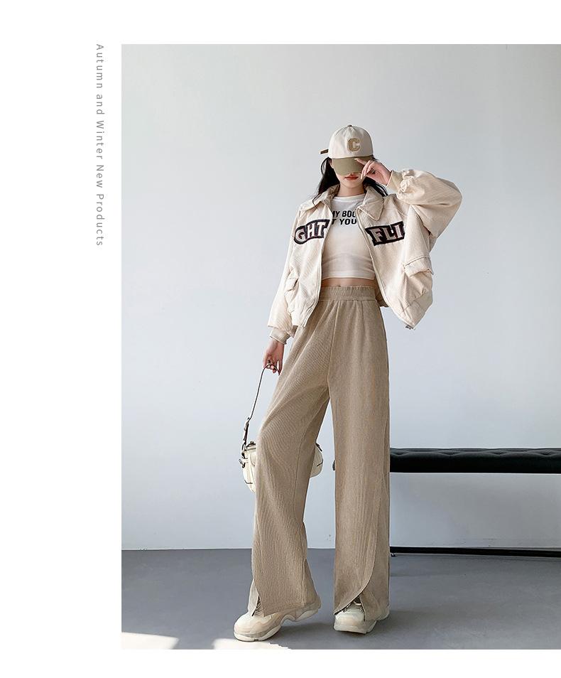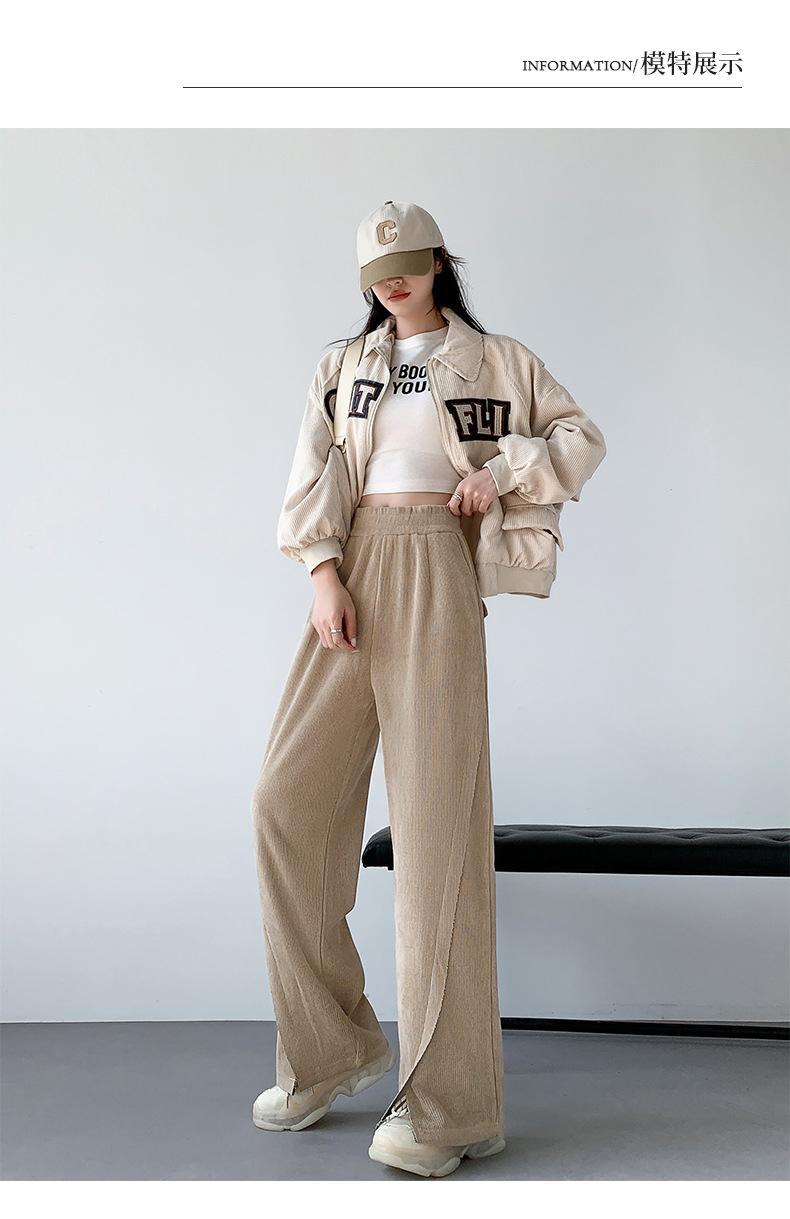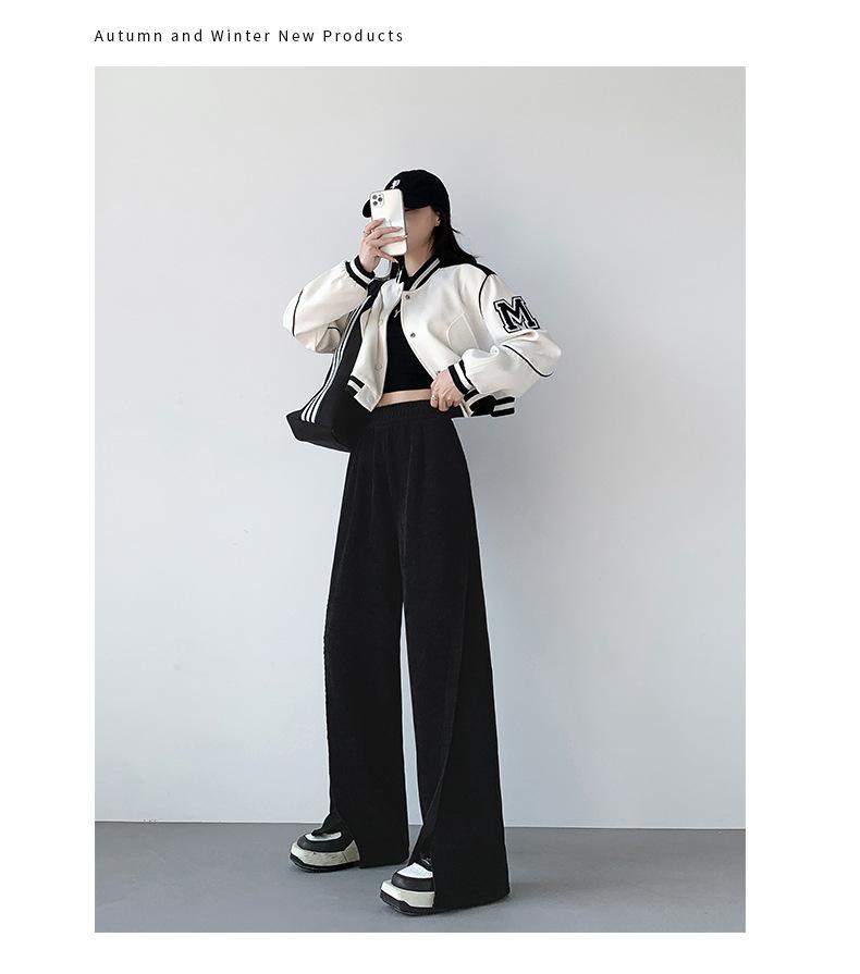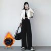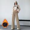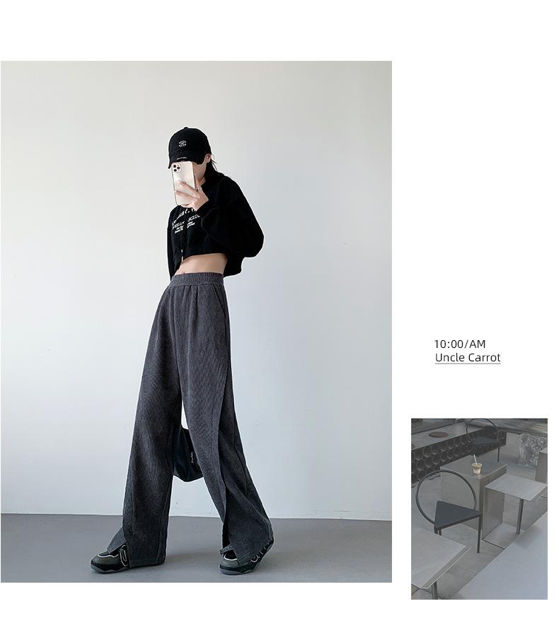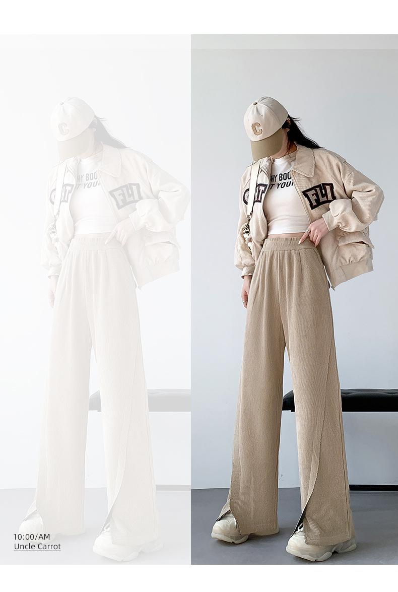 Pantalones Casuales de Terciopelo de Invierno de 750g, Holgados de Cintura Alta con Aspecto Adelgazante Rectos de Terciopelo Europeo Simples Versátiles con Abertura de Pierna Ancha