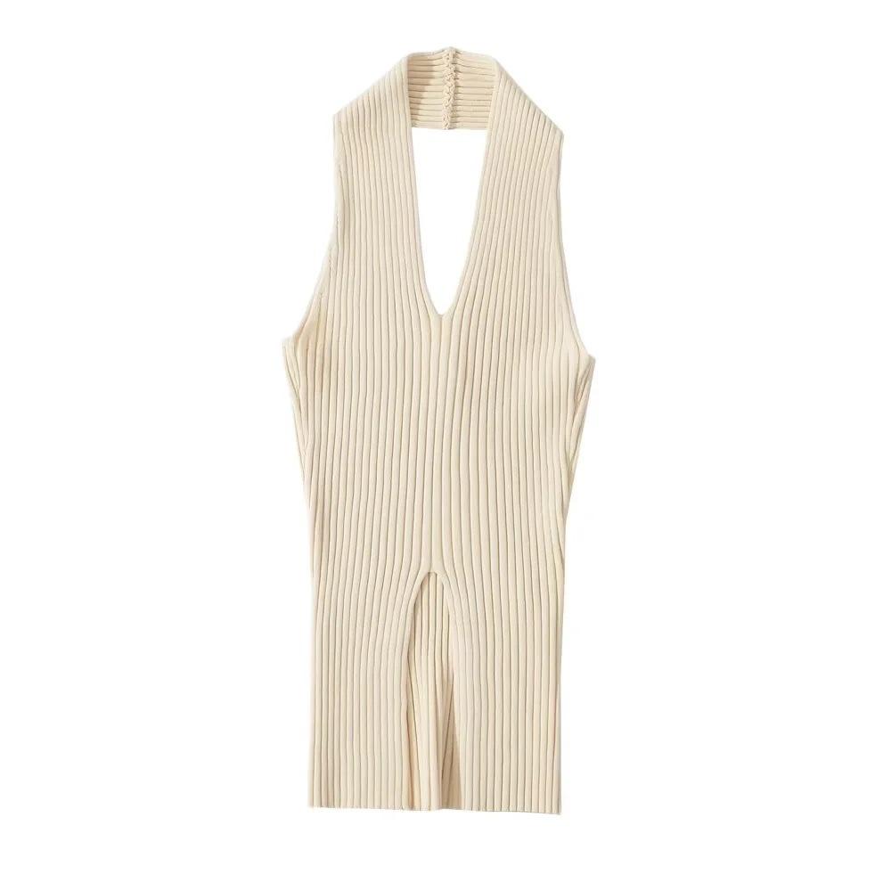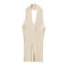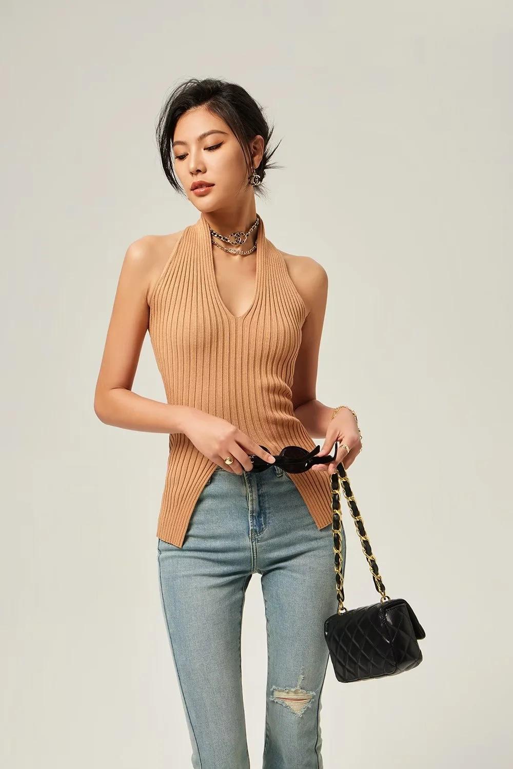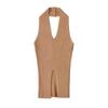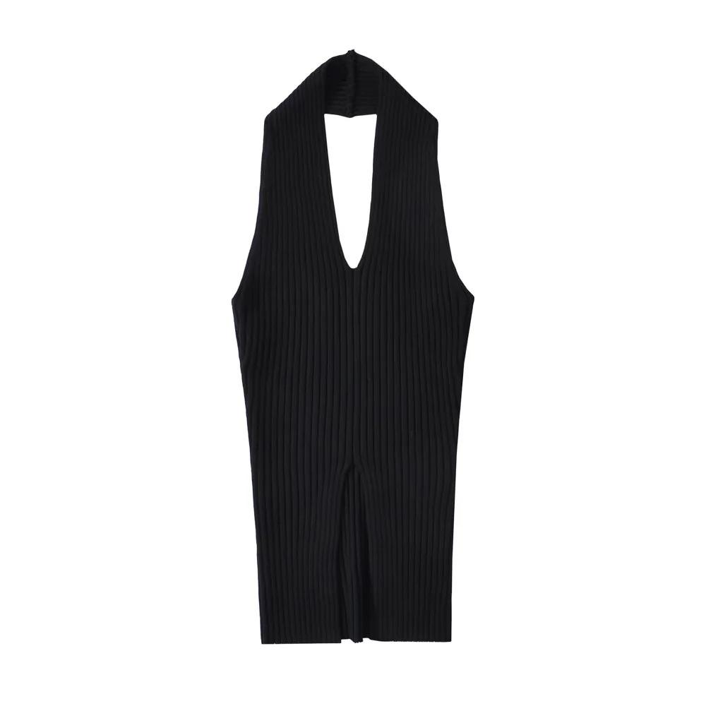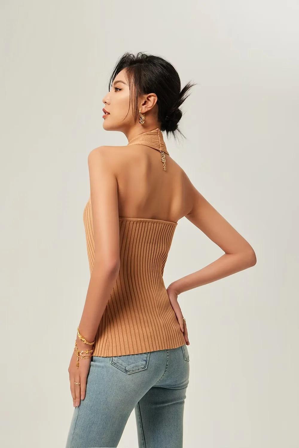 Chaleco de punto ajustado con abertura y espalda descubierta para mujer, estilo americano, sexy, con escote en V y tirantes para el ombligo