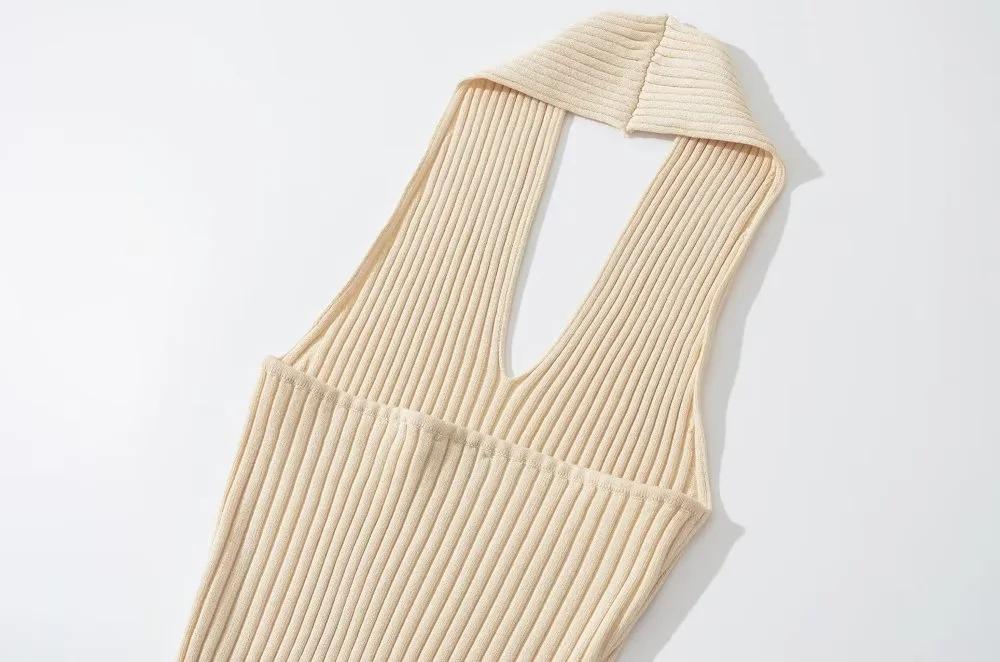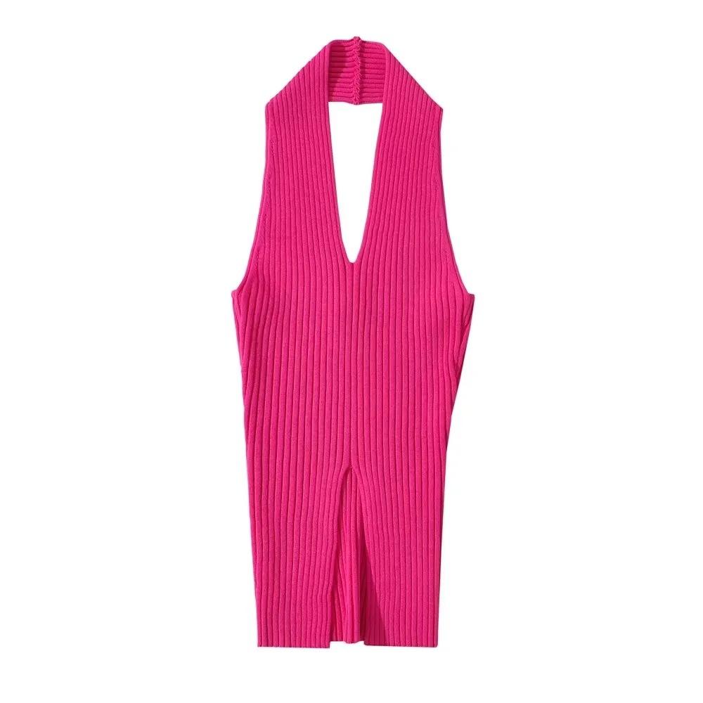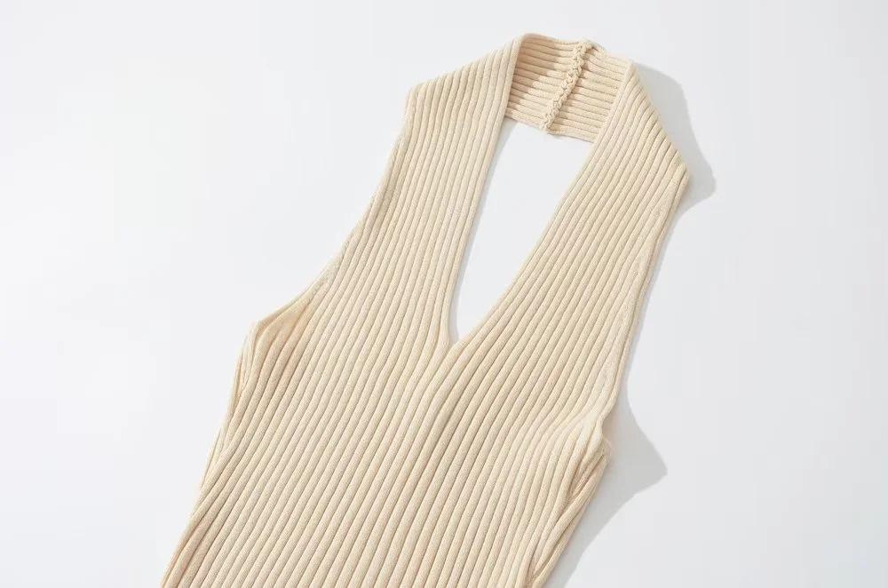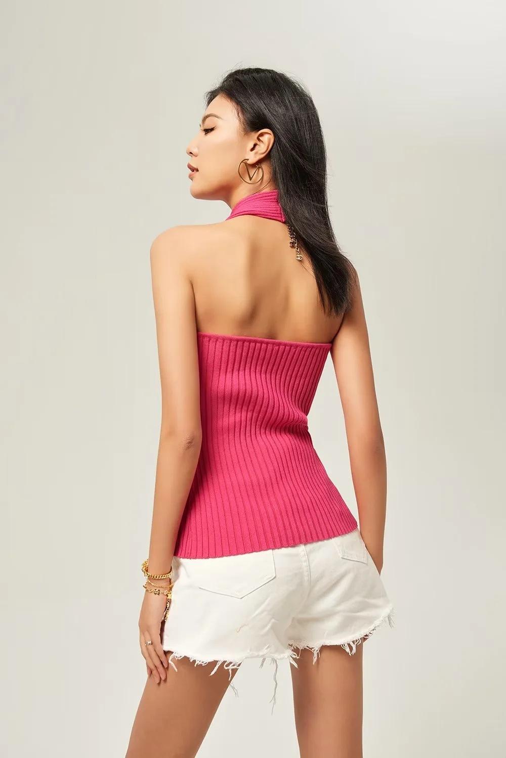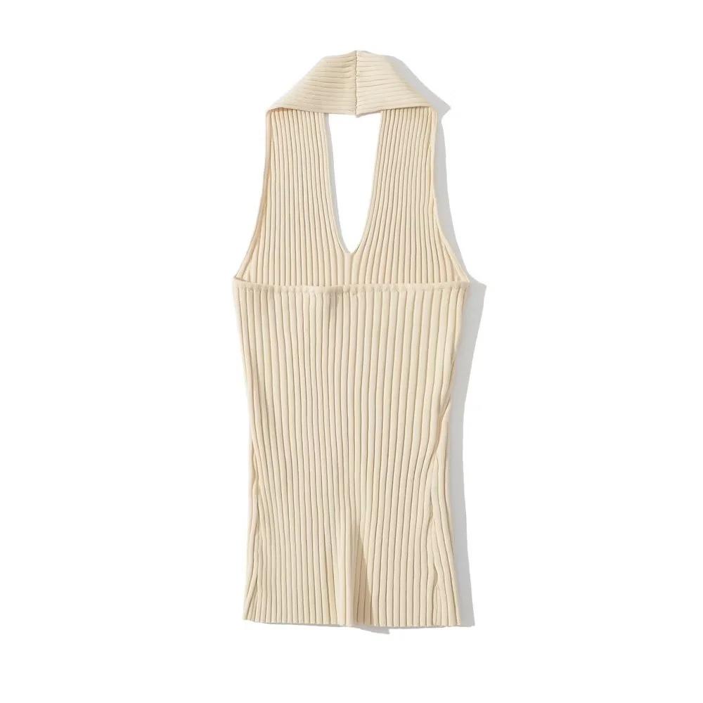 Chaleco de punto ajustado con abertura y espalda descubierta para mujer, estilo americano, sexy, con escote en V y tirantes para el ombligo