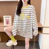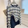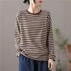 Camiseta de manga larga a rayas con cuello redondo suave y cómoda para mujer, estilo coreano holgado, informal, combinable, cepillada, para otoño e invierno.