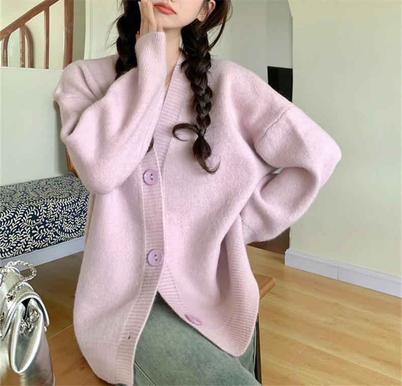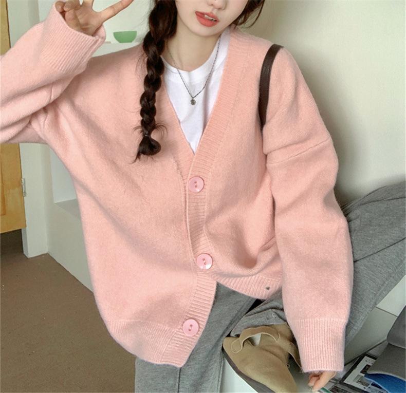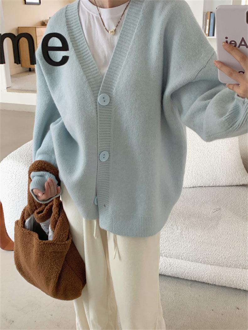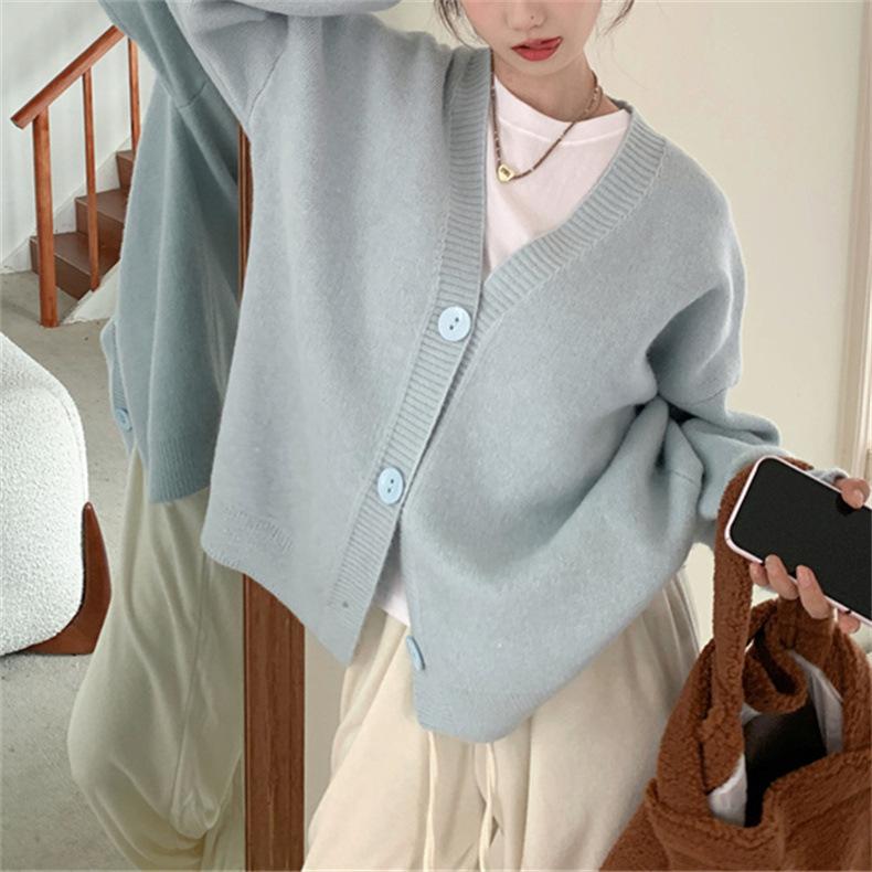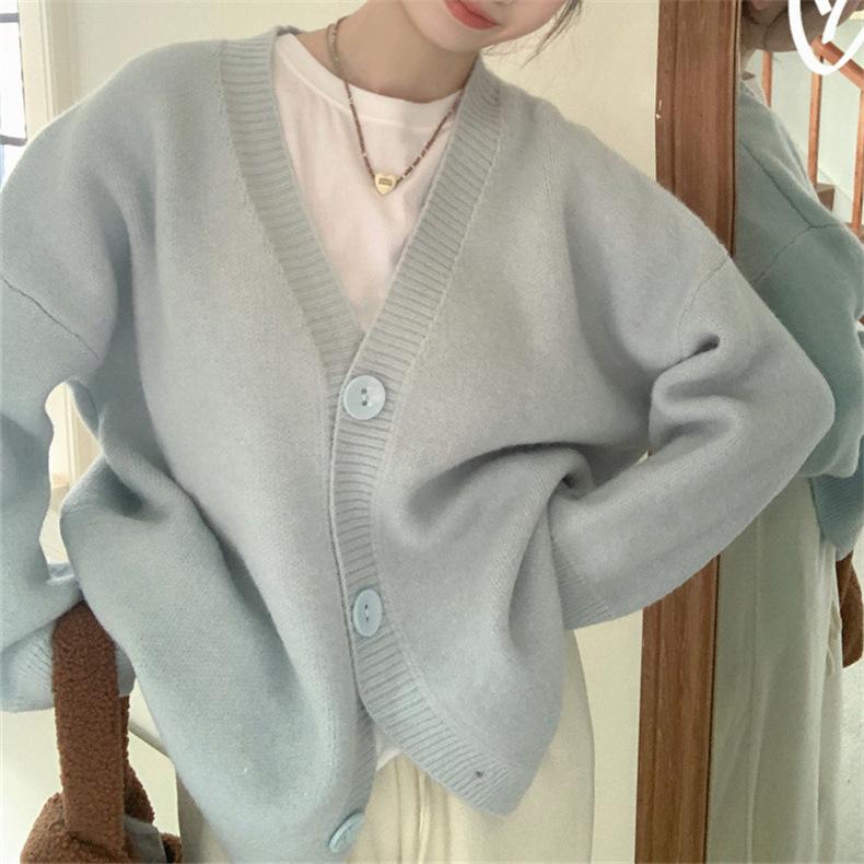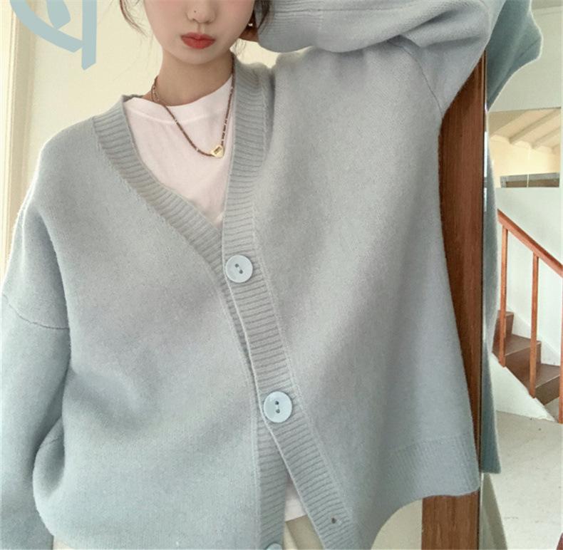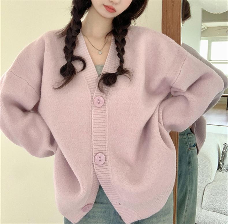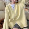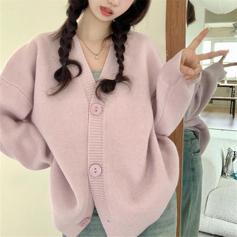 Estilo Perezoso Color Puro Estilo Coreano Holgado Tejido de Punto Ropa Exterior Grande Otoño e Invierno Nuevo Monopecho Talla Grande Cárdigan para Mujer Moderno para Mujer