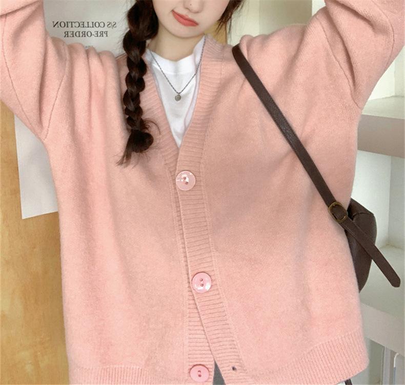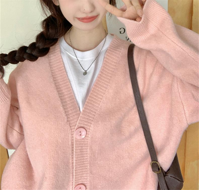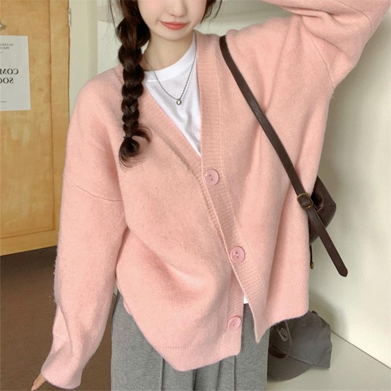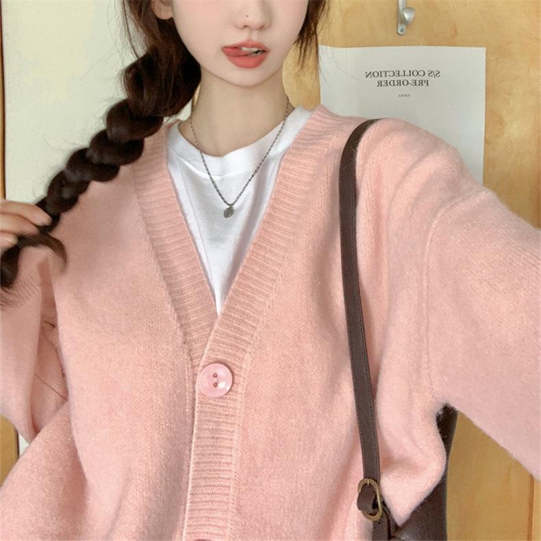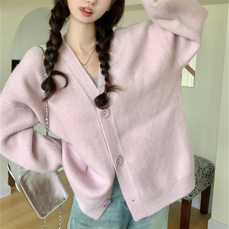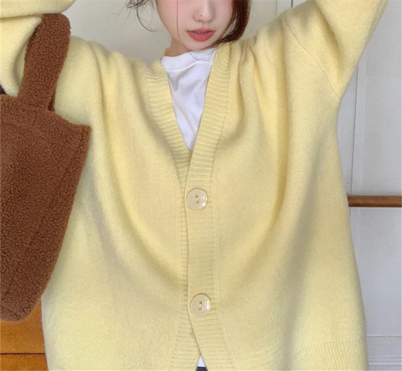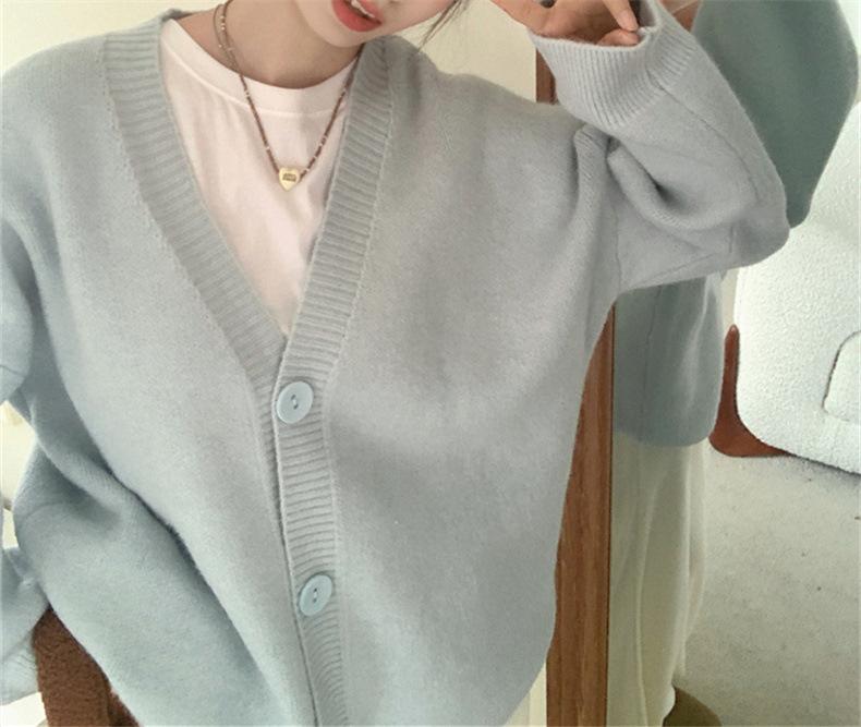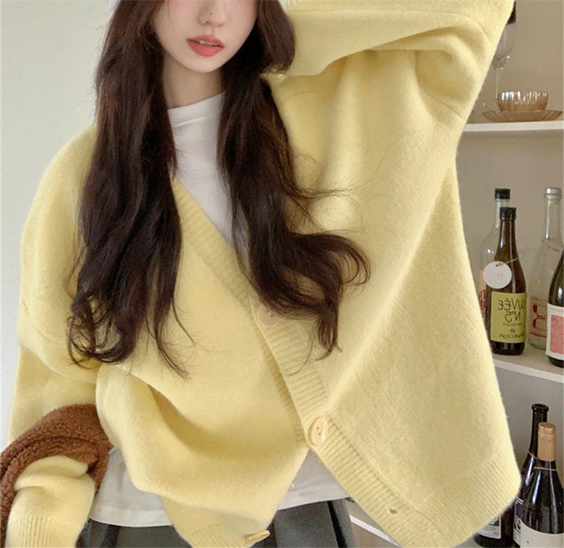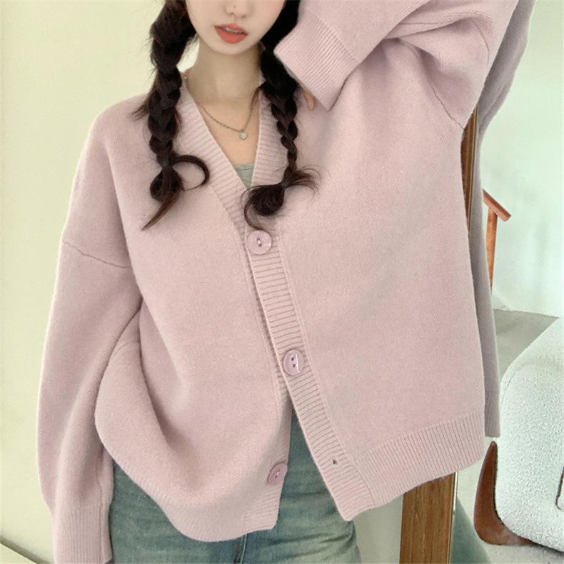 Estilo Perezoso Color Puro Estilo Coreano Holgado Tejido de Punto Ropa Exterior Grande Otoño e Invierno Nuevo Monopecho Talla Grande Cárdigan para Mujer Moderno para Mujer