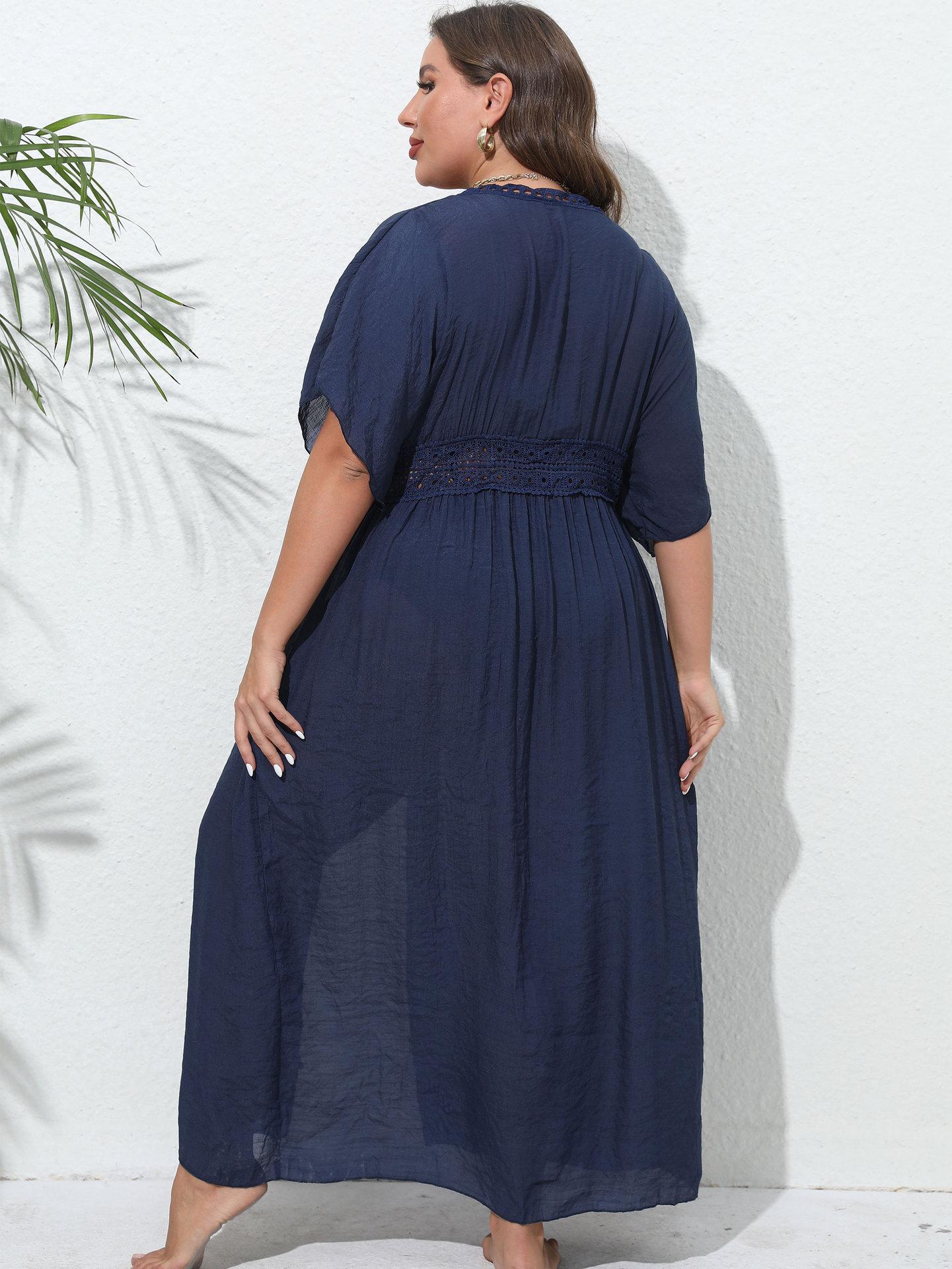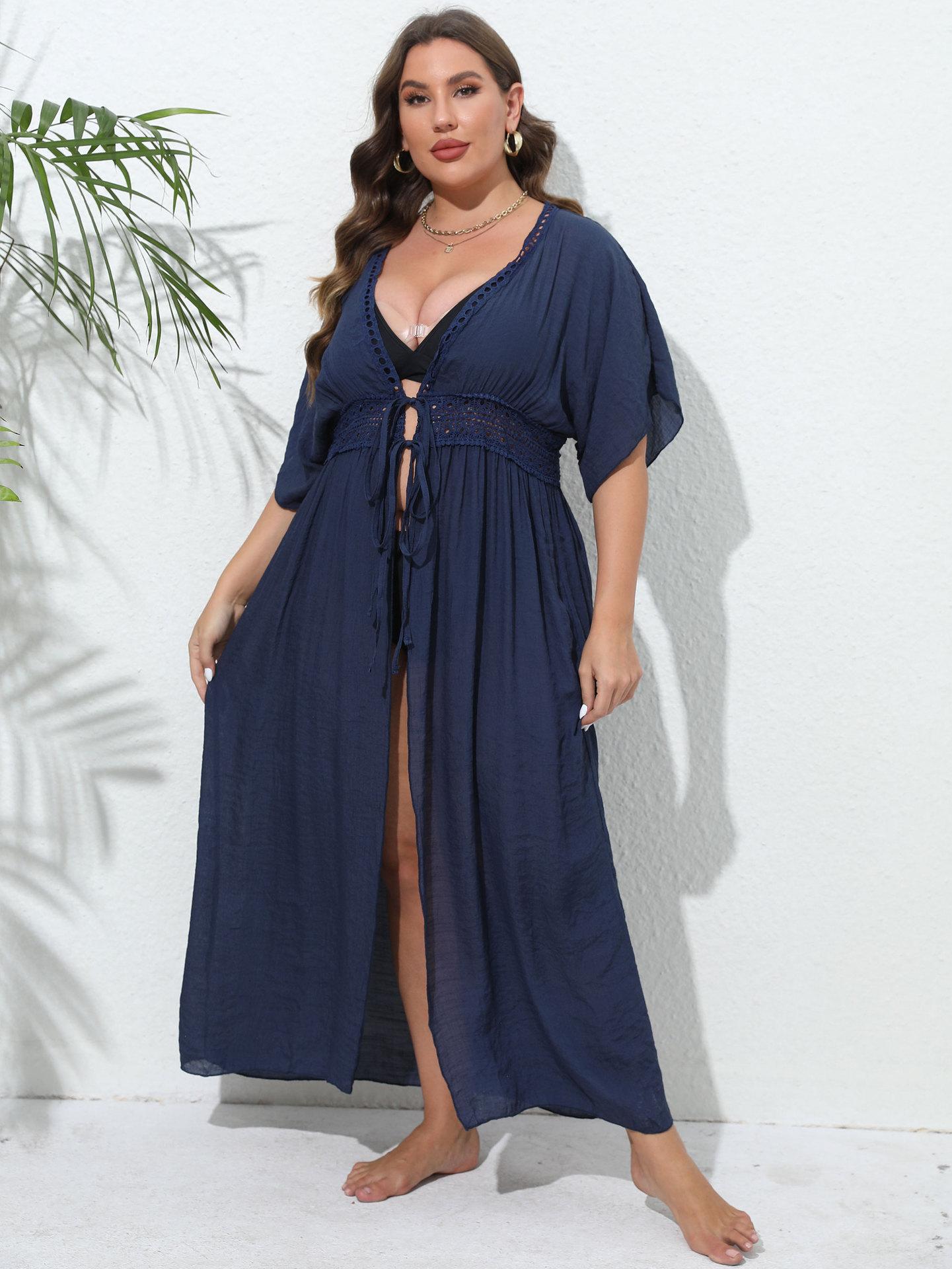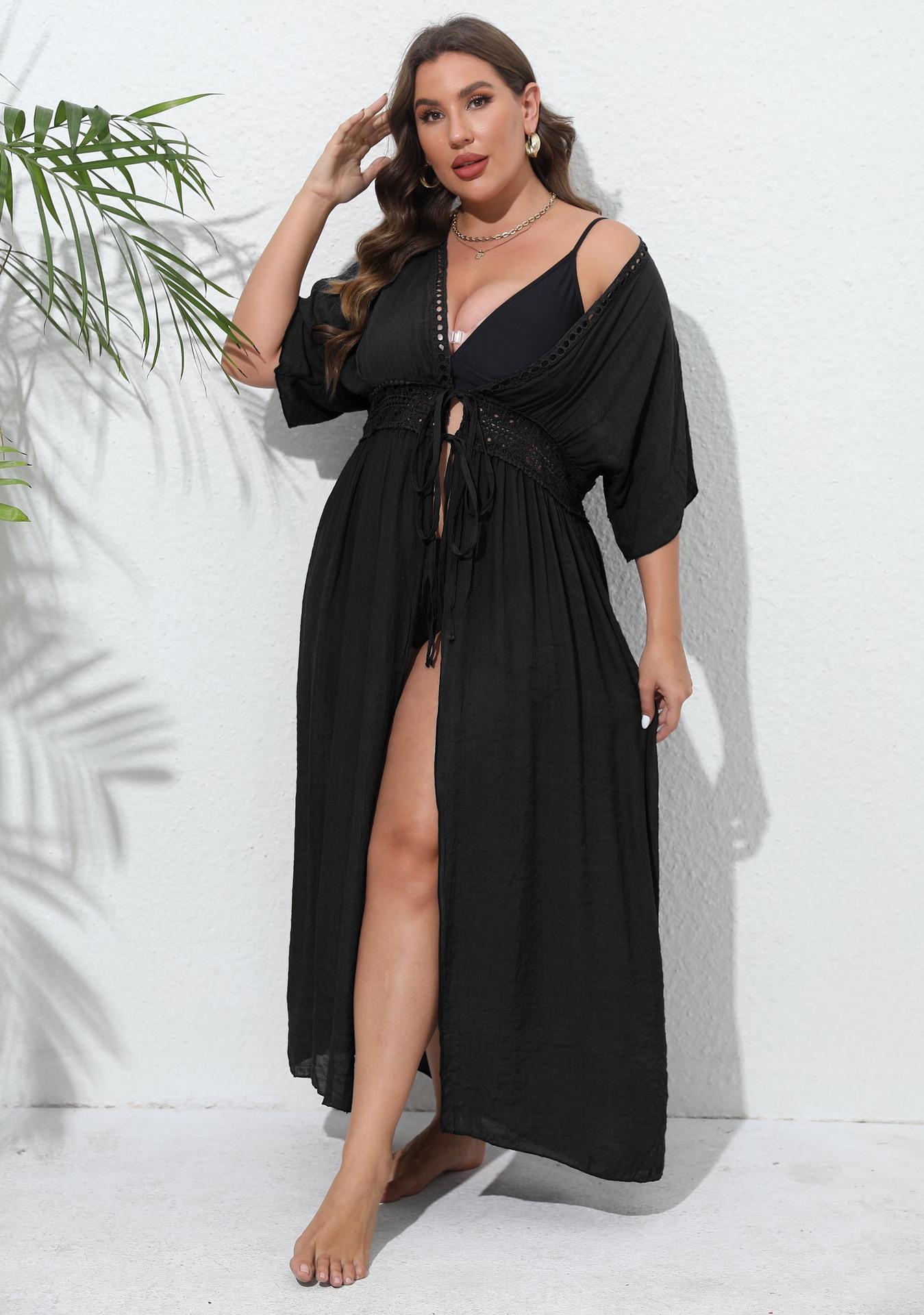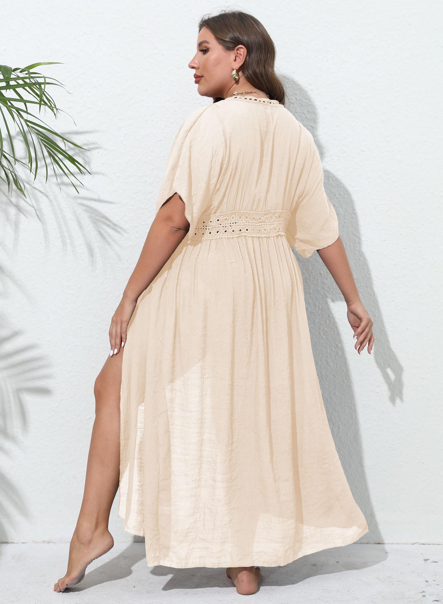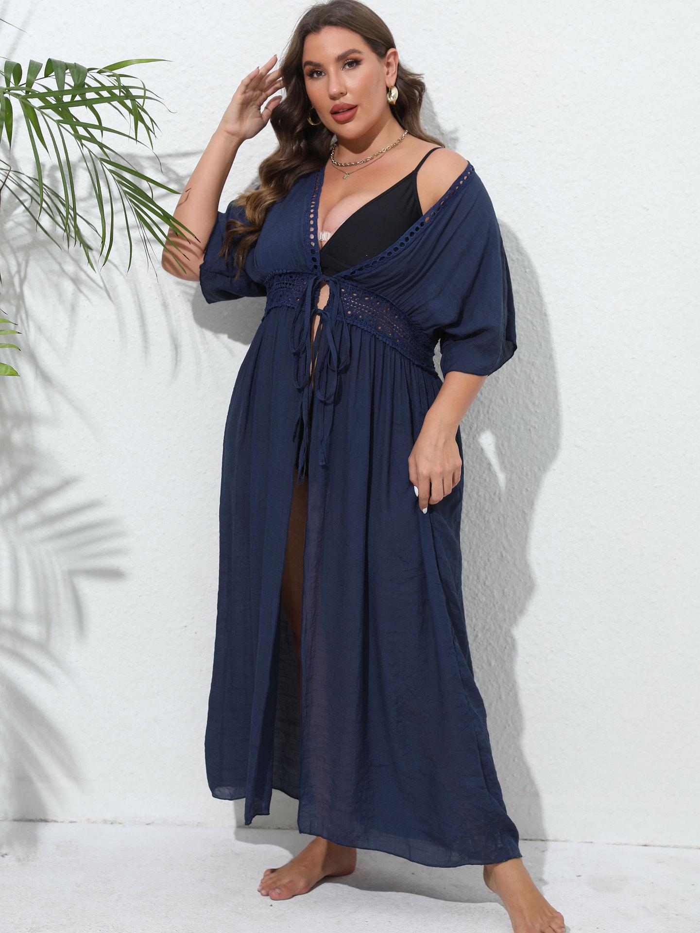 Chaqueta de Mujer Transfronteriza Europea y Americana Talla Grande para Mujer Encaje Empalmado Bikini de Playa con Tirantes y Cárdigan de Protección Solar