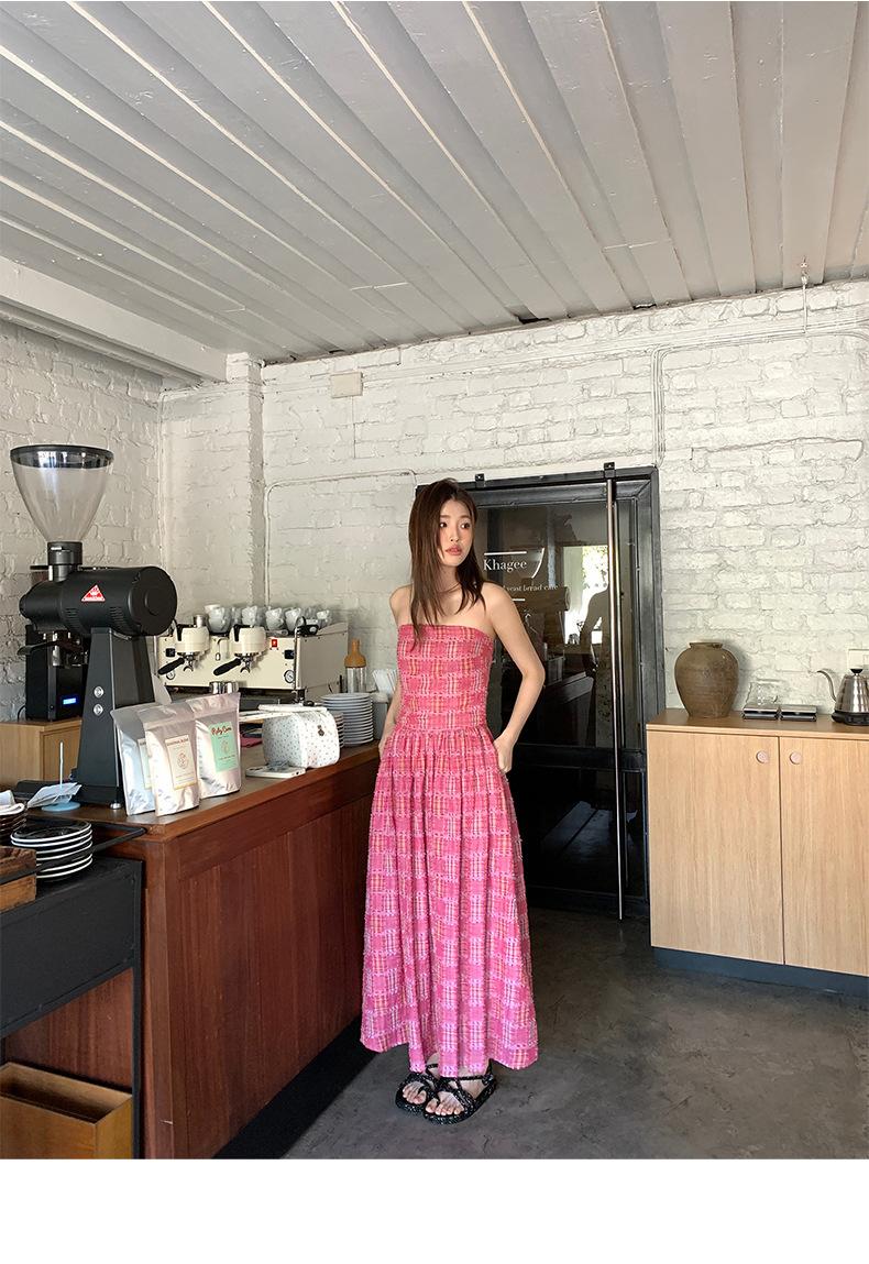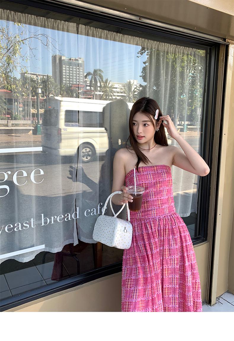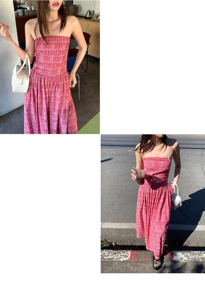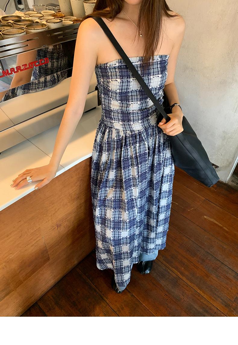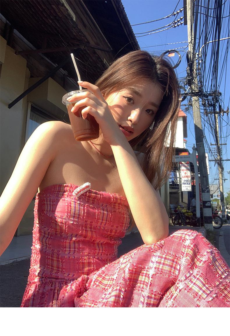 Vestido de primavera Dream DT ETOLIE sin mangas con borlas y parte superior de tubo a cuadros para mujer, falda de corte A con cintura alta