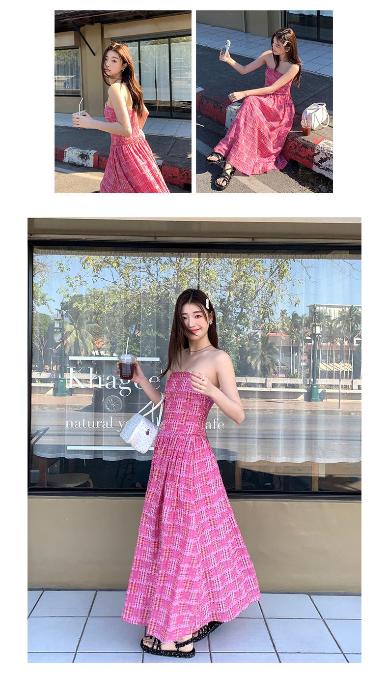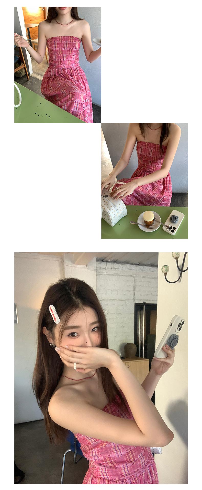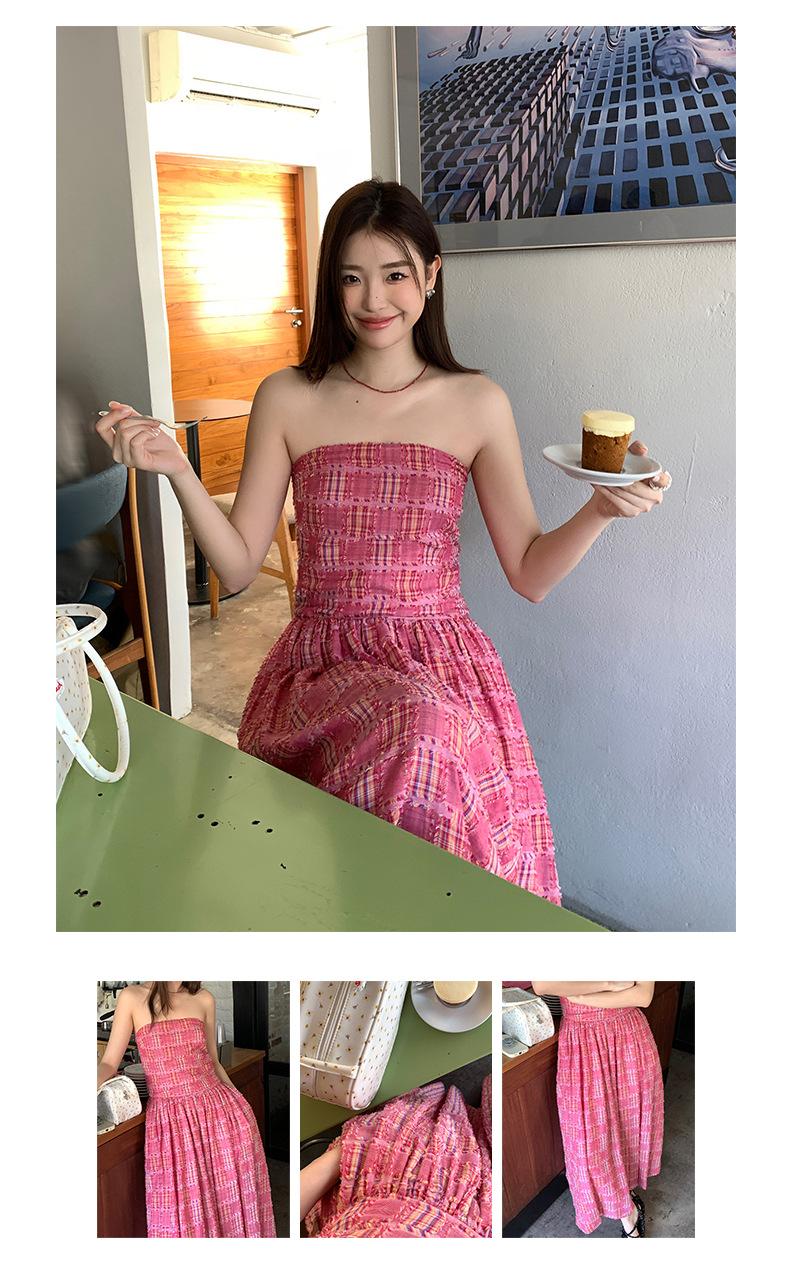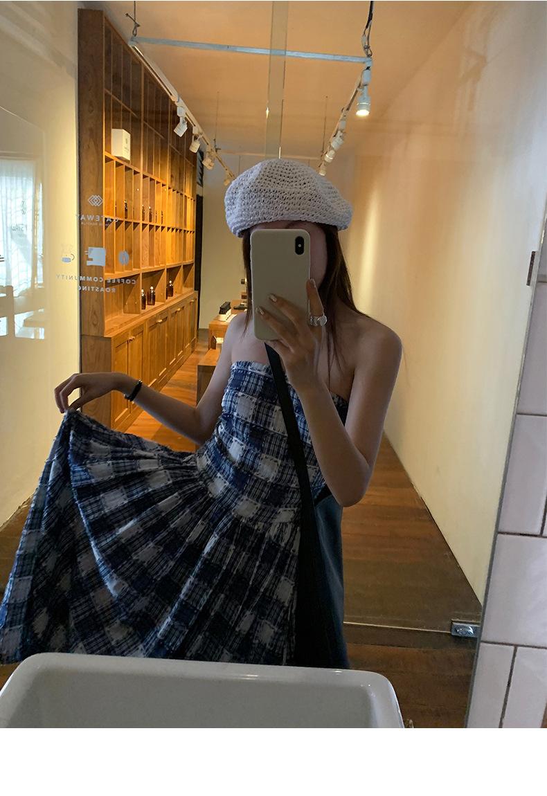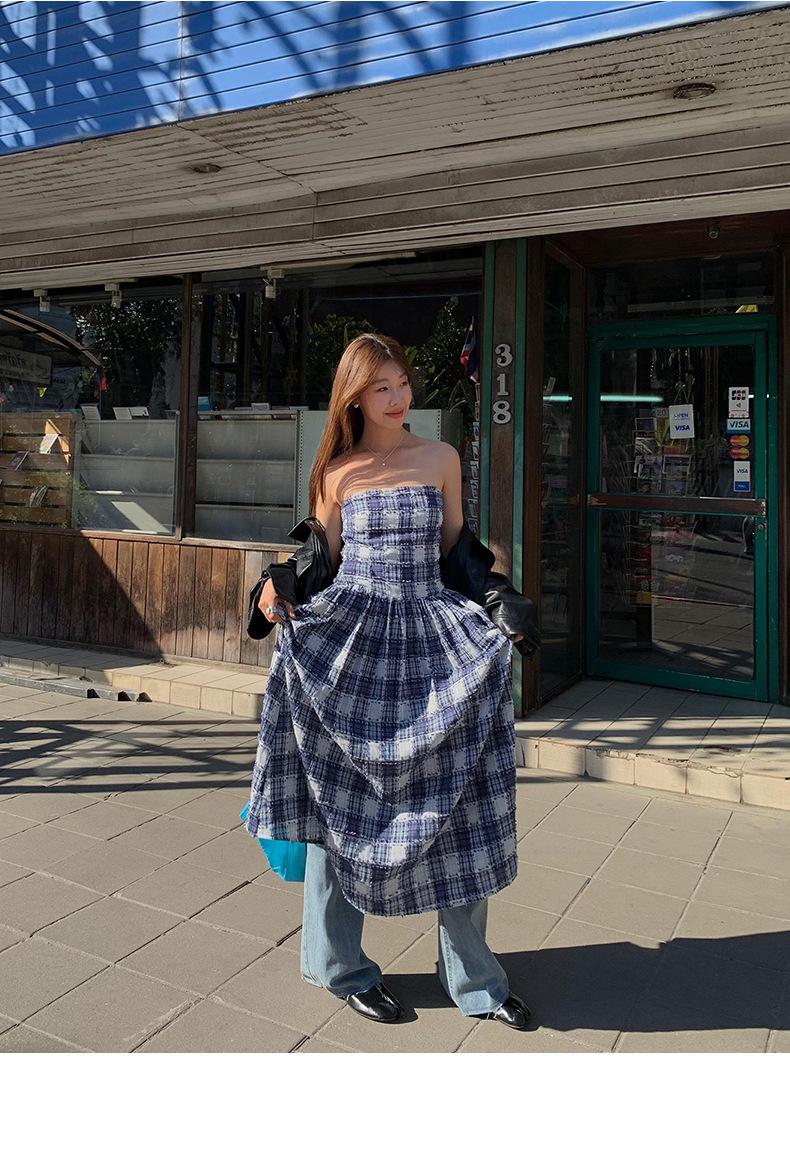 Vestido de primavera Dream DT ETOLIE sin mangas con borlas y parte superior de tubo a cuadros para mujer, falda de corte A con cintura alta