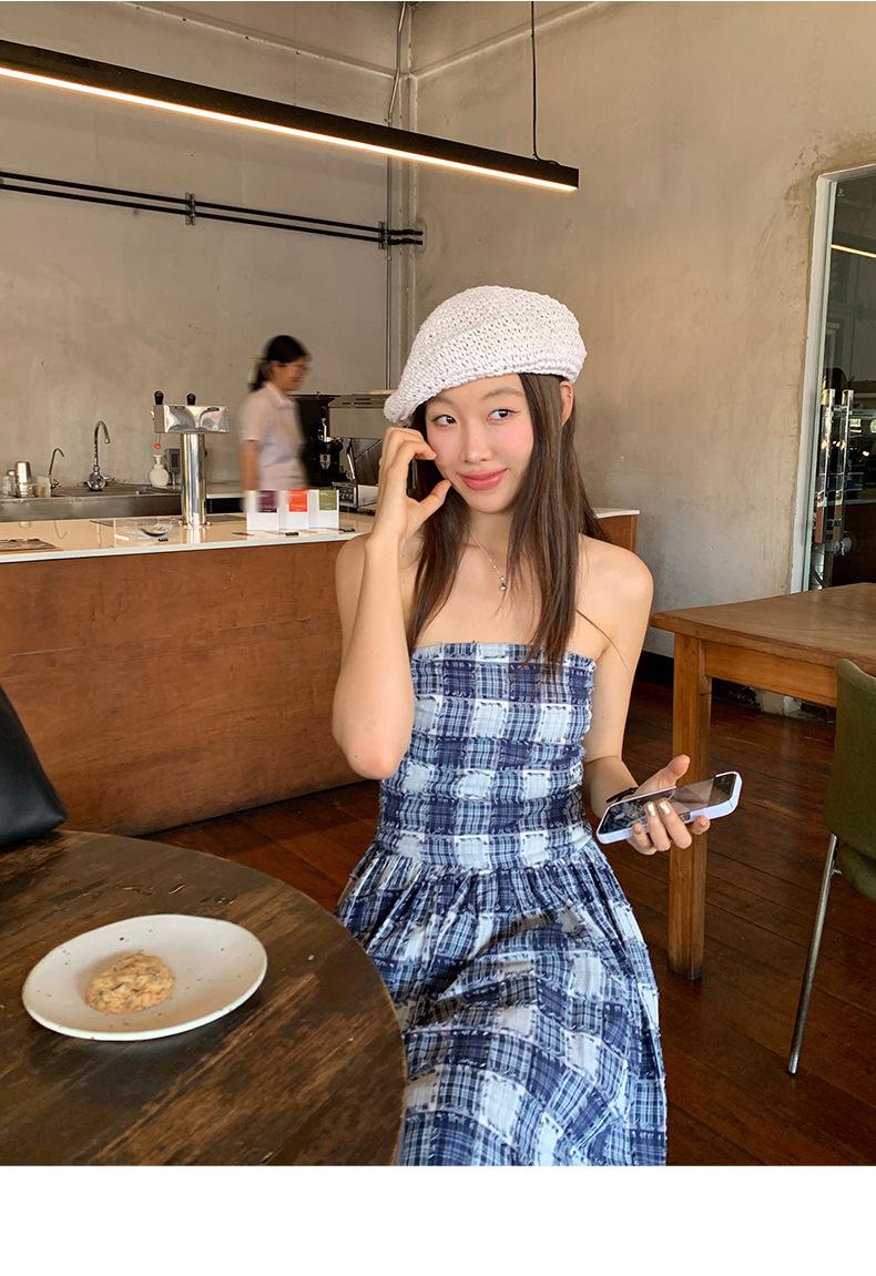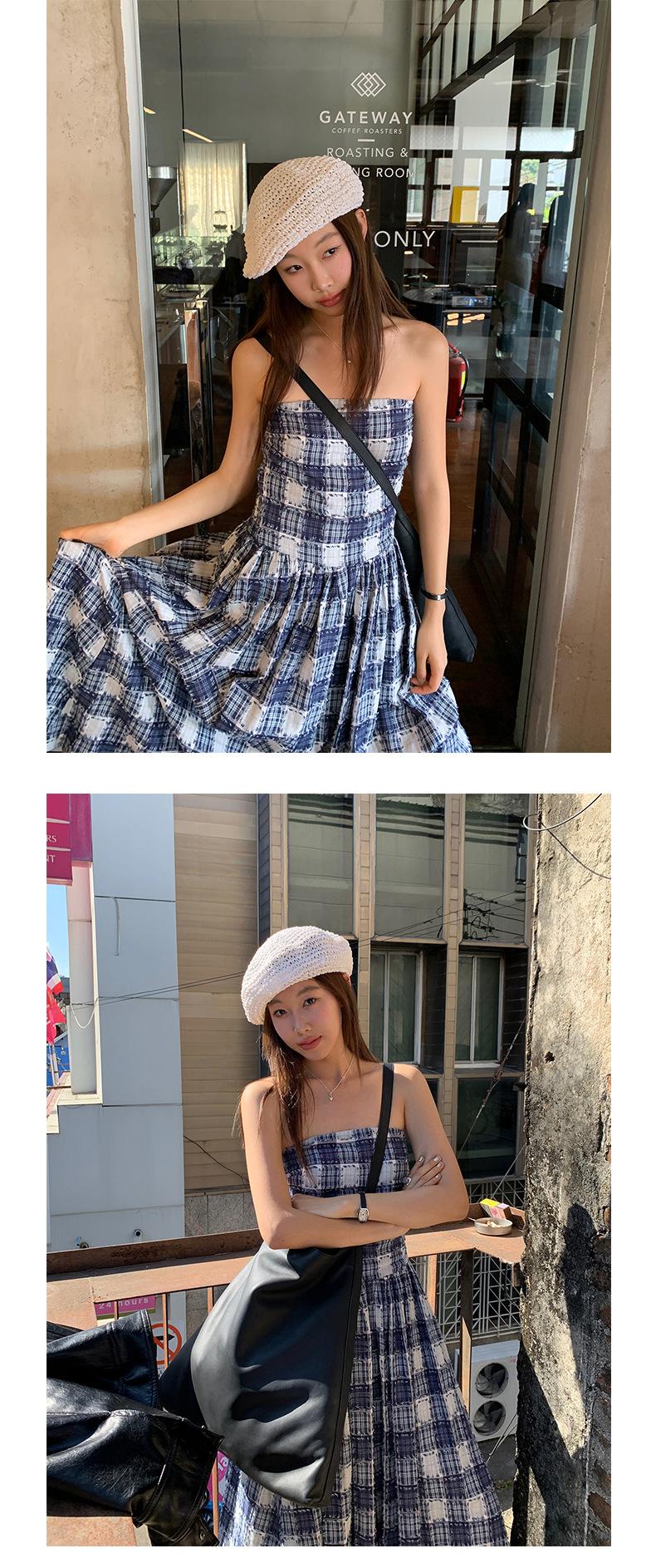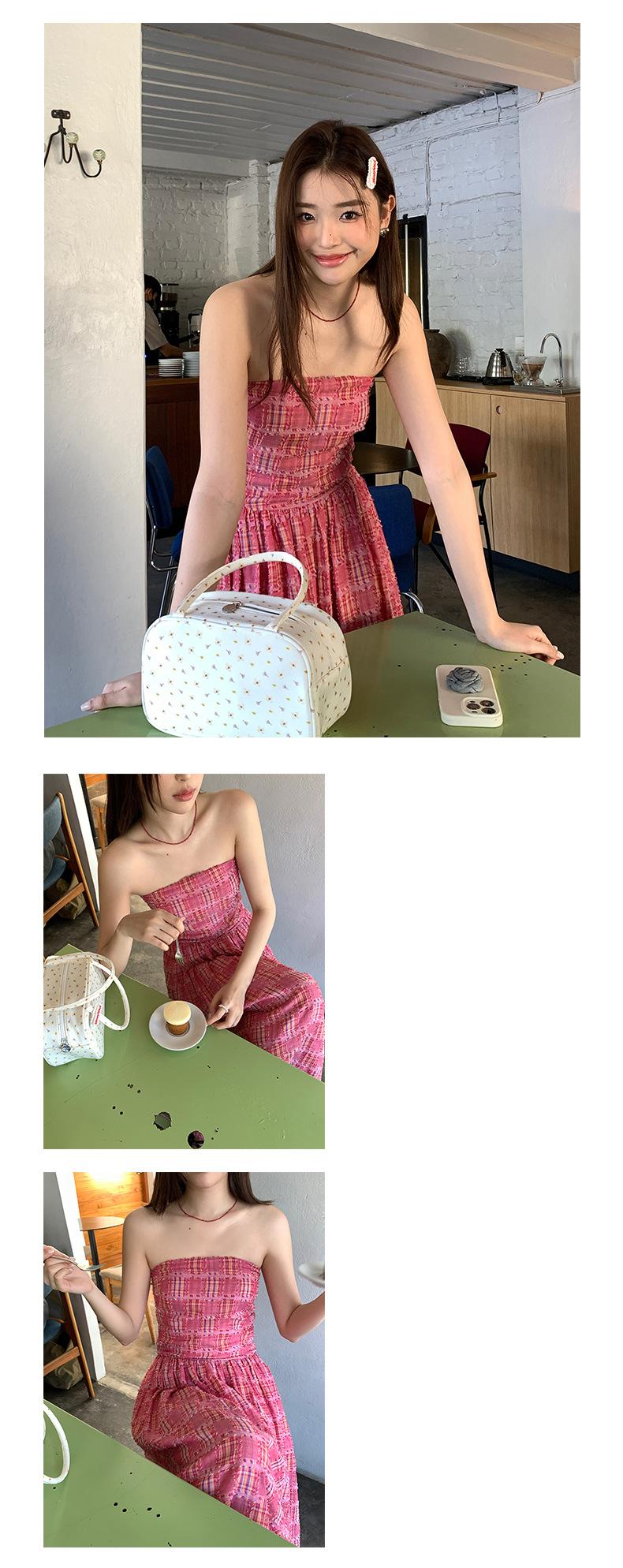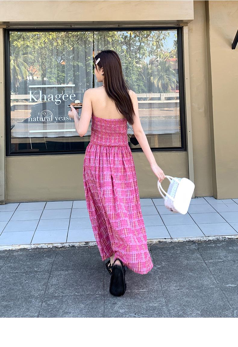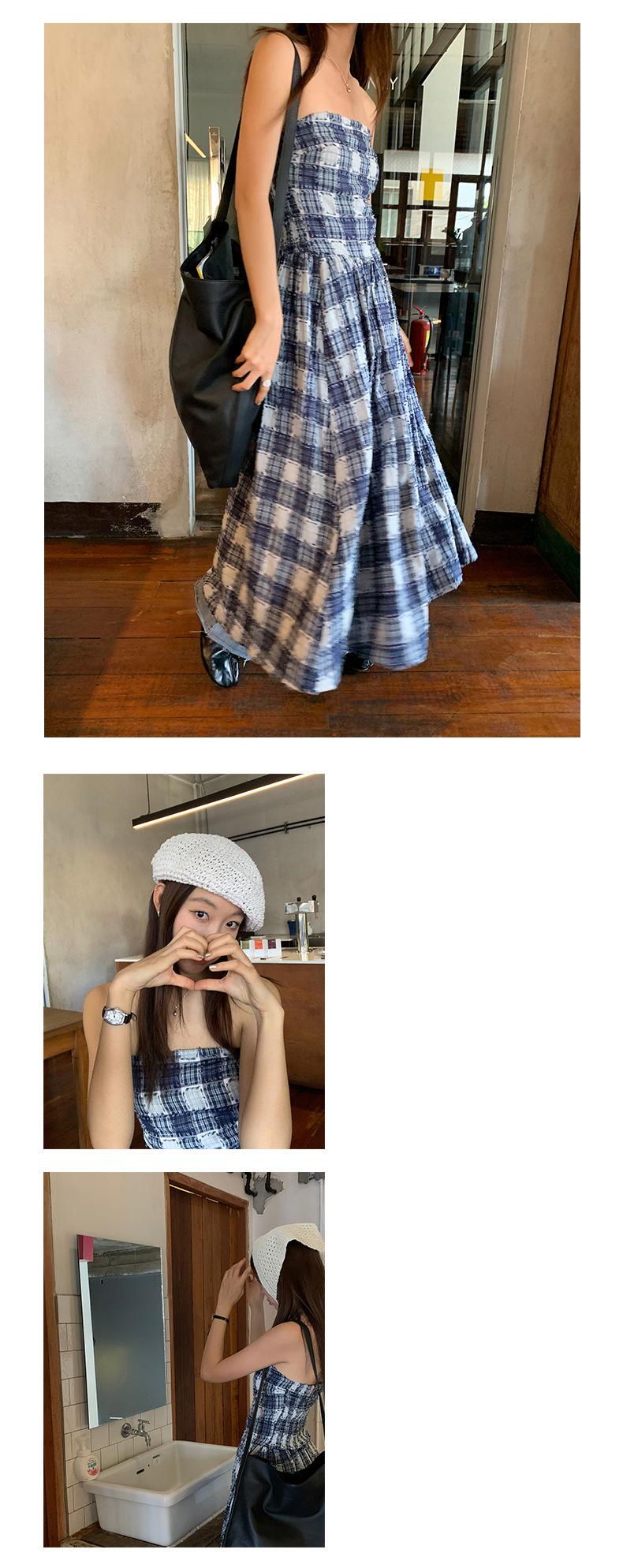 Vestido de primavera Dream DT ETOLIE sin mangas con borlas y parte superior de tubo a cuadros para mujer, falda de corte A con cintura alta