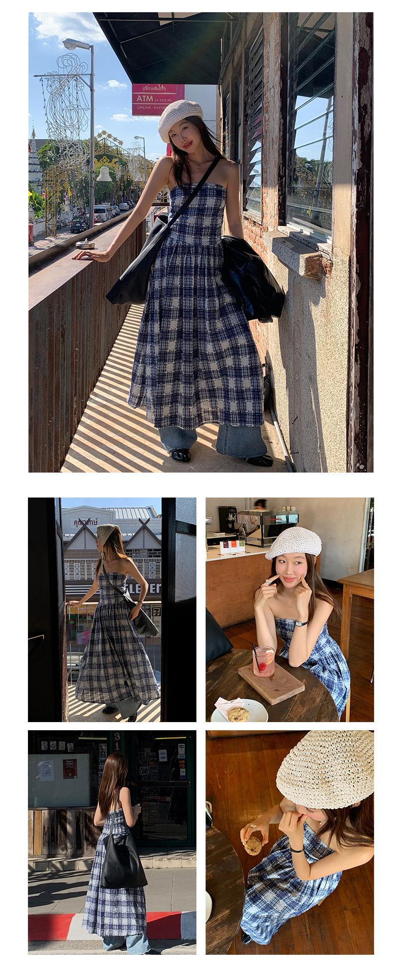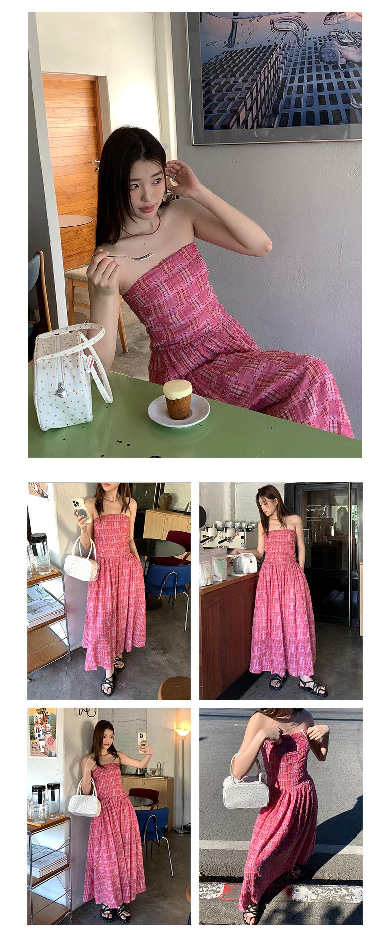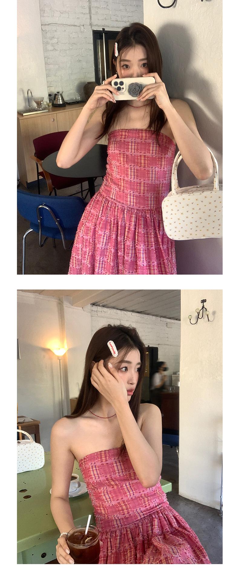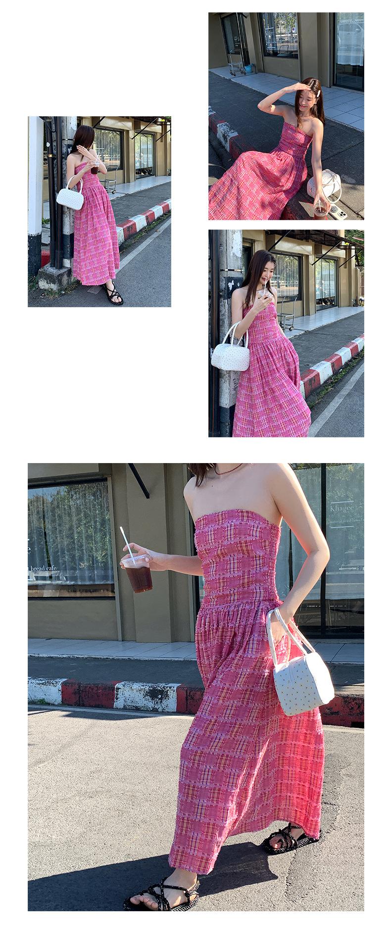 Vestido de primavera Dream DT ETOLIE sin mangas con borlas y parte superior de tubo a cuadros para mujer, falda de corte A con cintura alta