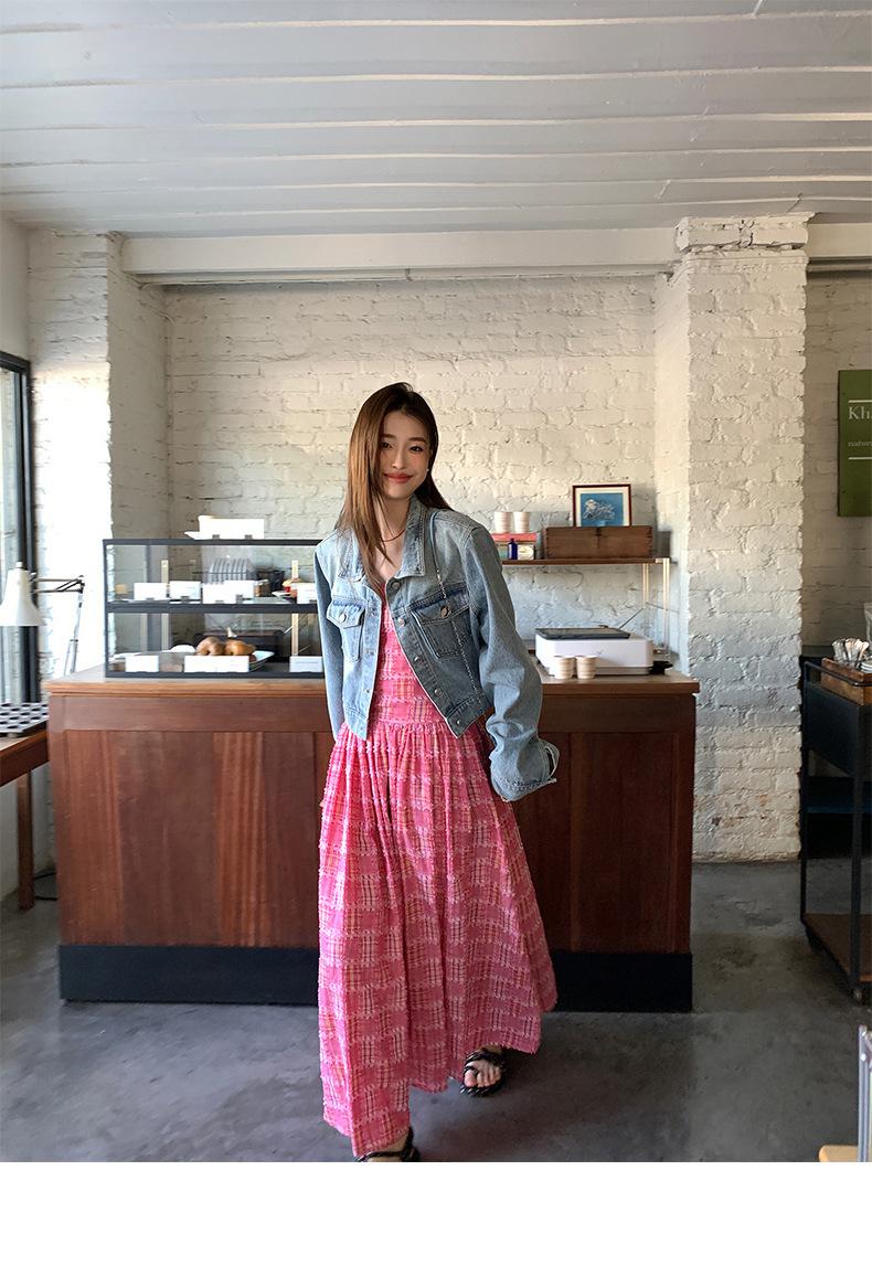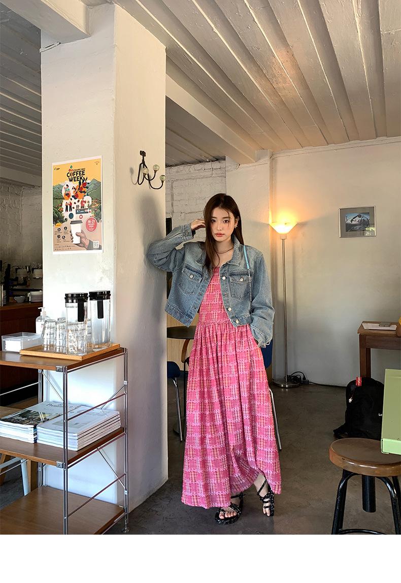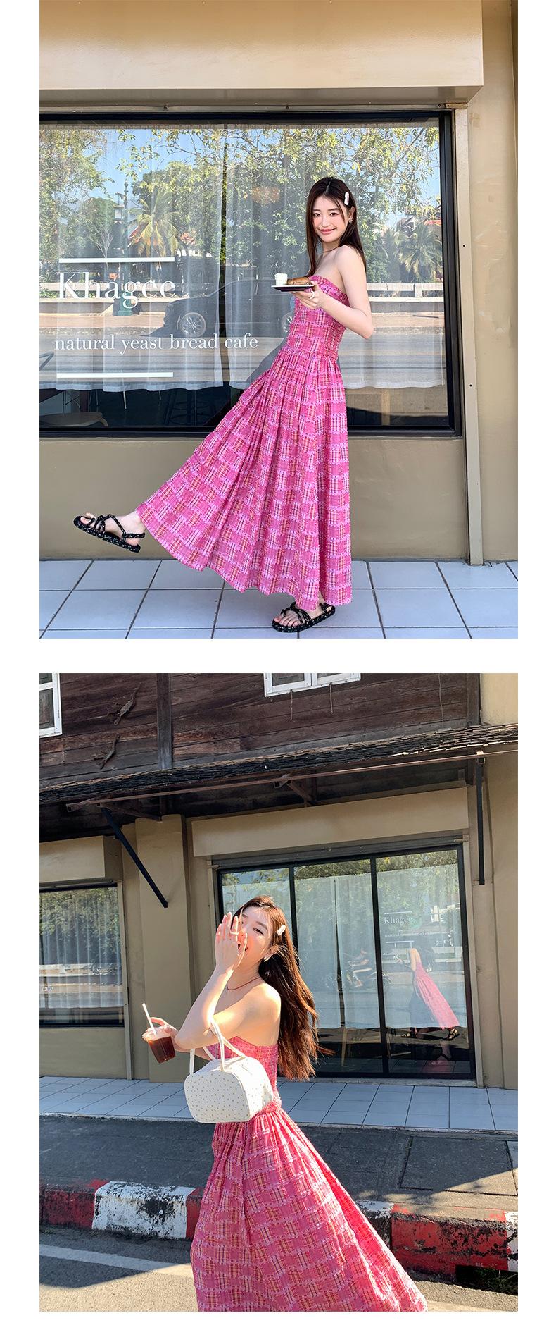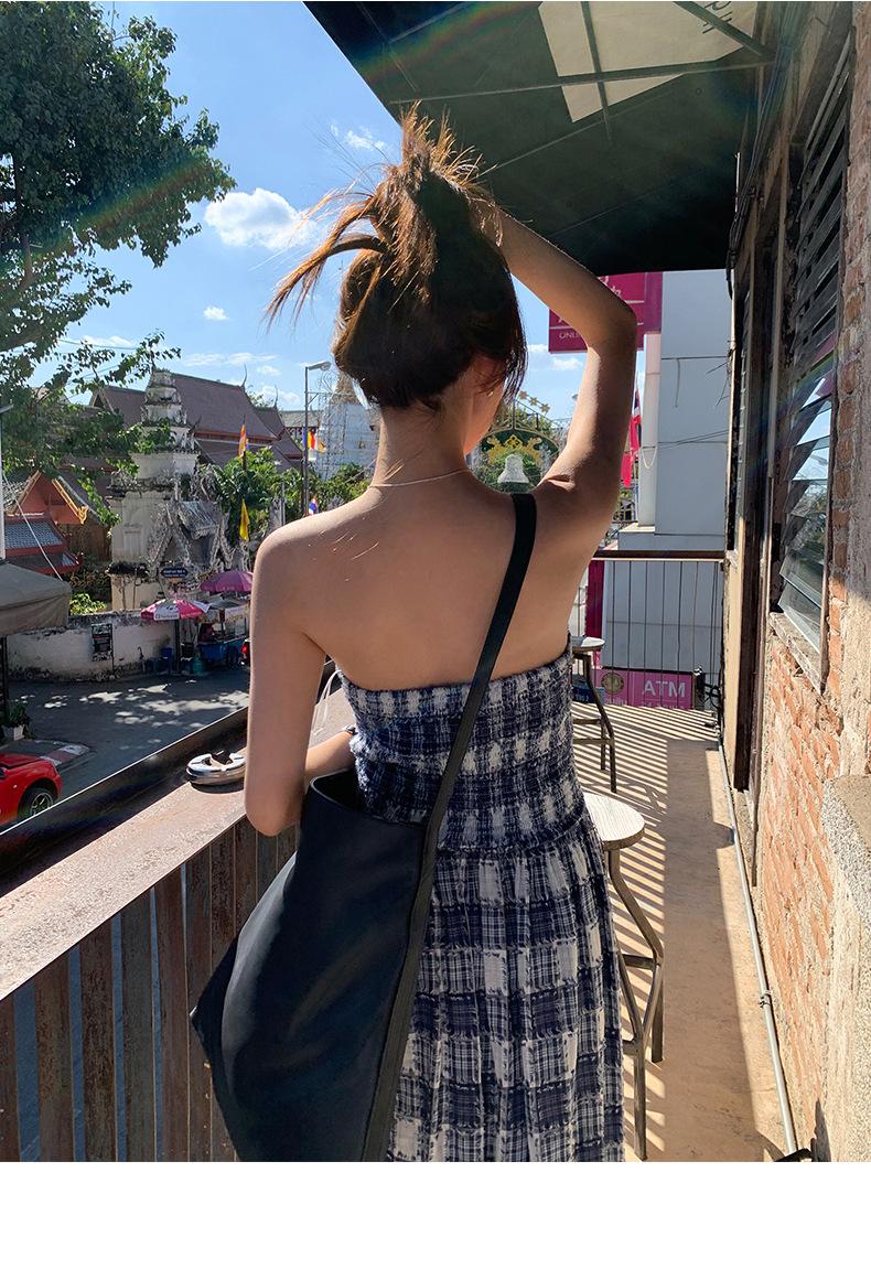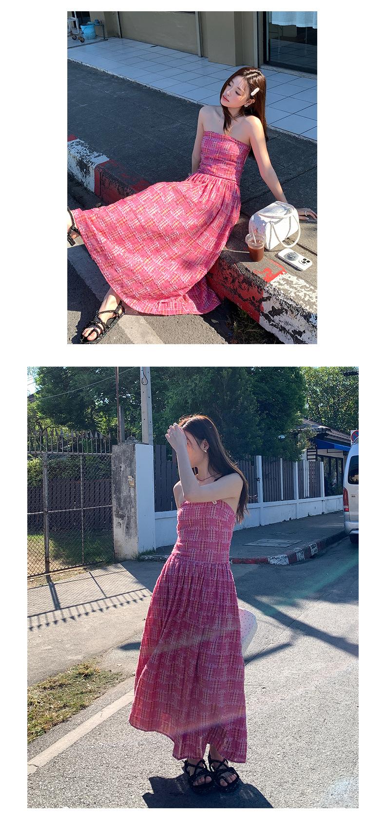Vestido de primavera Dream DT ETOLIE sin mangas con borlas y parte superior de tubo a cuadros para mujer, falda de corte A con cintura alta