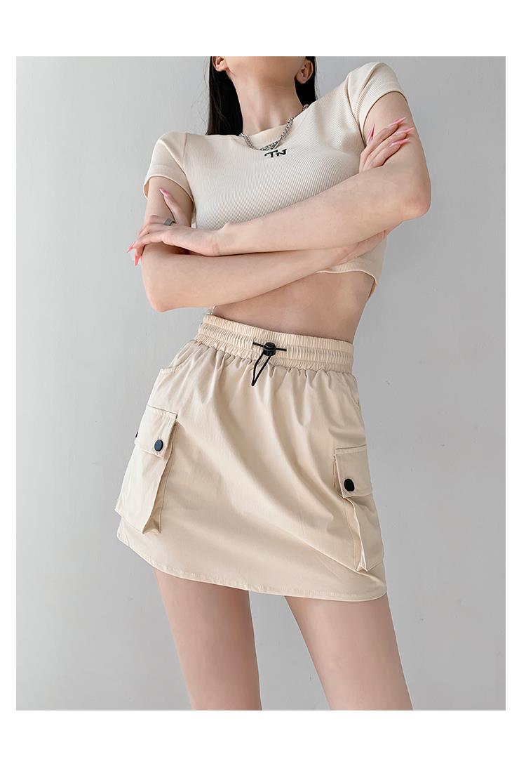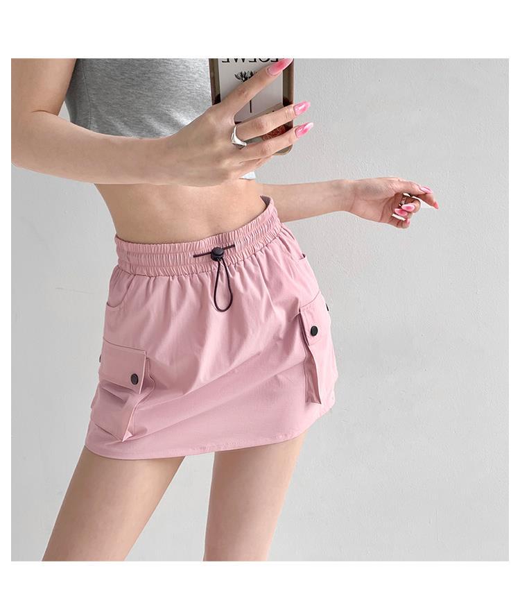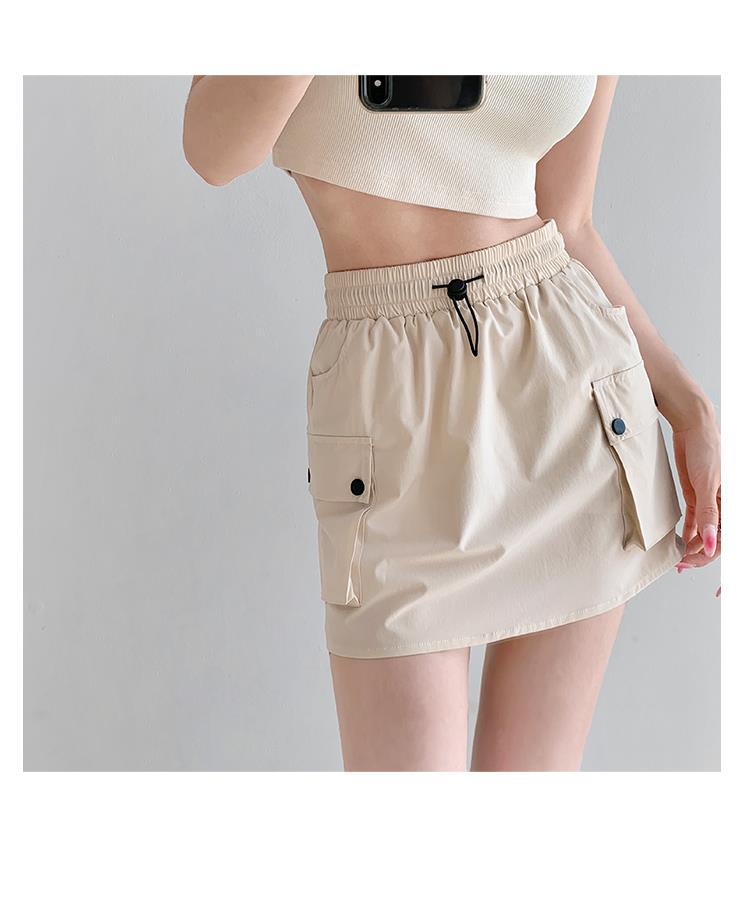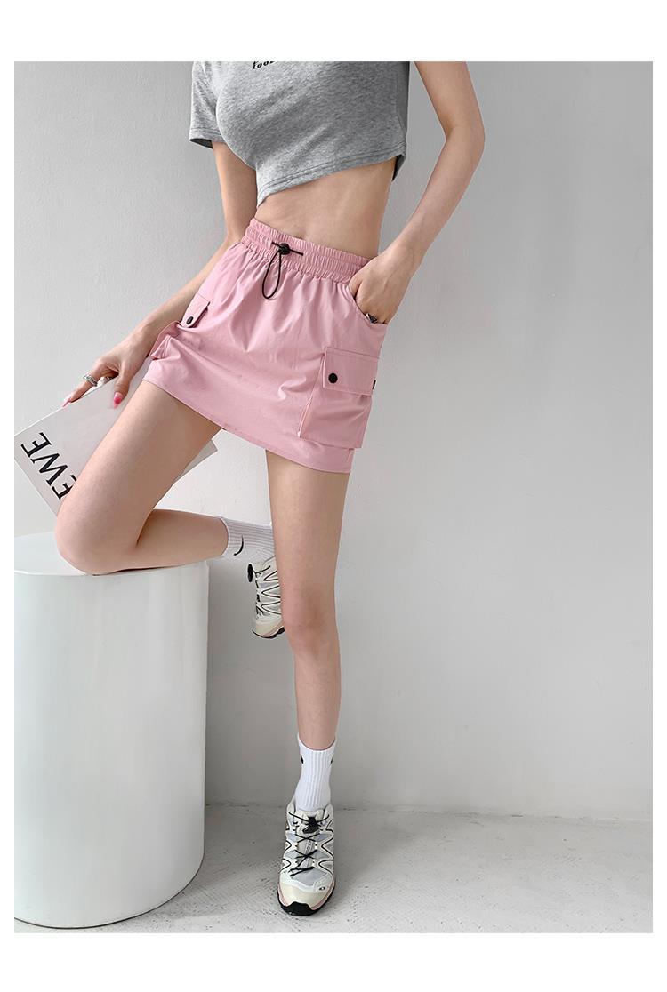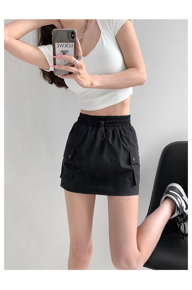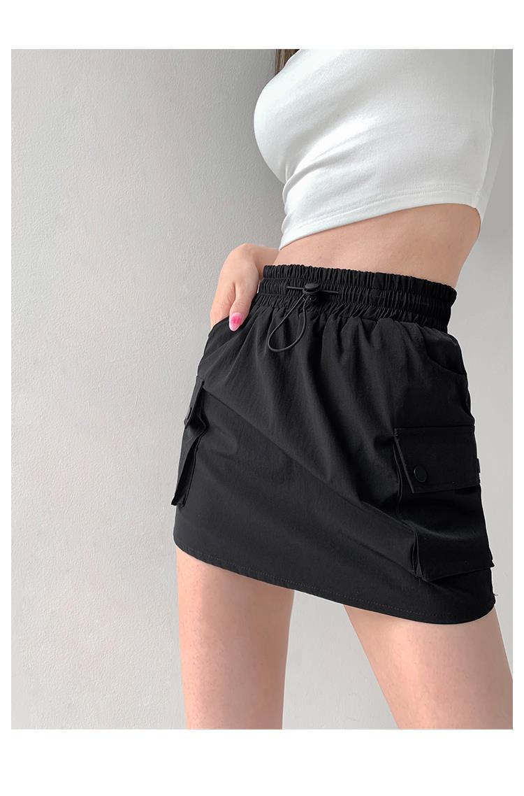 Falda de trabajo con cintura elástica y cordón para chica de calle europea y americana, estilo retro de verano, estilo universitario, adelgazante, falda de cadera, tendencia