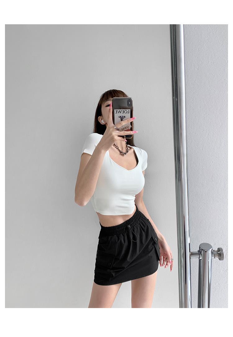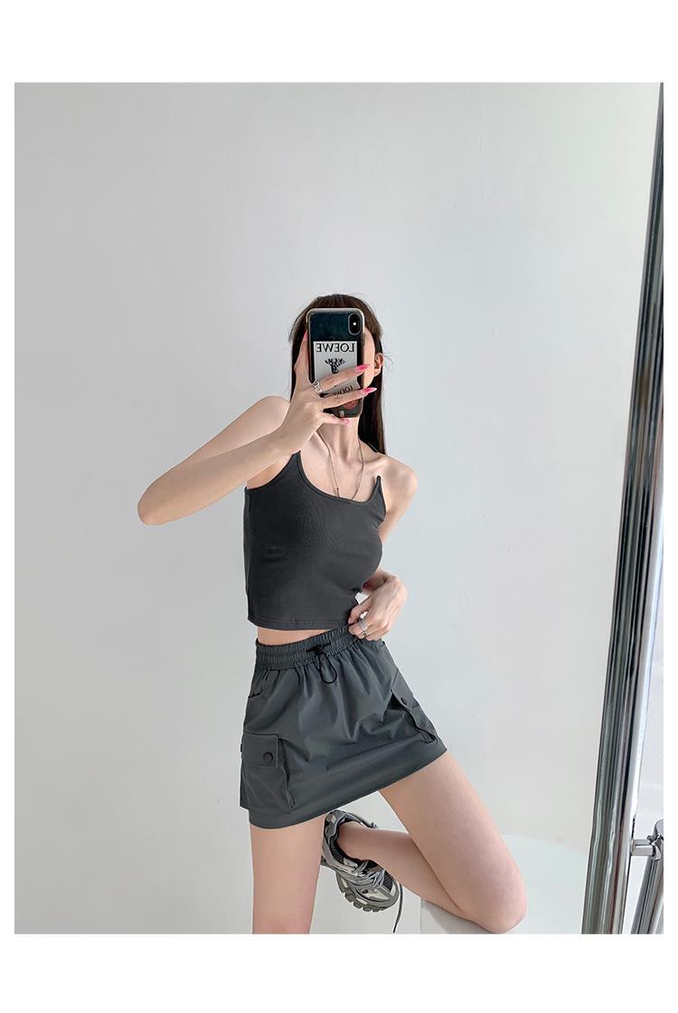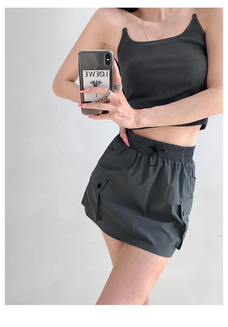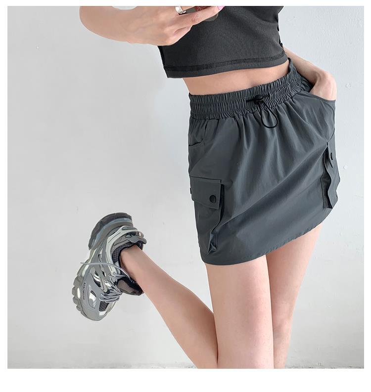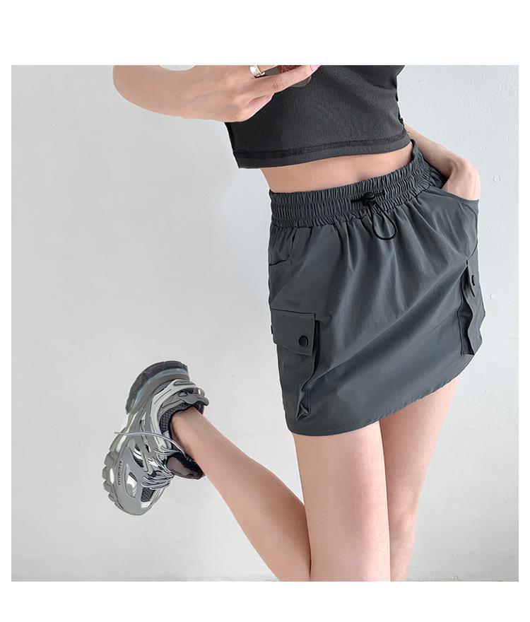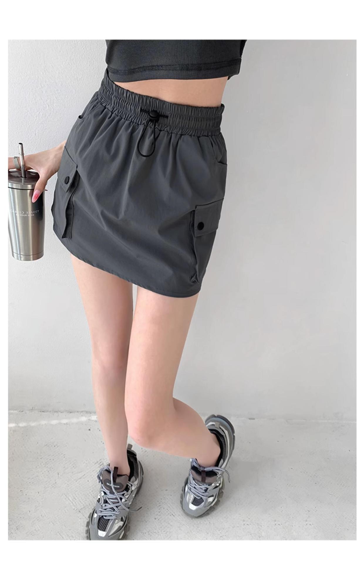 Falda de trabajo con cintura elástica y cordón para chica de calle europea y americana, estilo retro de verano, estilo universitario, adelgazante, falda de cadera, tendencia