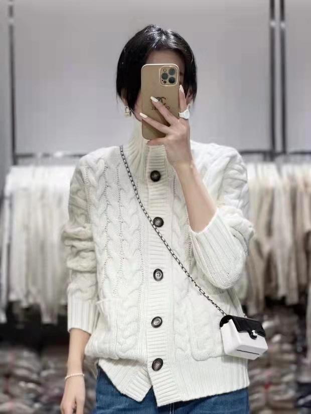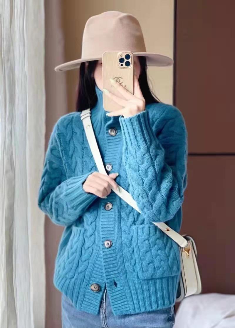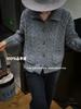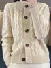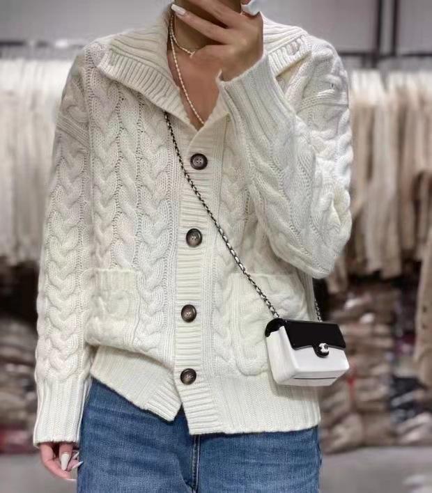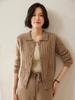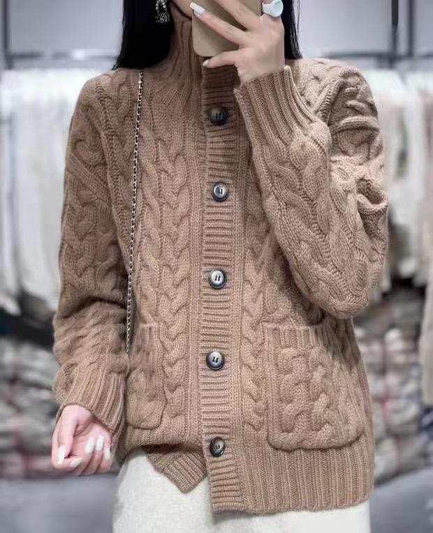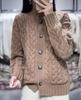 Cárdigan de lana con giro europeo para mujer, suéter holgado y grueso de solapa alta de punto de lana pura, talla grande, otoño e invierno