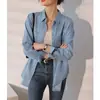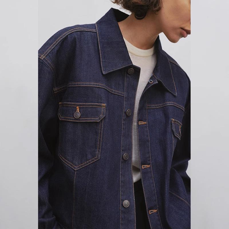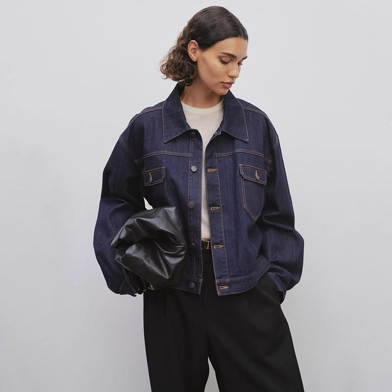Th~ Row Spot 2025 Primavera y Otoño Nuevo Clásico Algodón Chaqueta de Mezclilla Chaqueta Camisa Azul para Mujer