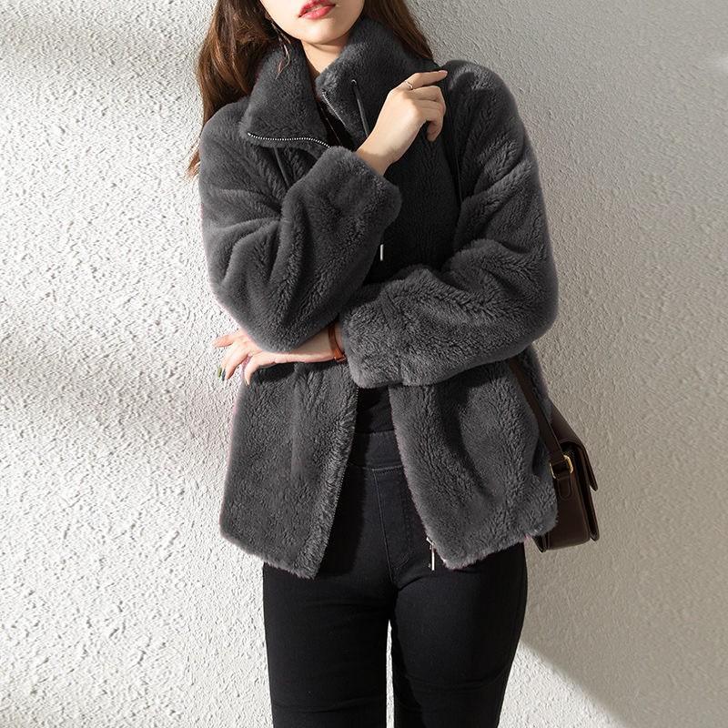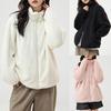 Abrigo de invierno para mujer, forro polar grueso de doble cara, cuello de forro polar coral, suéter cálido, cárdigan elegante con cremallera, parte superior de forro polar