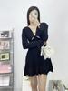 Ropa de Mujer Transfronteriza Verano Nuevo Estilo Diseño Nicho Francés Cuello en V Sexy Calado Manga Campana Vestido Corto de Punto