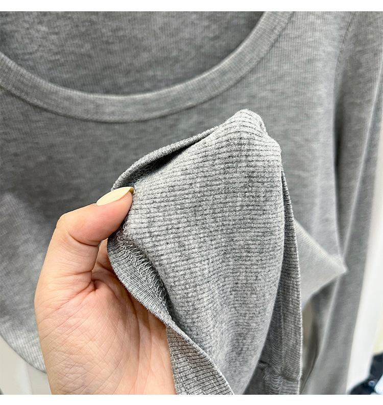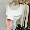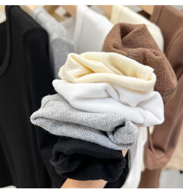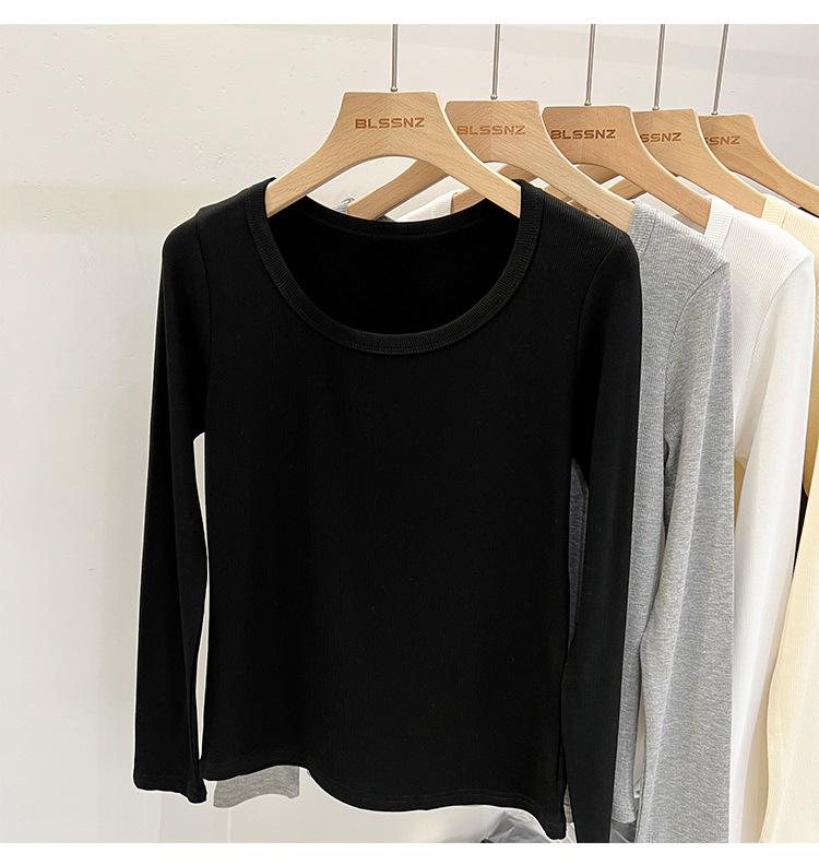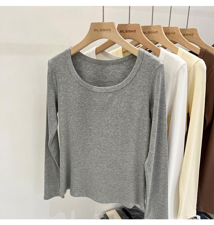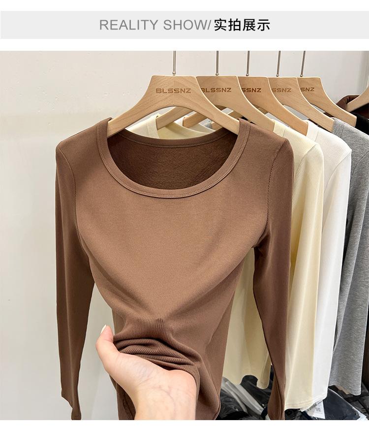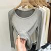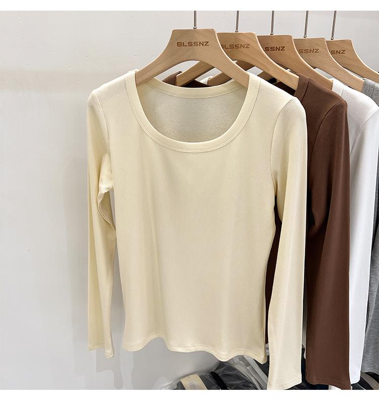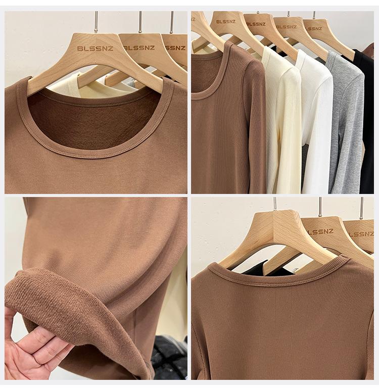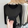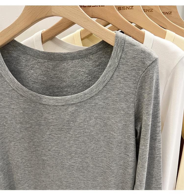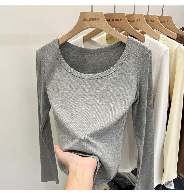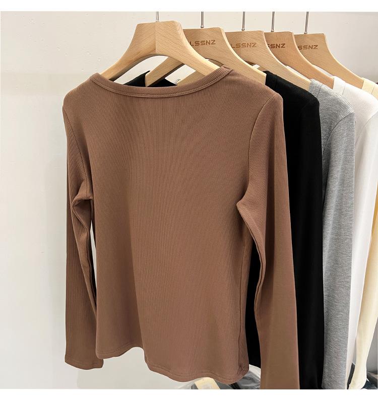 Playera de Manga Larga Cepillada de Estilo Europeo para Mujer, Nueva Primavera Temprana 2023, Top de Color Sólido Ajustado con Forro Polar, Capa Base Moderna para Mujer