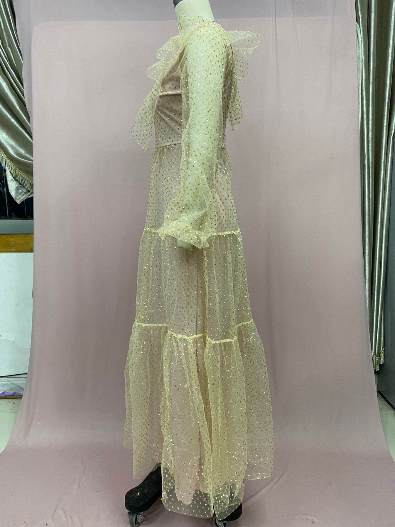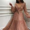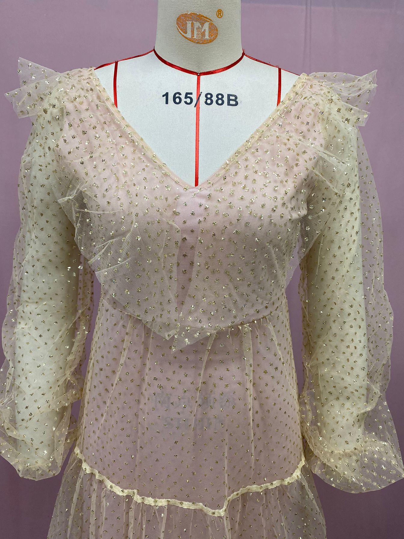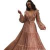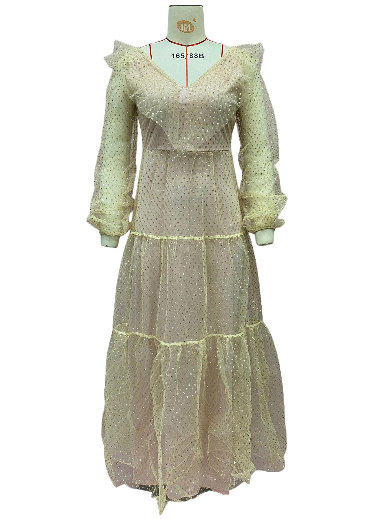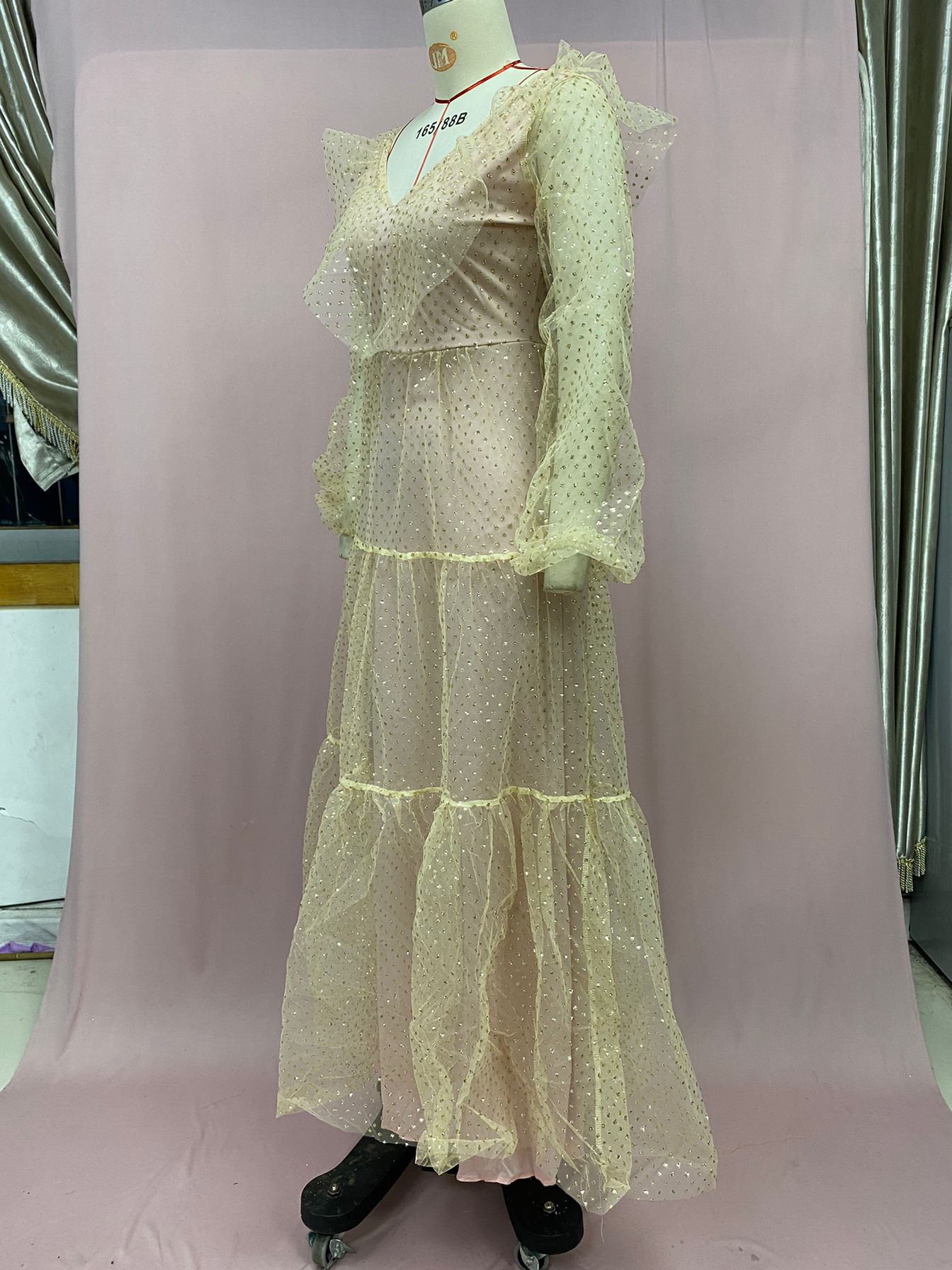 Vestido Nuevo Europeo y Americano de Primavera y Verano Transfronterizo 2025 Sexy de Manga Larga con Cuello en V Salpicado de Dorado Vestido de Noche Falda Larga