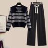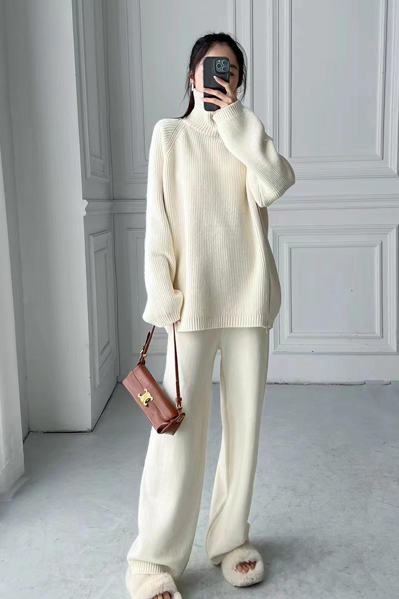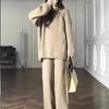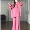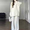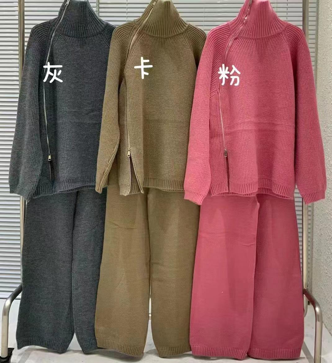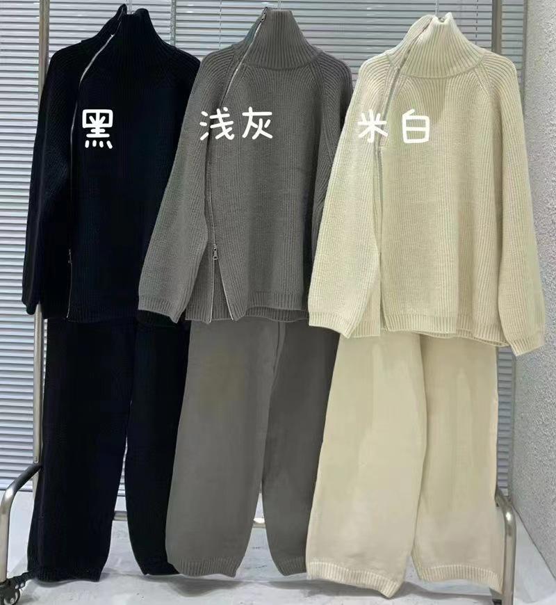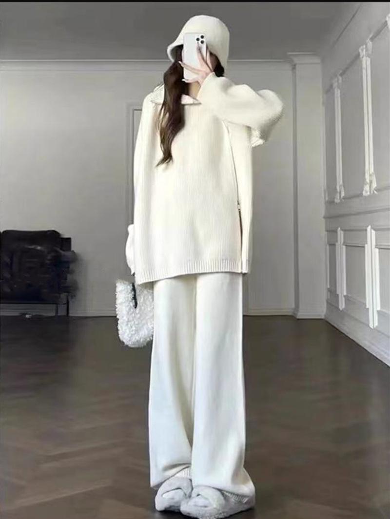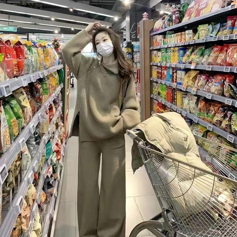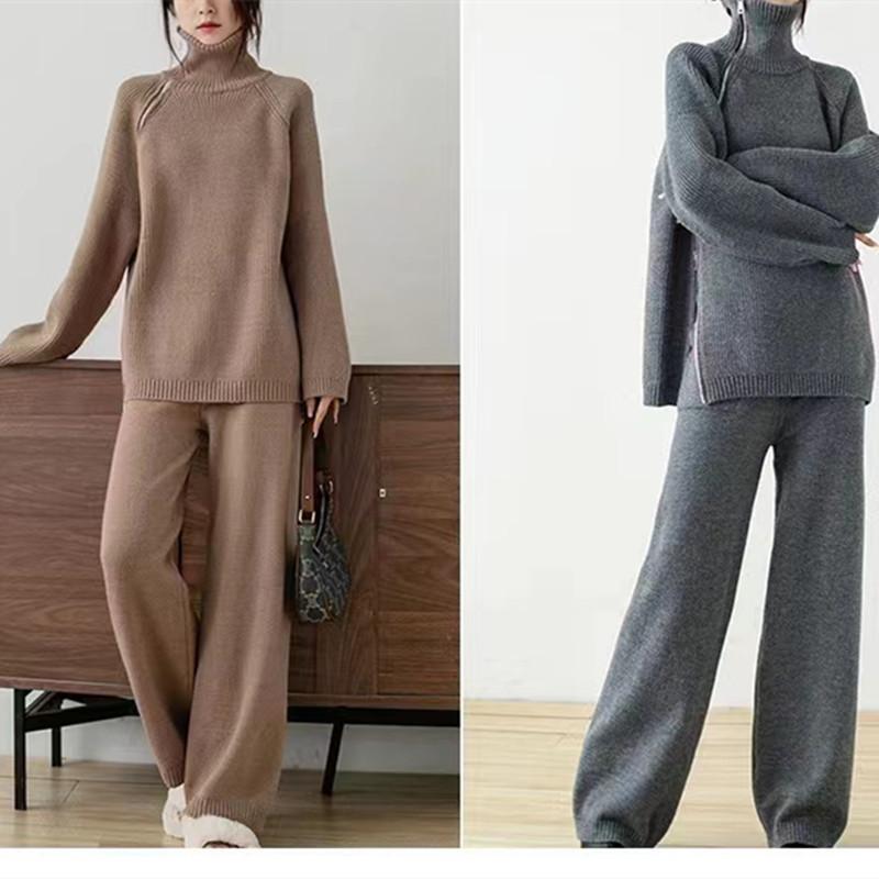 Traje de Punto para Mujer 2024 Estilo Coreano Suelto Nuevo Diseño de Cremallera Lateral Top y Pantalones de Punto Traje de Suéter Moderno